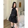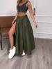 Conjunto de dos piezas de falda con cinturón y abertura de color sólido con chaleco sin mangas elegante para mujer de comercio exterior europeo y americano 2024