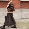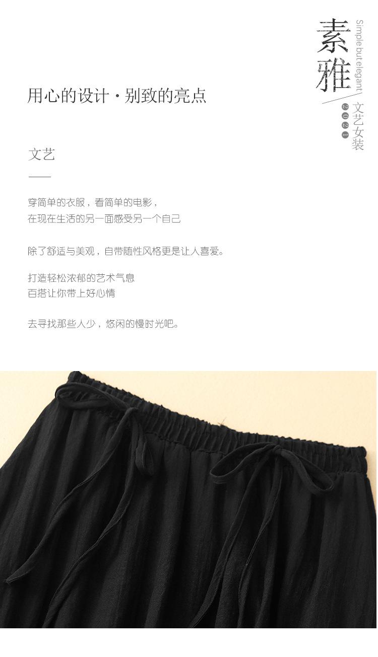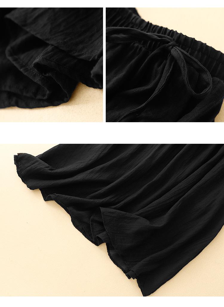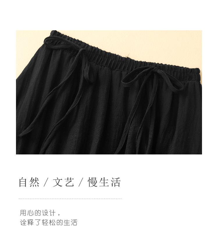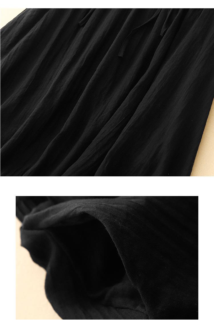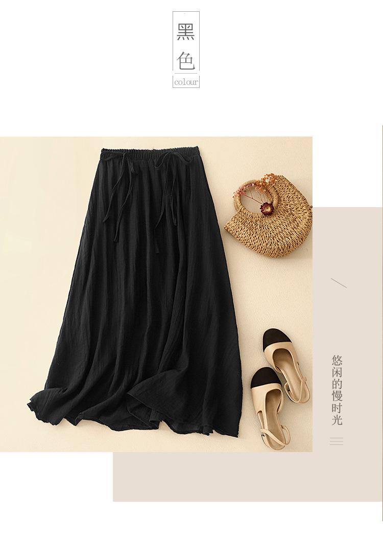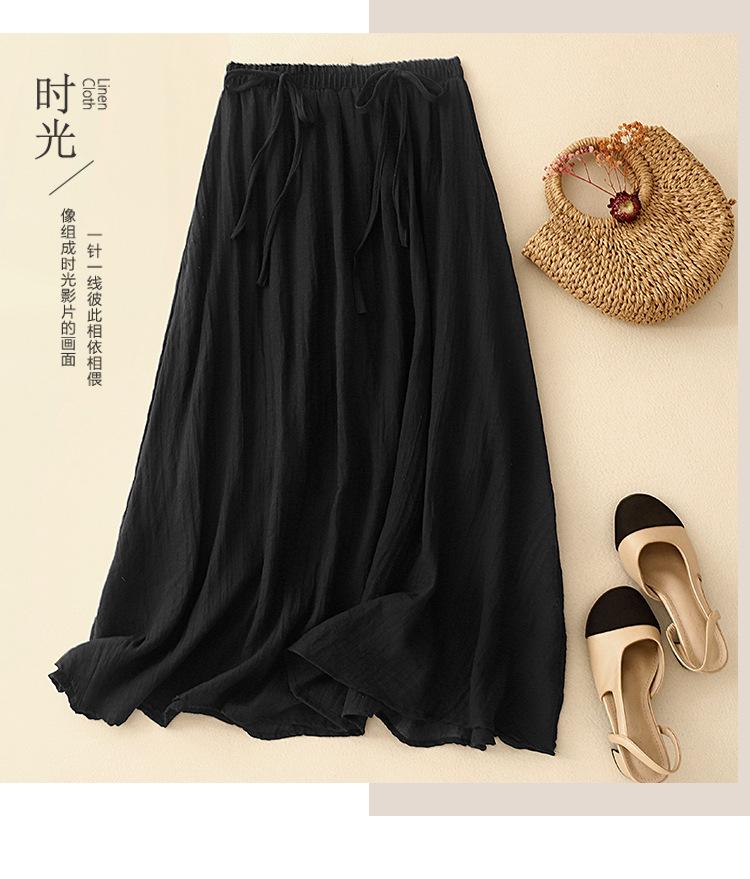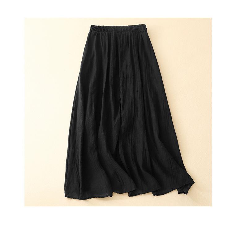 Japonés y Coreano en stock Verano Nuevo Estilo Ramio Torcido Negro Falda Media Largo Artístico Suelto Cintura Ajustada Todo Combinable Ramio Vuelo Amplio