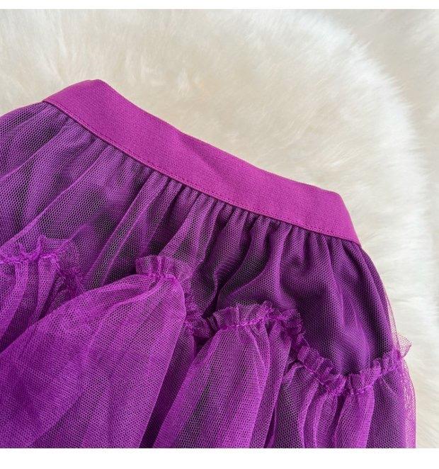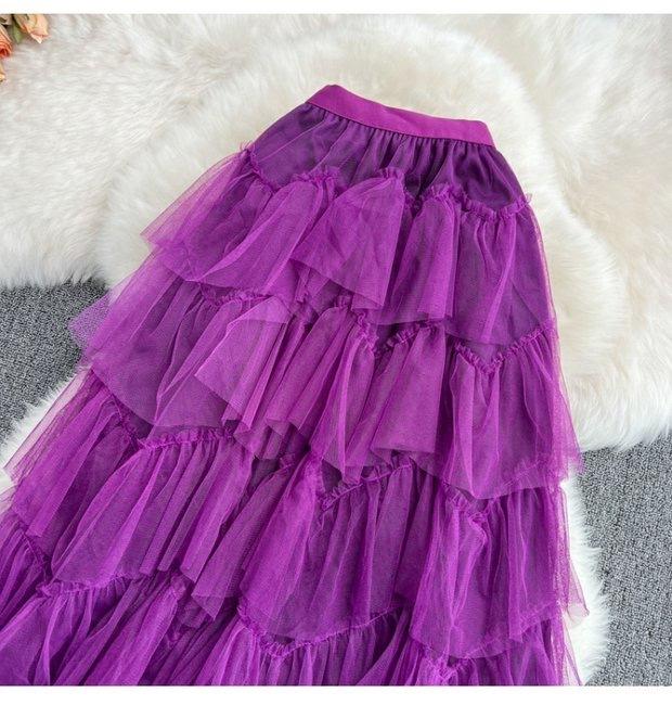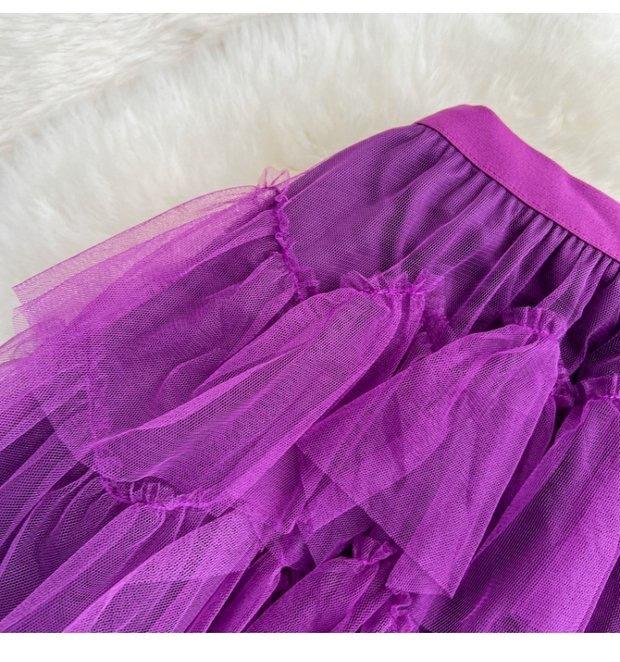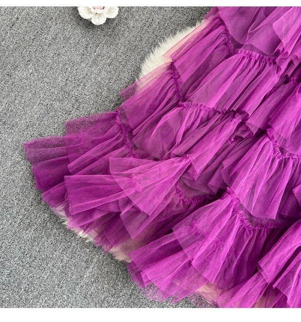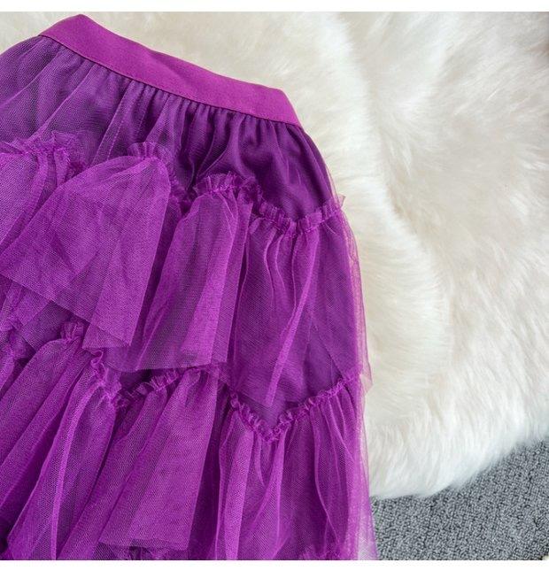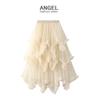 Falda de pastel esponjosa de malla de moda transfronteriza, falda de temperamento elástico de longitud media, falda de gasa irregular, falda de hada de verano