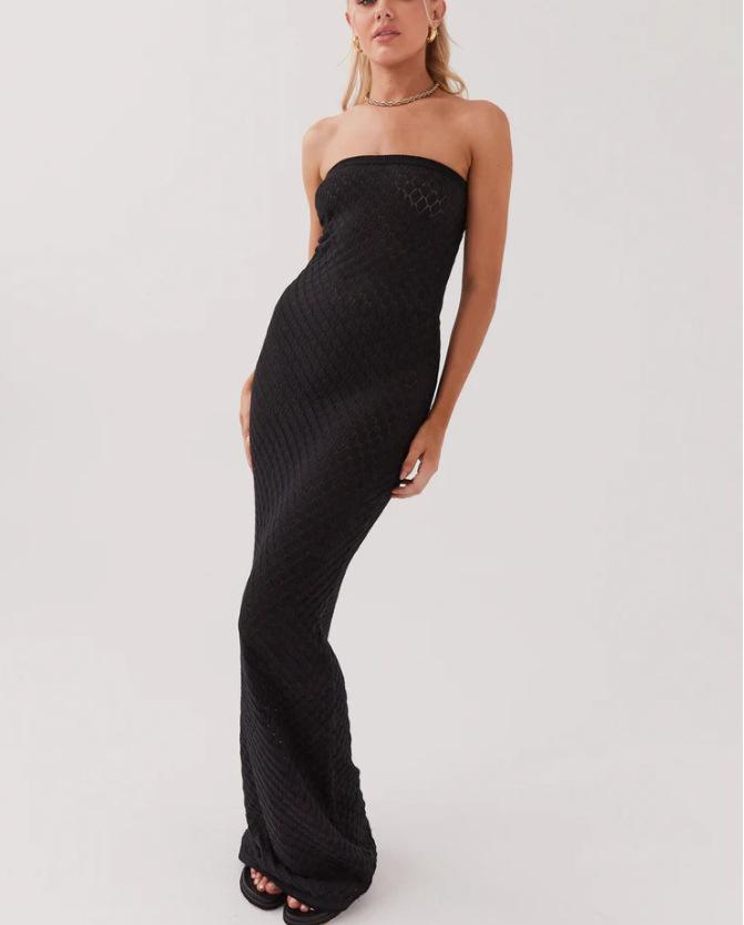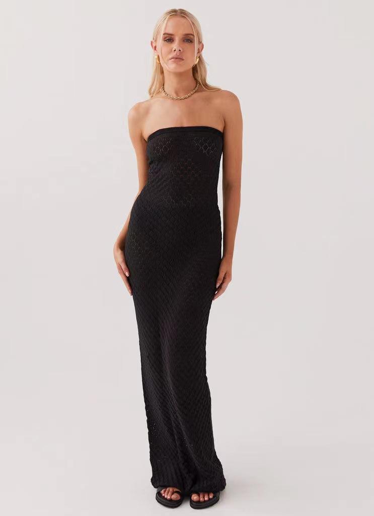 2025 Nuevo Estilo Sexy Transfronterizo Europeo y Americano Ropa de Mujer Vestido Tubo Top sin Espalda con Aberturas Sexy de Gama Alta para Mujer Verano