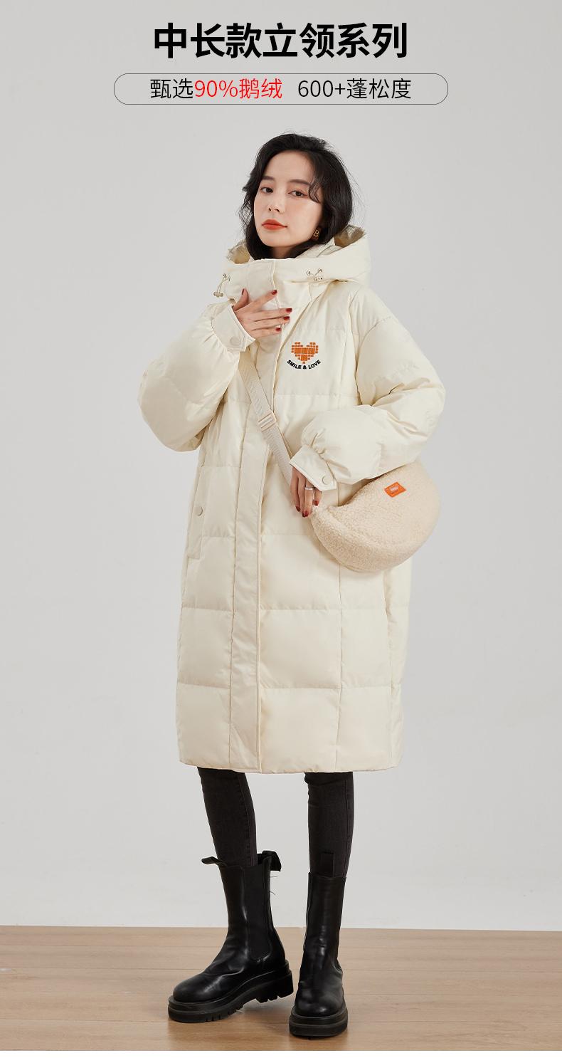 Chaqueta de Plumón para Mujer Yaya 2023 Otoño/Invierno Nueva Media Longitud Holgada Sencilla Versátil con Capucha Estilo Coreano Abrigo de Plumón de Ganso H