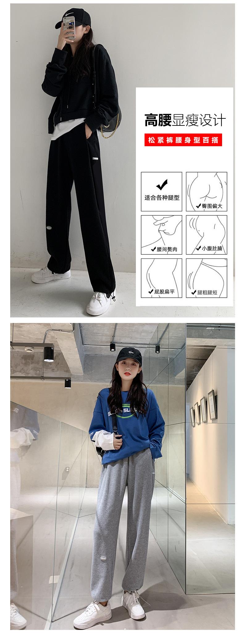 Pantalón de Chándal Gris para Mujer Pierna Suelta con Lazo 2025 Primavera y Verano Popular Cintura Alta Drapeado Look Adelgazante Recto Pierna Ancha