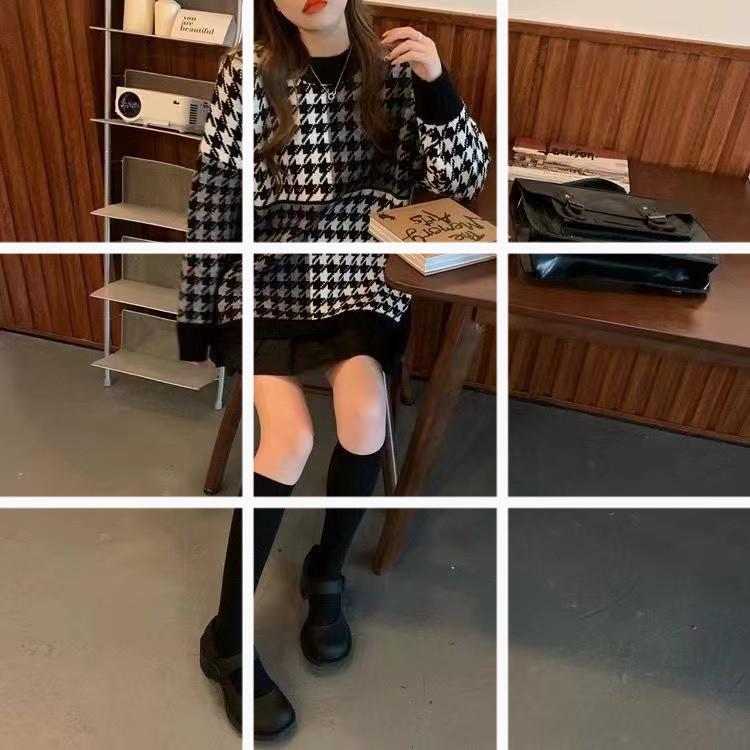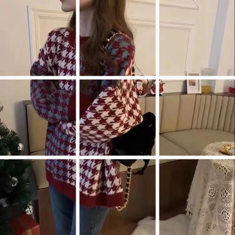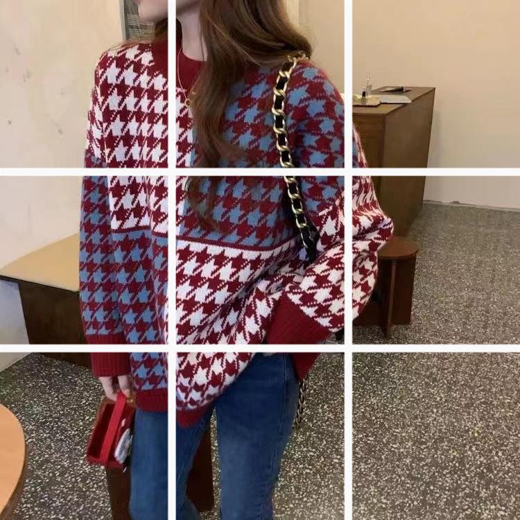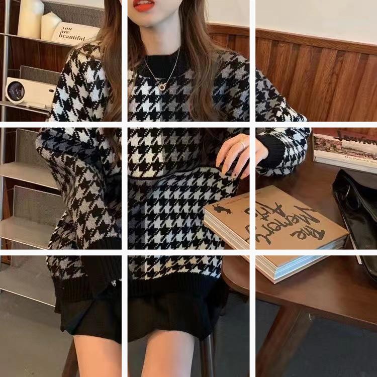 Suéter Grueso para Mujer Otoño e Invierno Diseño Pata de Gallo Sensación Adelgazante Nicho Suéter de Punto
