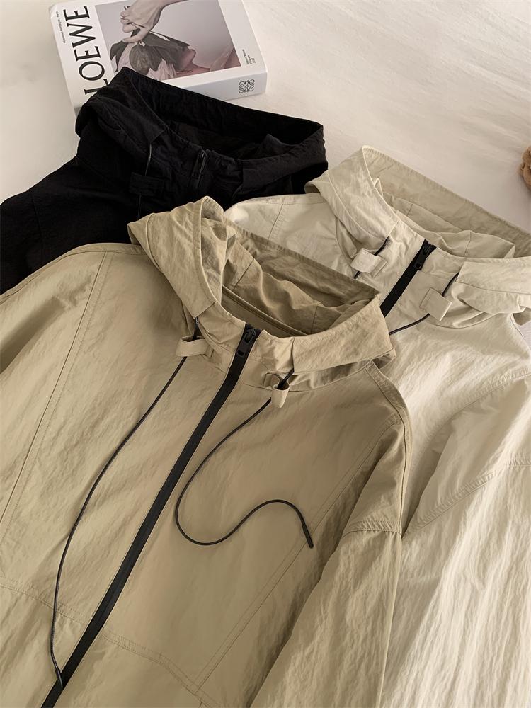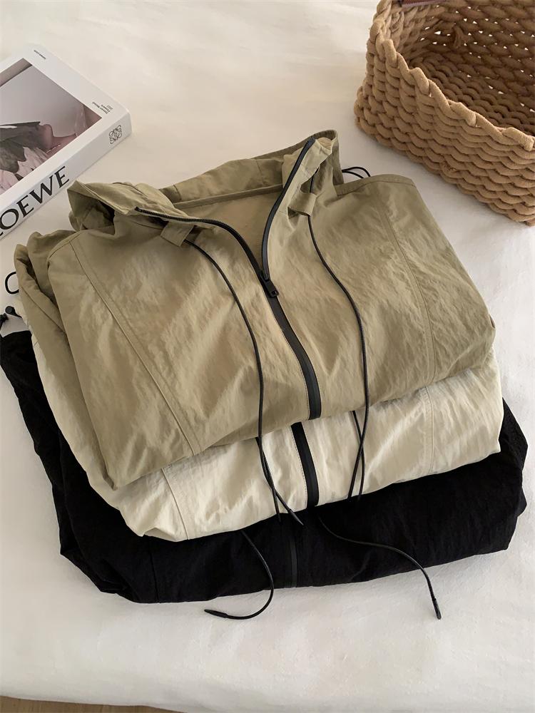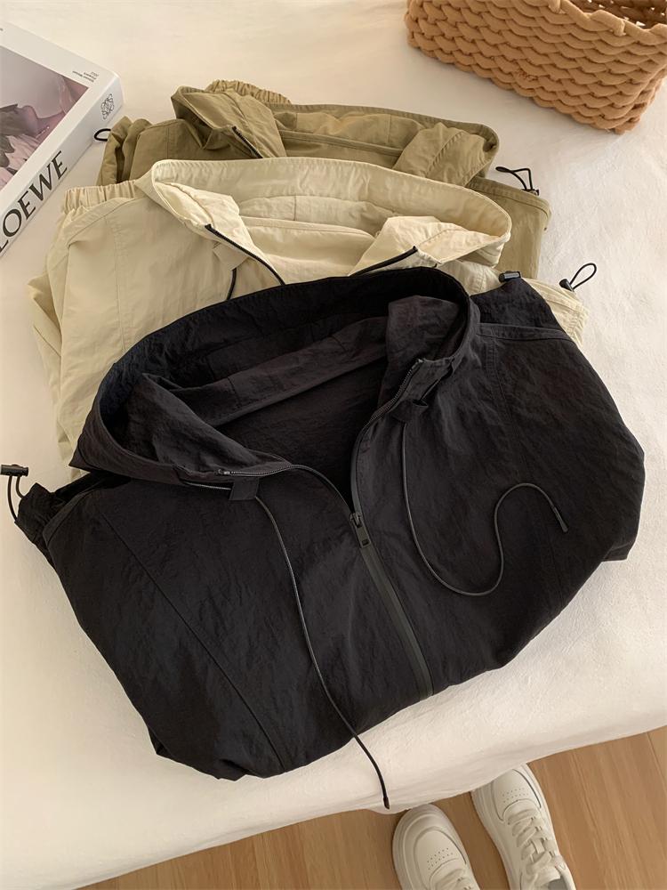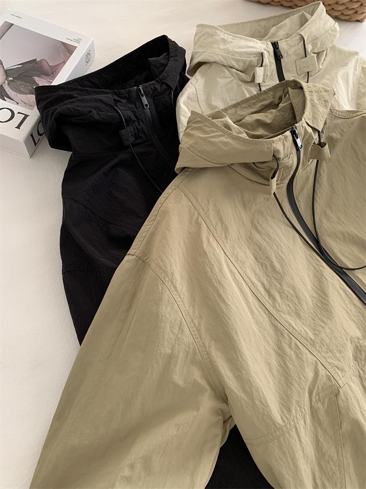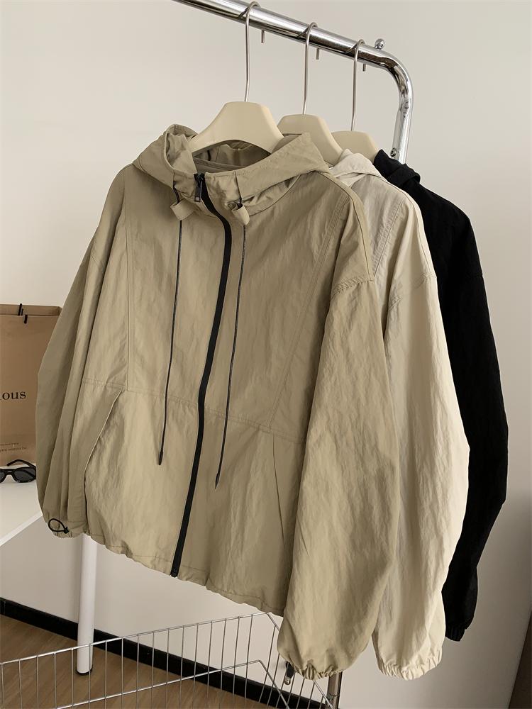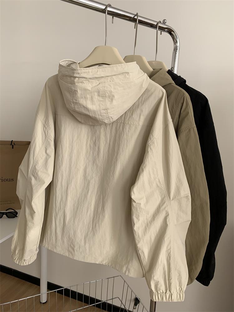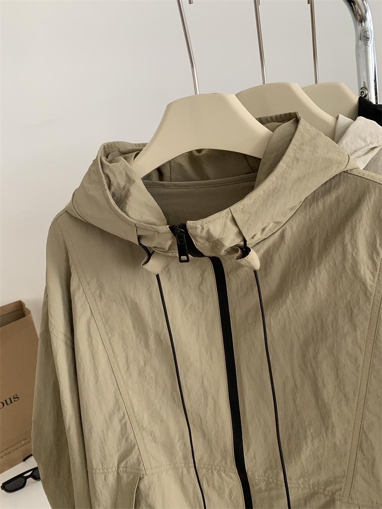 Chaqueta Casual para Exterior con Protección Solar de Primavera para Mujer, Corte Holgado Adelgazante, Cuello Alto, con Capucha, Cortavientos, Cierre de Cremallera, Camisa Moderna