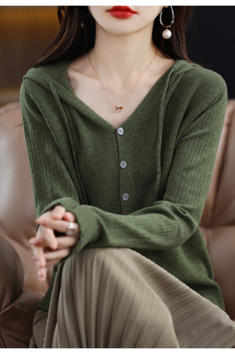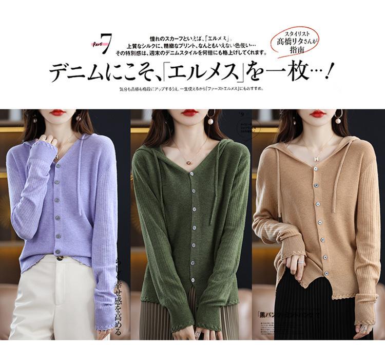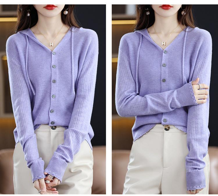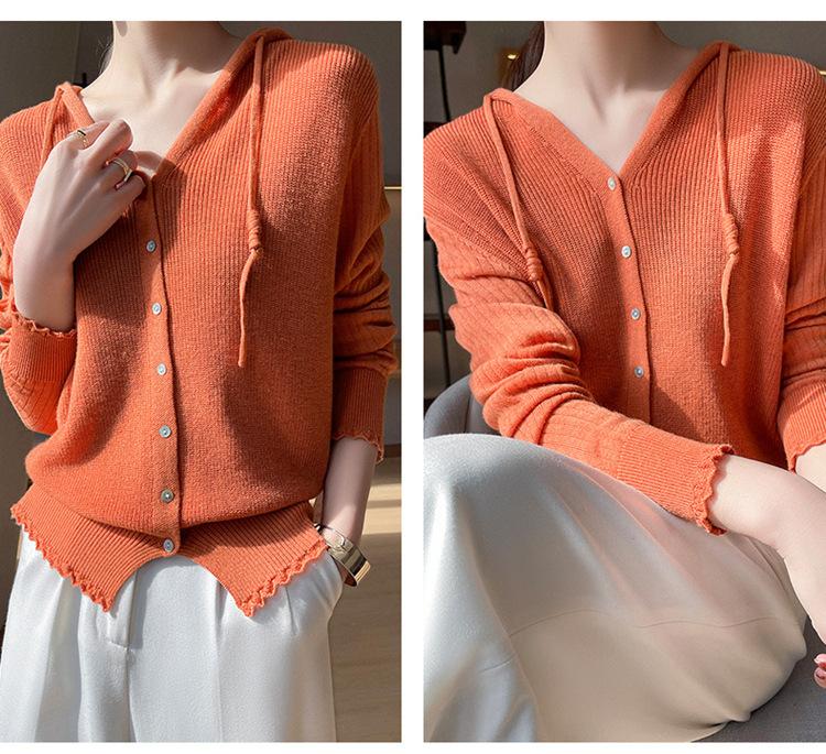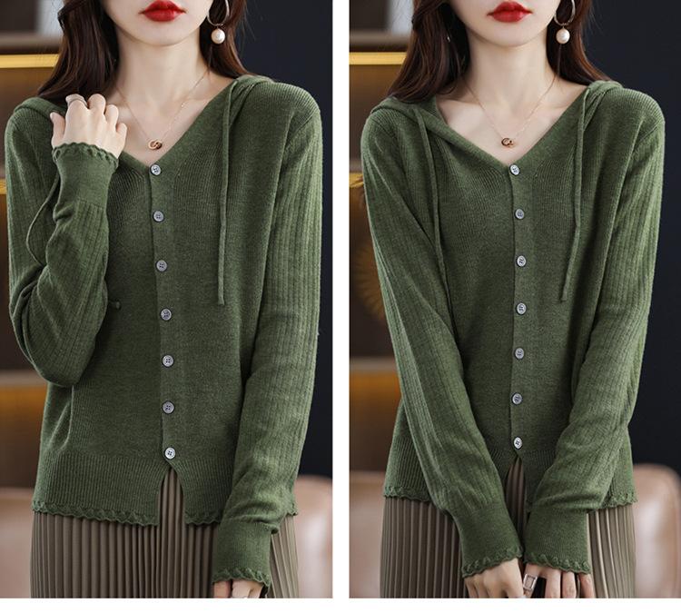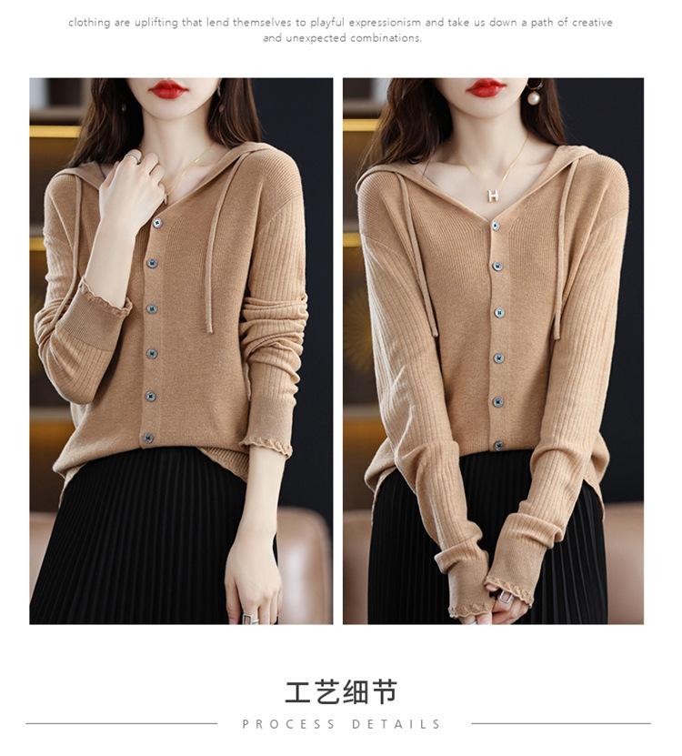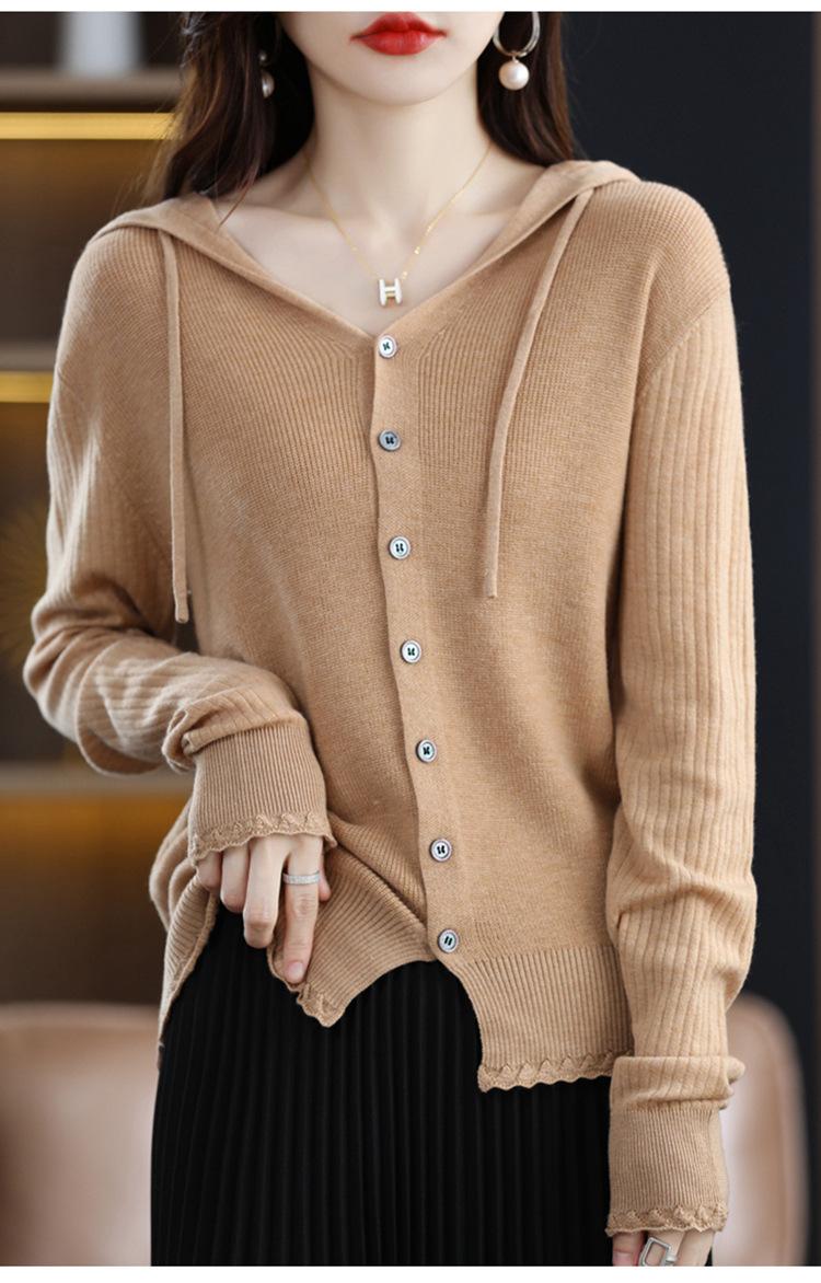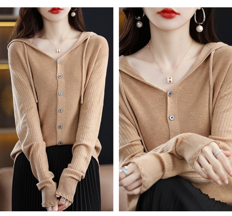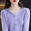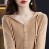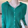 Cárdigan de lana peinada con capucha para mujer, primavera y otoño, nuevo, suelto, de punto, fino, de manga larga, abrigo con capucha