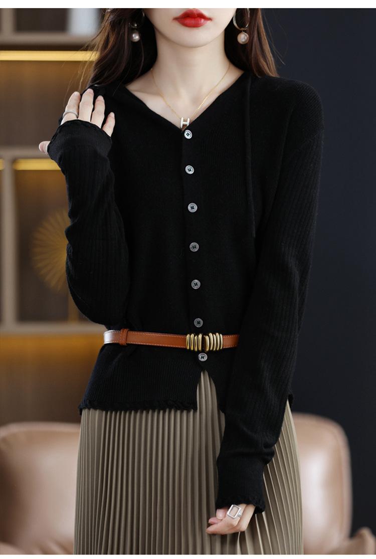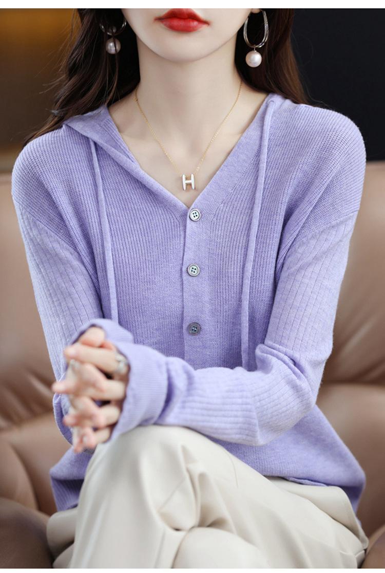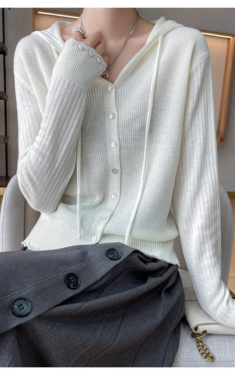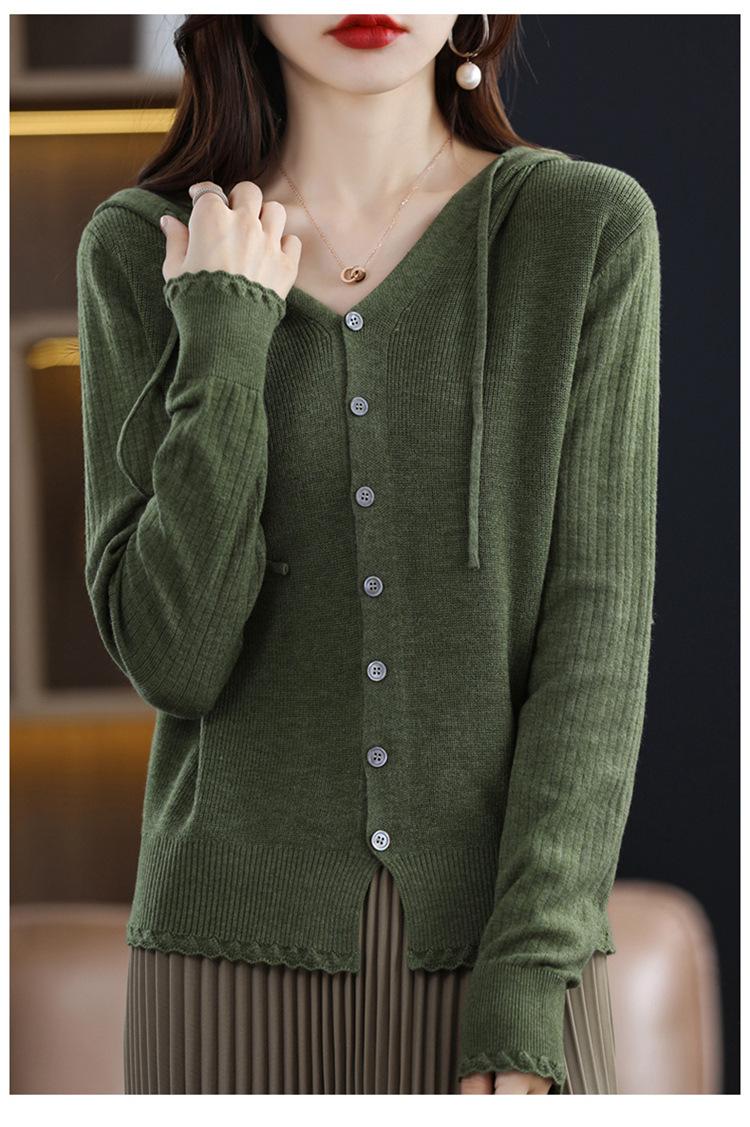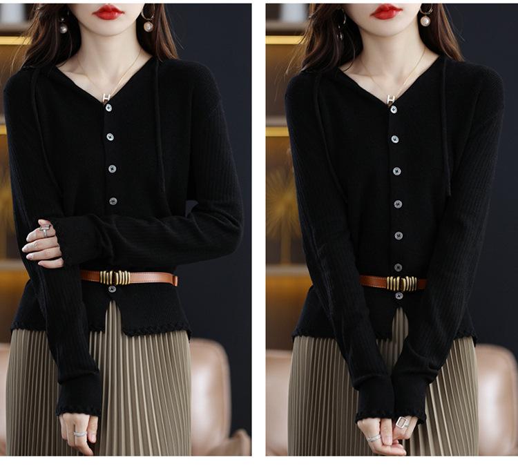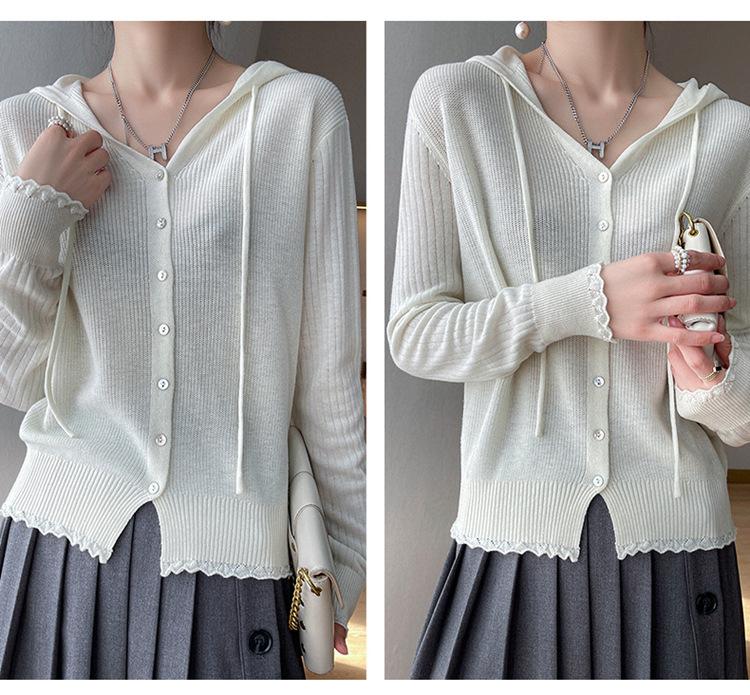 Cárdigan de lana peinada con capucha para mujer, primavera y otoño, nuevo, suelto, de punto, fino, de manga larga, abrigo con capucha