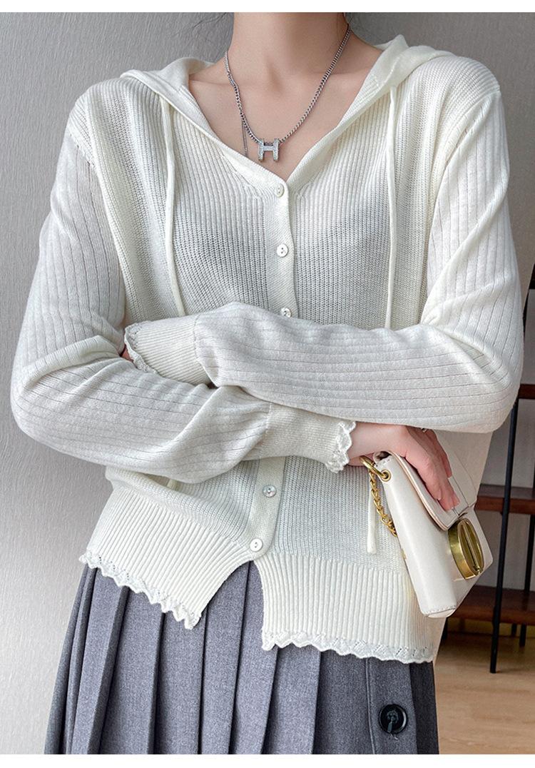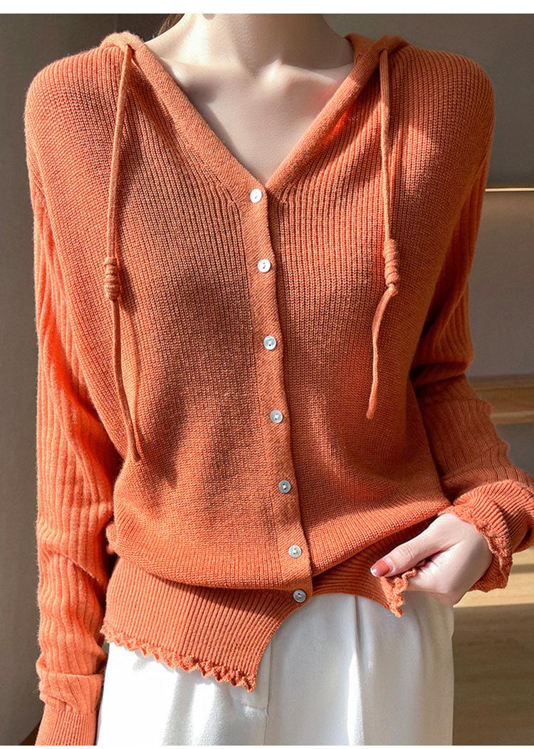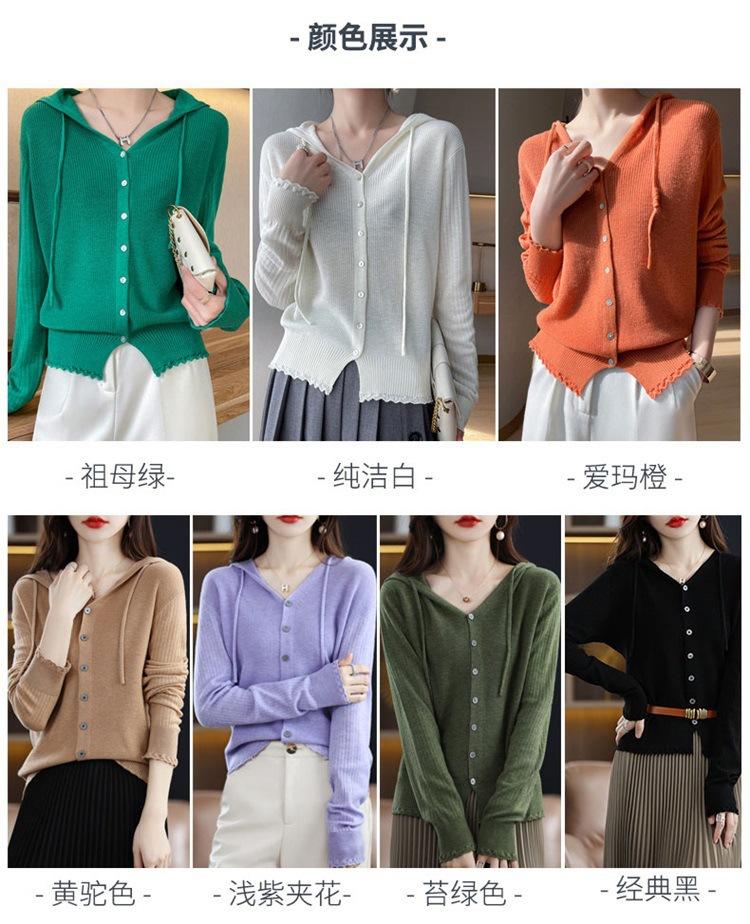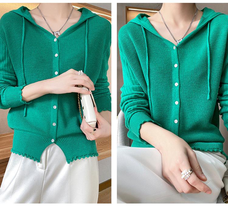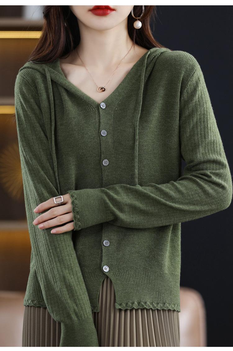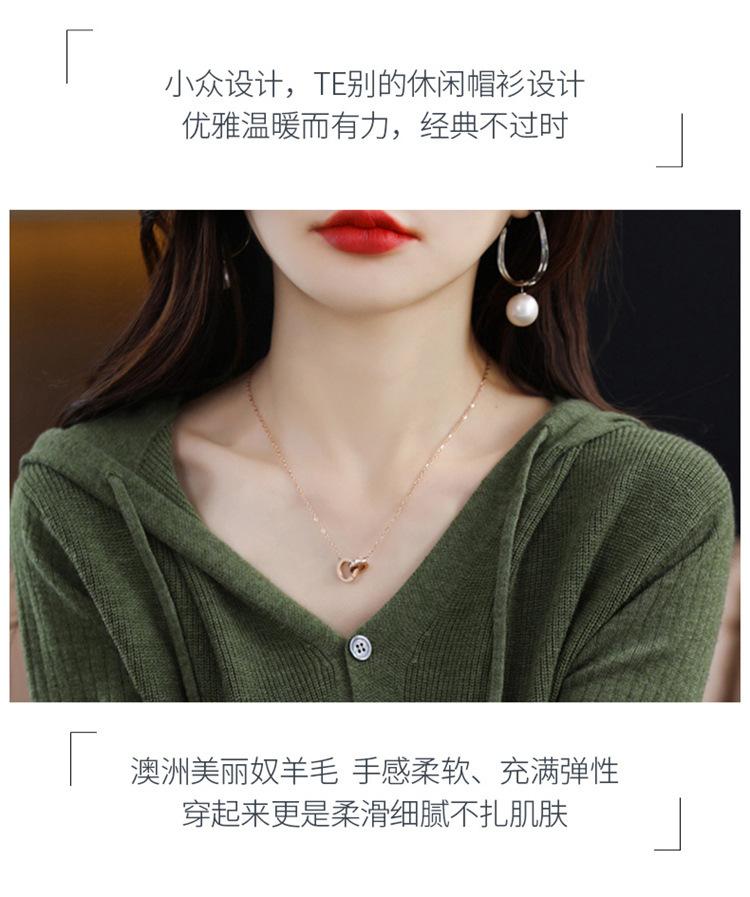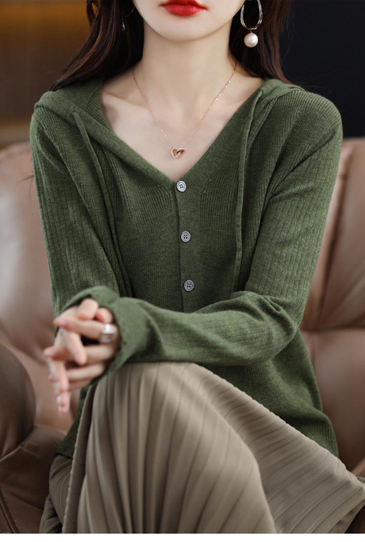 Cárdigan de lana peinada con capucha para mujer, primavera y otoño, nuevo, suelto, de punto, fino, de manga larga, abrigo con capucha