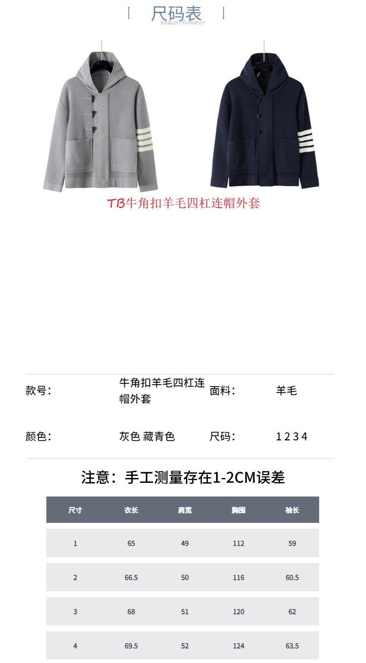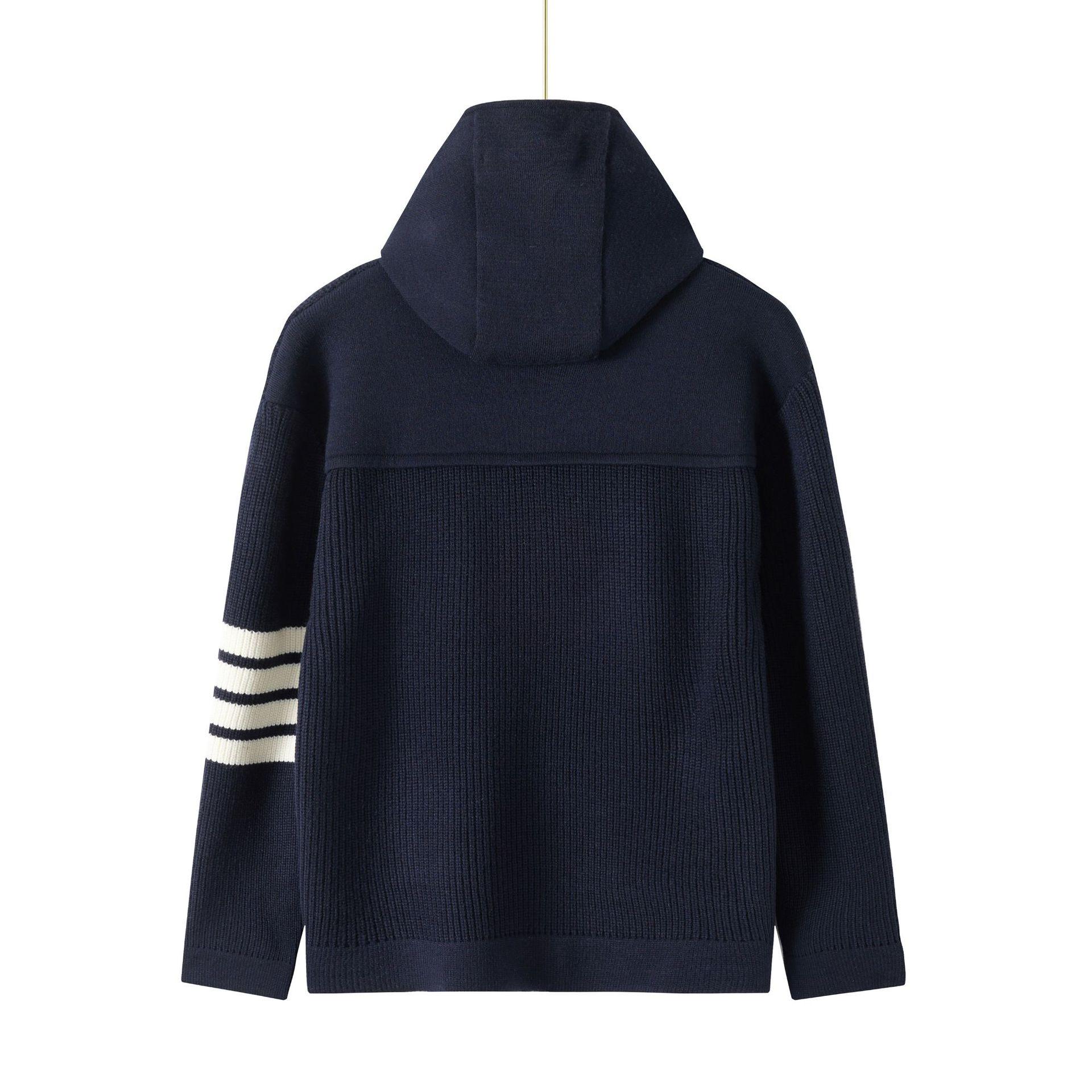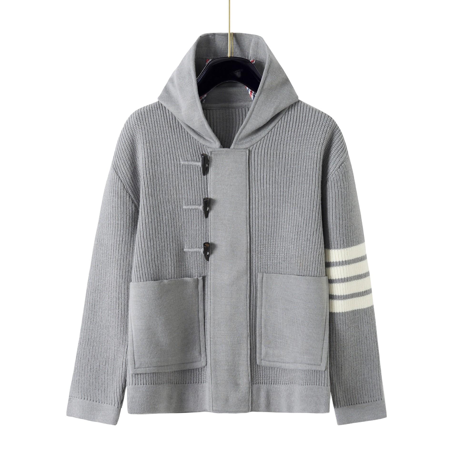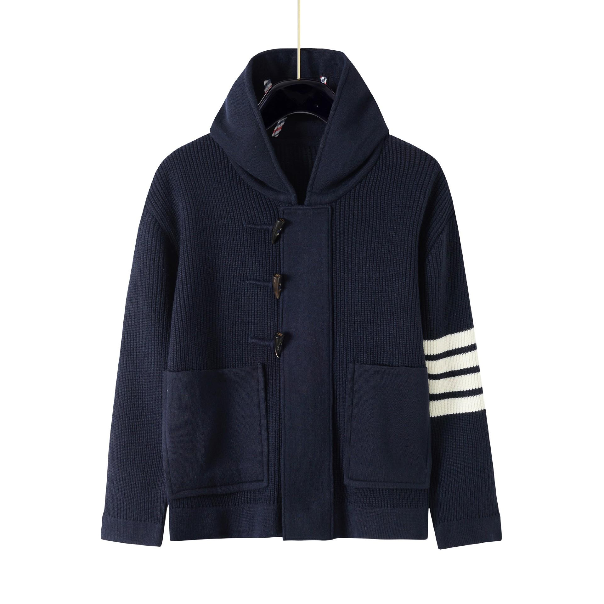 TB nuevo abrigo de mujer cárdigan de punto grueso otoño e invierno abrigo de lana con capucha de cuatro barras con hebilla de cuerno suelto