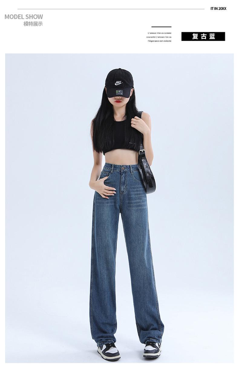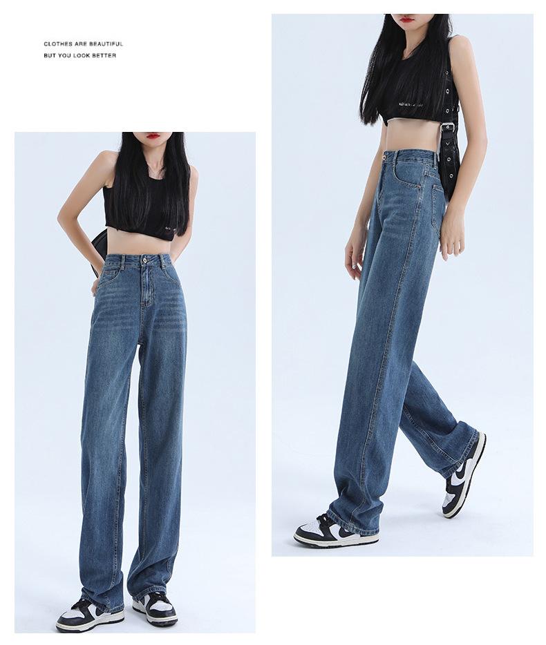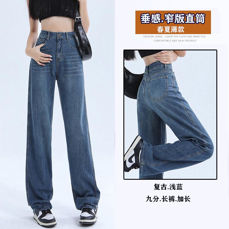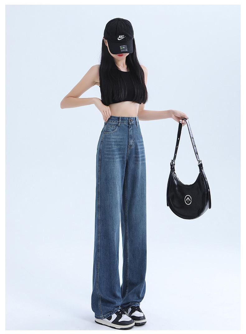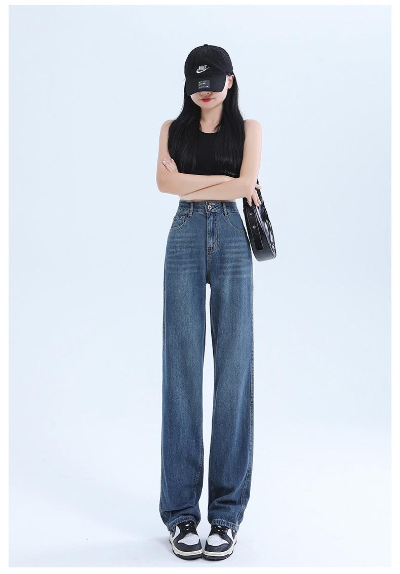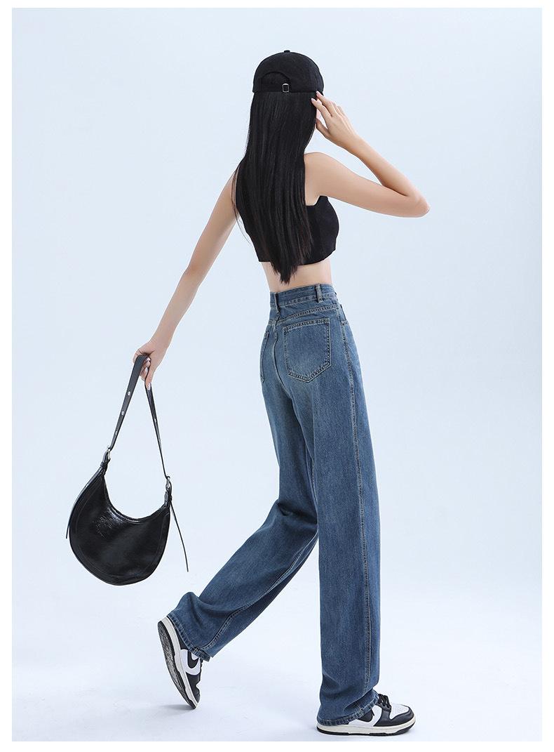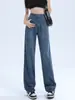 Jeans de Pierna Ancha para Mujer 2025 Otoño Nuevo Slim Estrecho Recto Pantalones Sueltos de Cintura Alta Drapeados Versátiles Pantalones Largos hasta el Piso