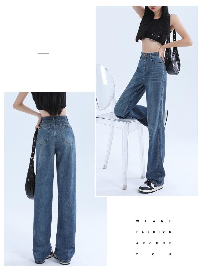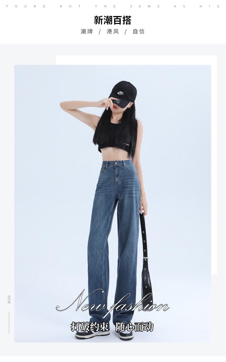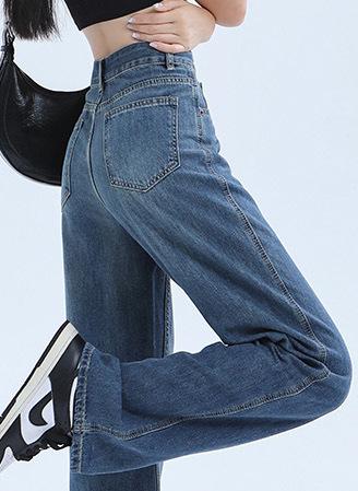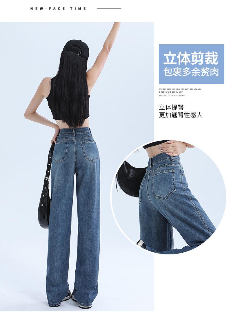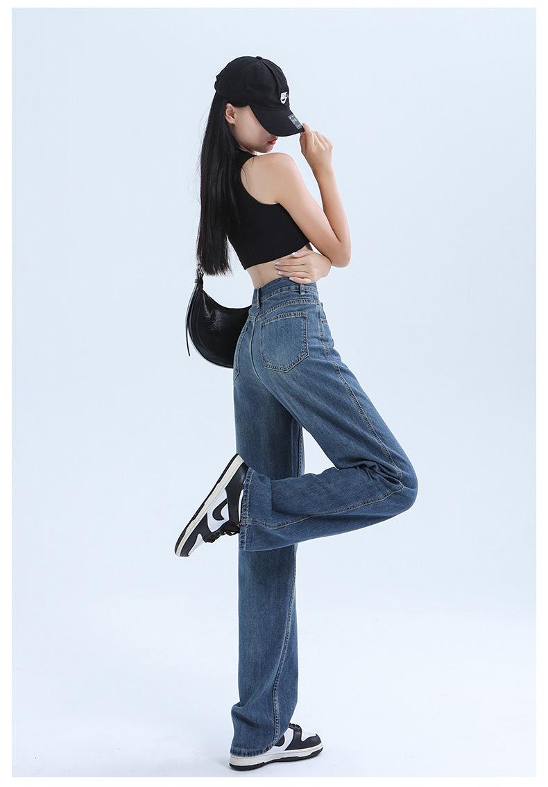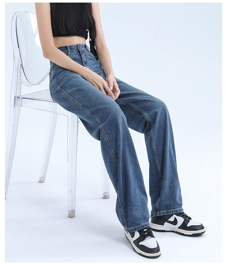 Jeans de Pierna Ancha para Mujer 2025 Otoño Nuevo Slim Estrecho Recto Pantalones Sueltos de Cintura Alta Drapeados Versátiles Pantalones Largos hasta el Piso