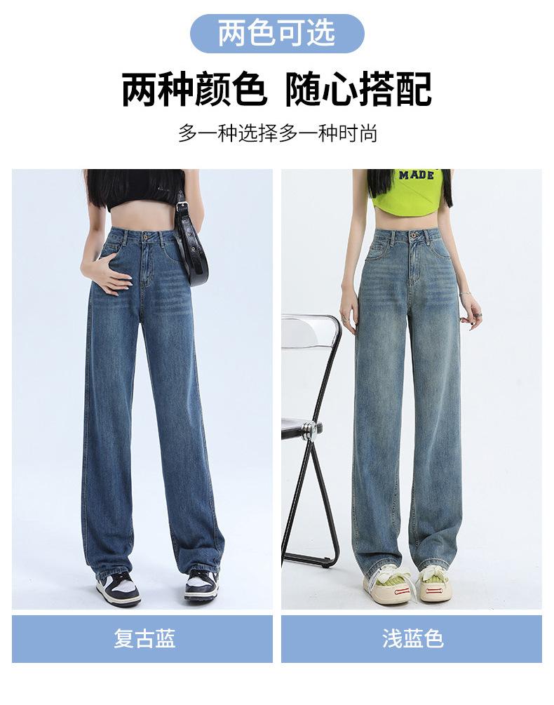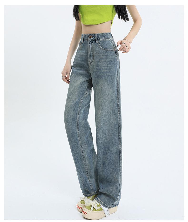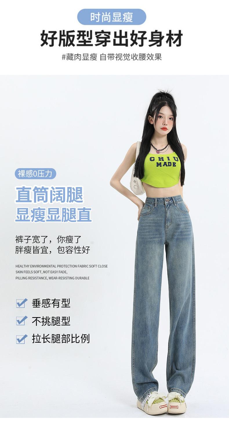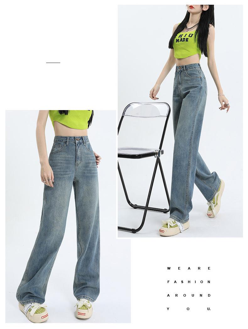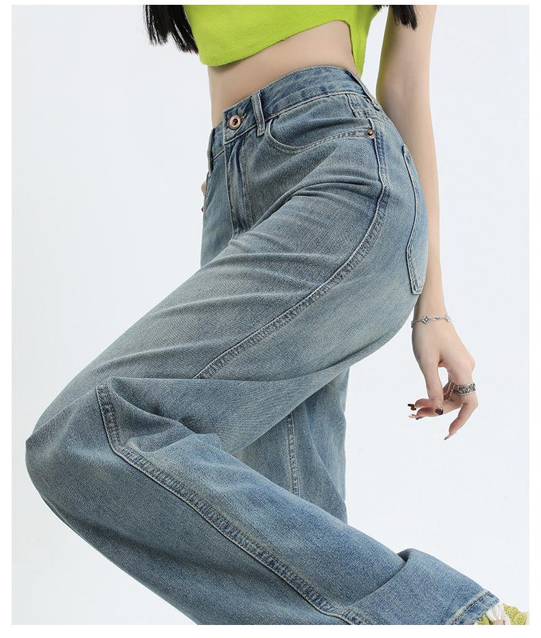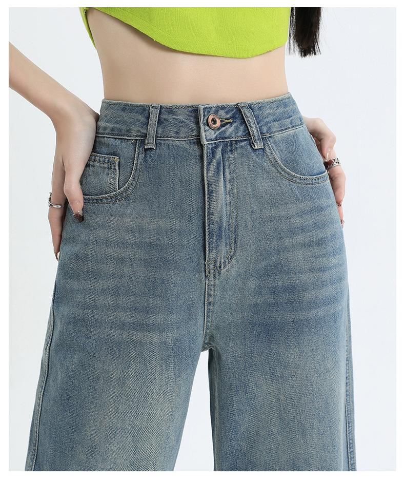 Jeans de Pierna Ancha para Mujer 2025 Otoño Nuevo Slim Estrecho Recto Pantalones Sueltos de Cintura Alta Drapeados Versátiles Pantalones Largos hasta el Piso