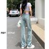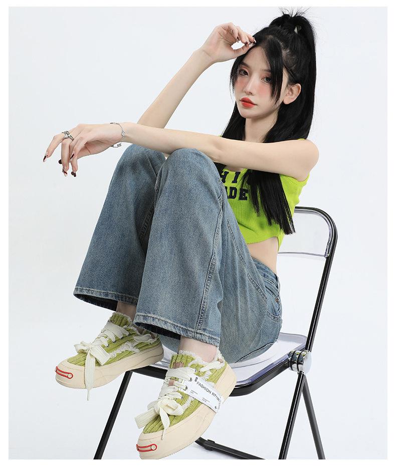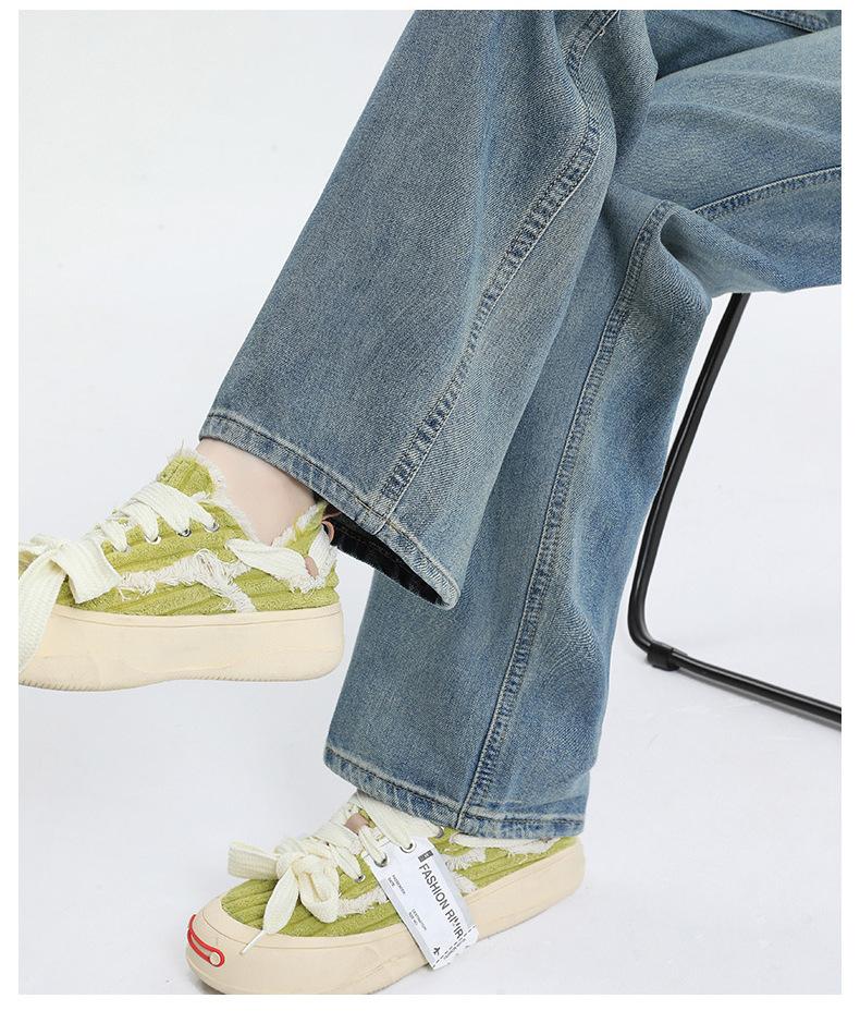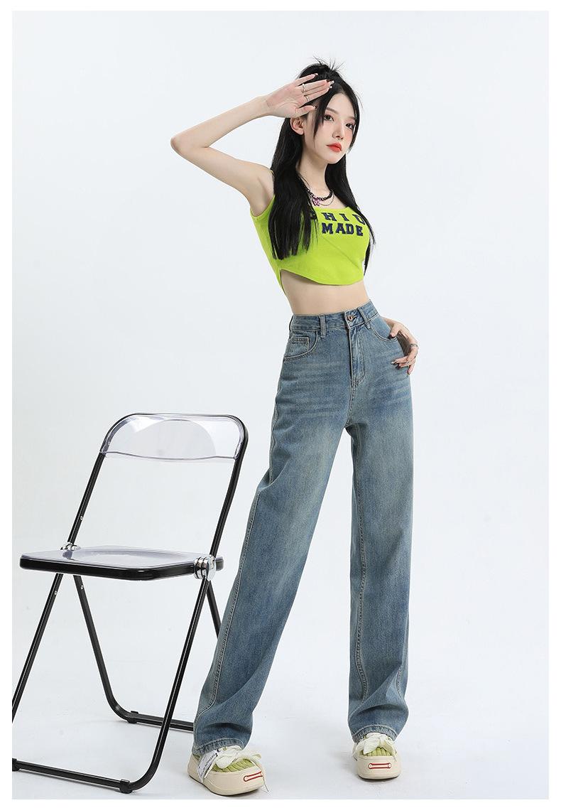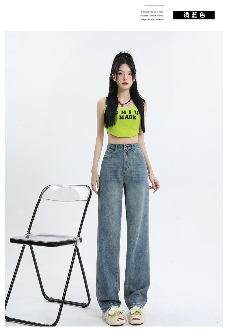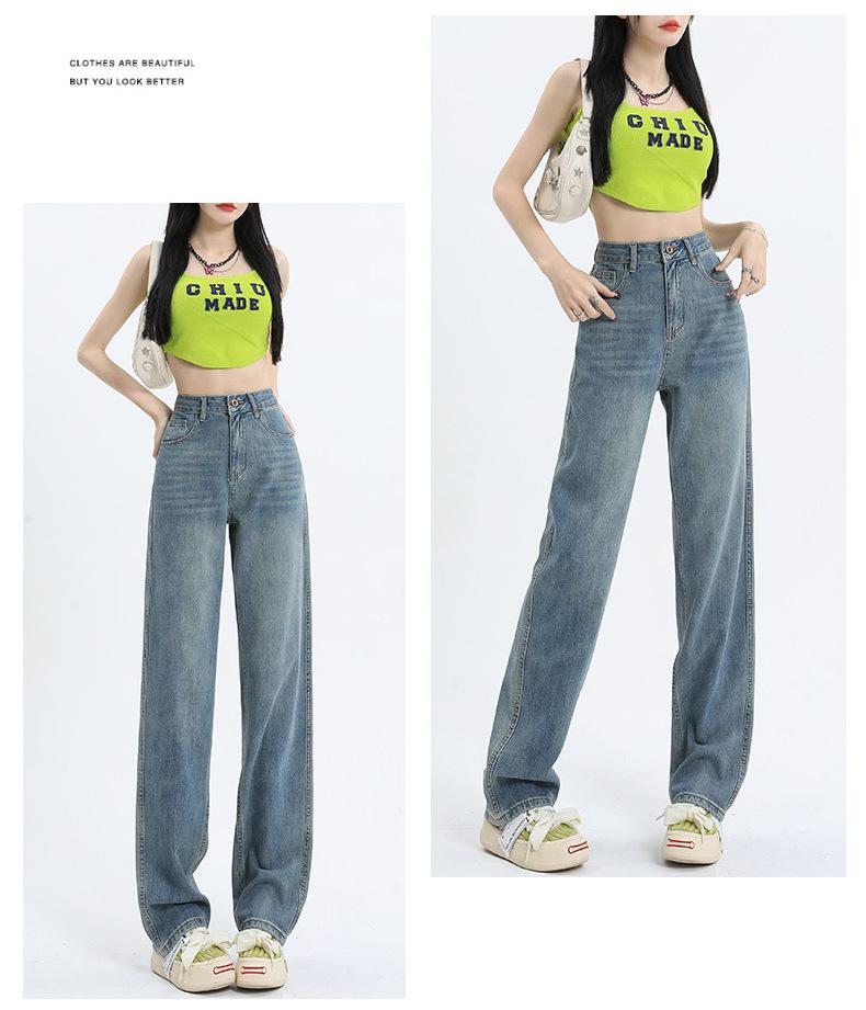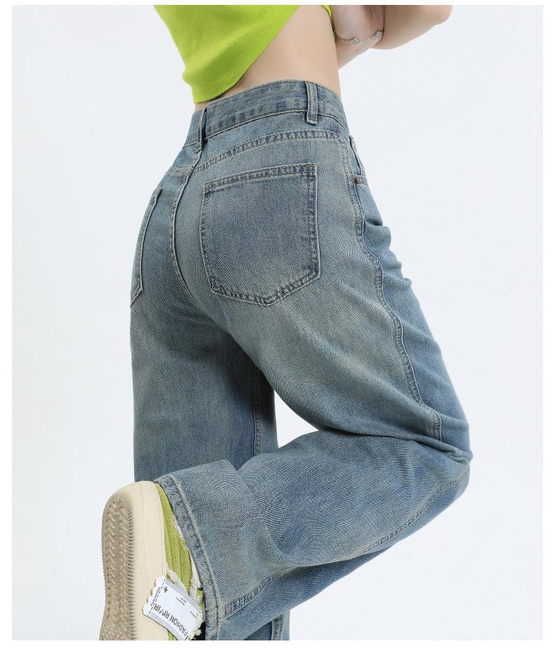 Jeans de Pierna Ancha para Mujer 2025 Otoño Nuevo Slim Estrecho Recto Pantalones Sueltos de Cintura Alta Drapeados Versátiles Pantalones Largos hasta el Piso