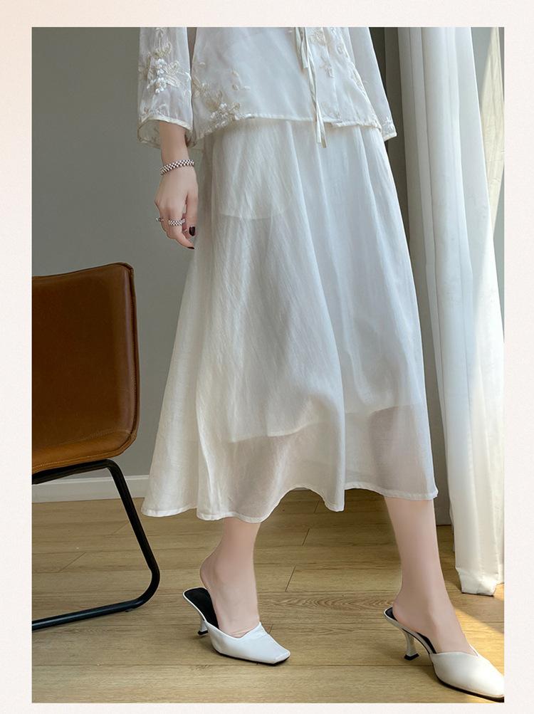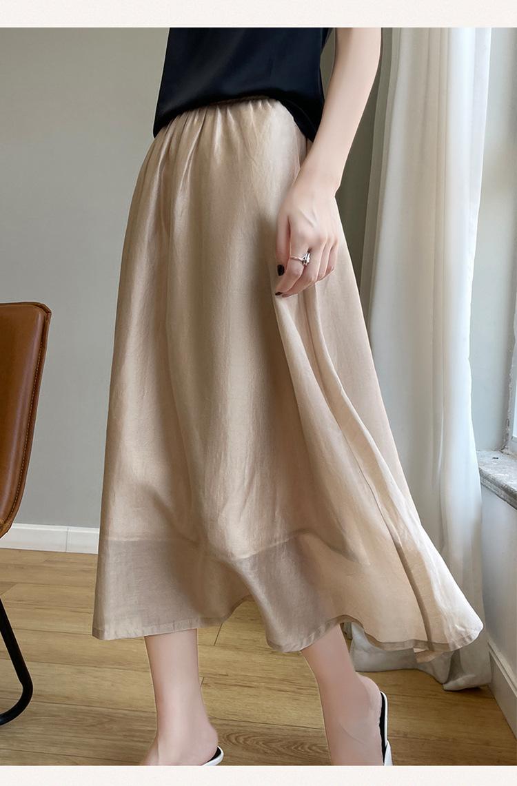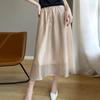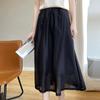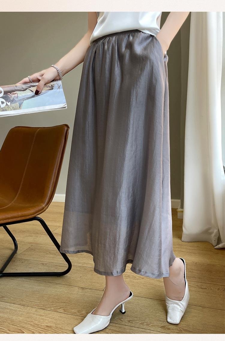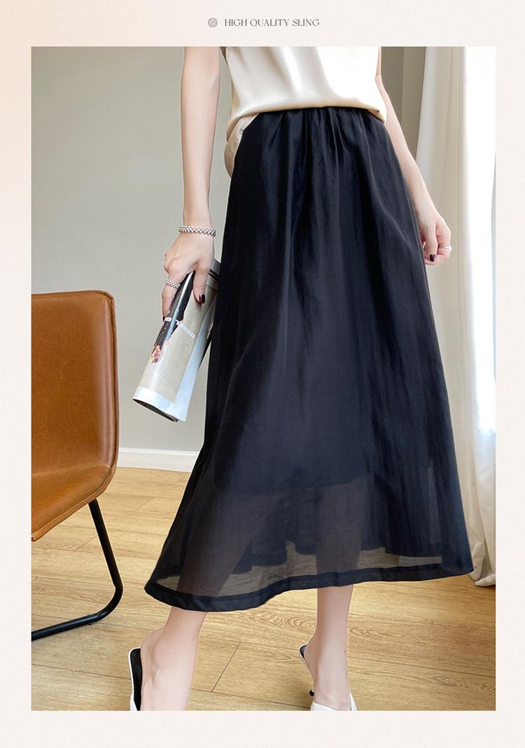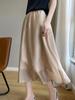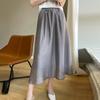 Falda de Seda de Hielo Transfronteriza para Mujer Verano Nuevo Cintura Alta Línea A Largo Medio Color Puro Versátil Falda Larga Falda de Mujer 202