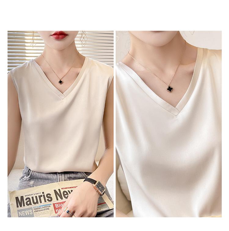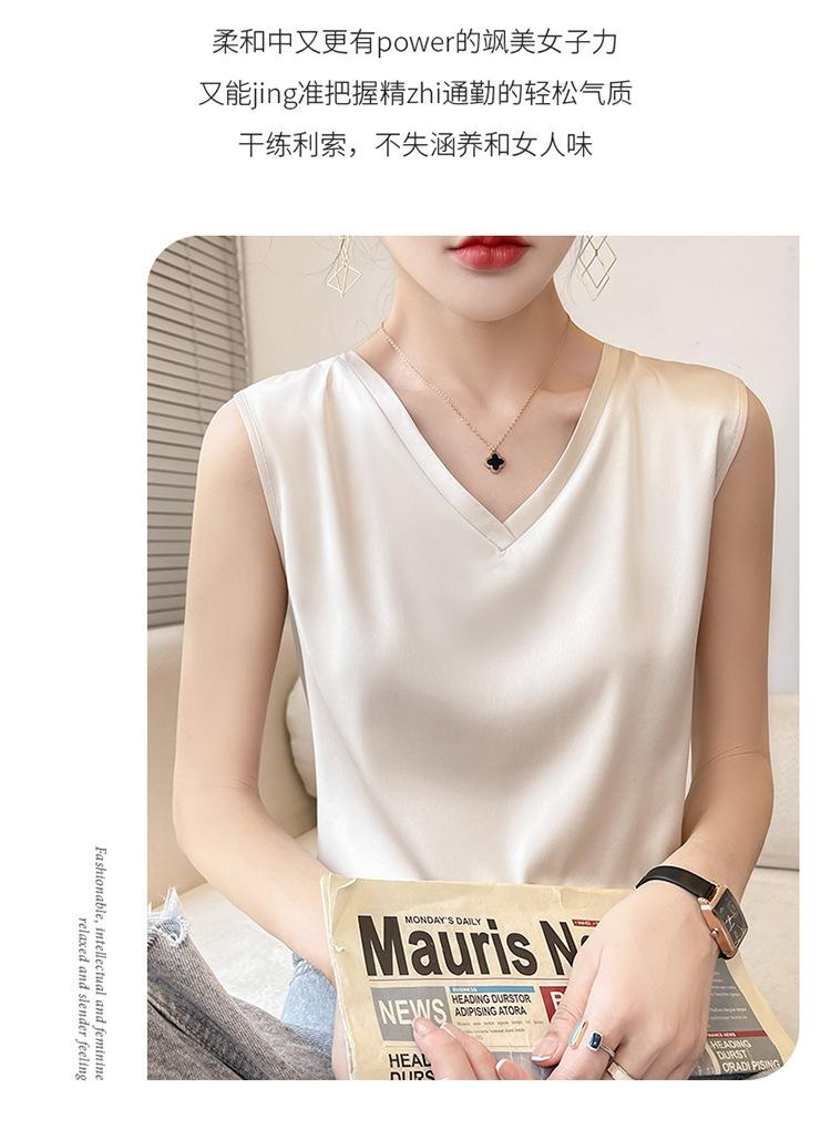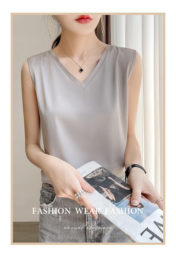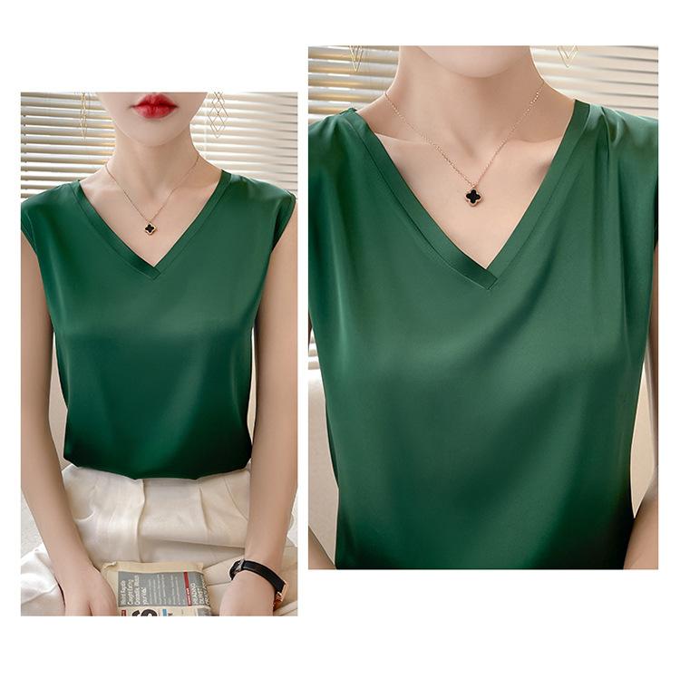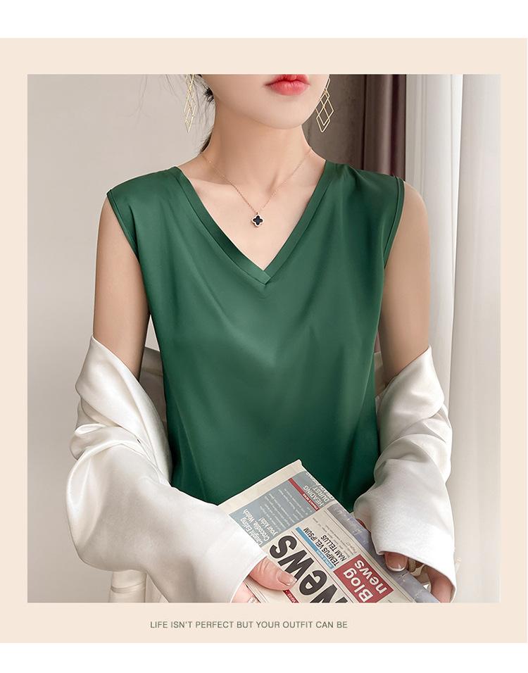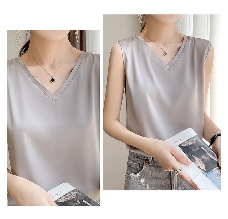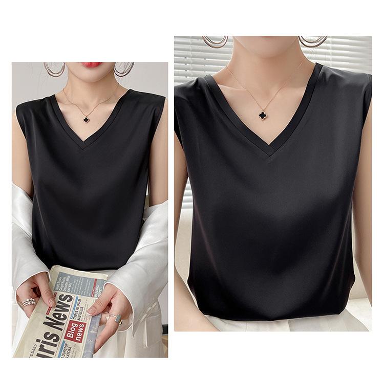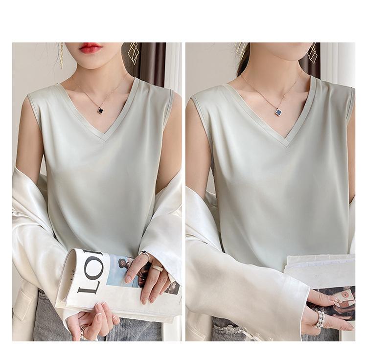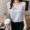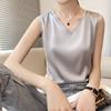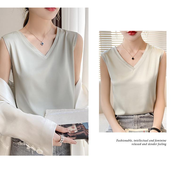 Camisola de mujer con base interior, nuevo chaleco con cuello en V, elegante y a la moda, de satén, sin mangas, holgada, para verano.