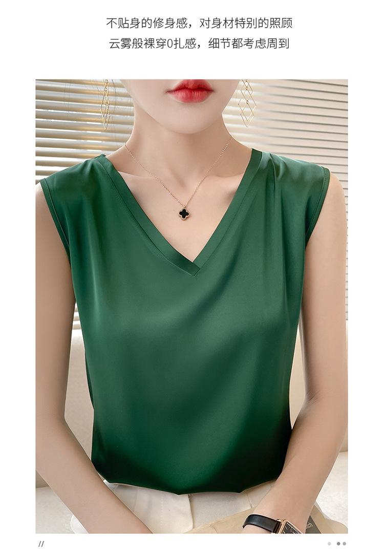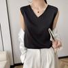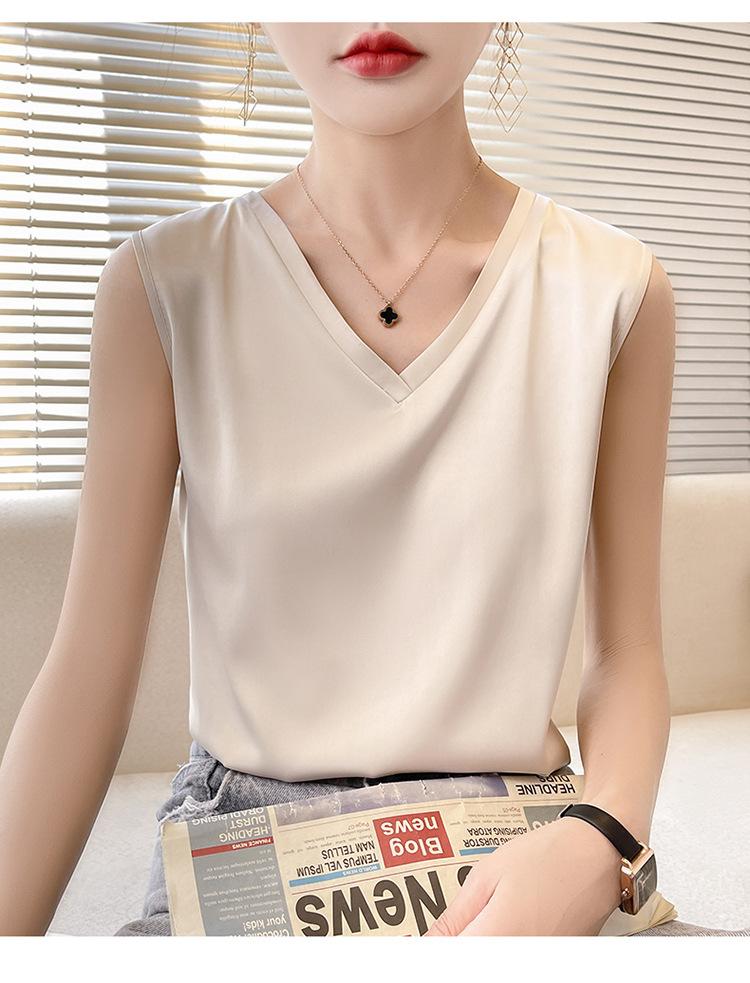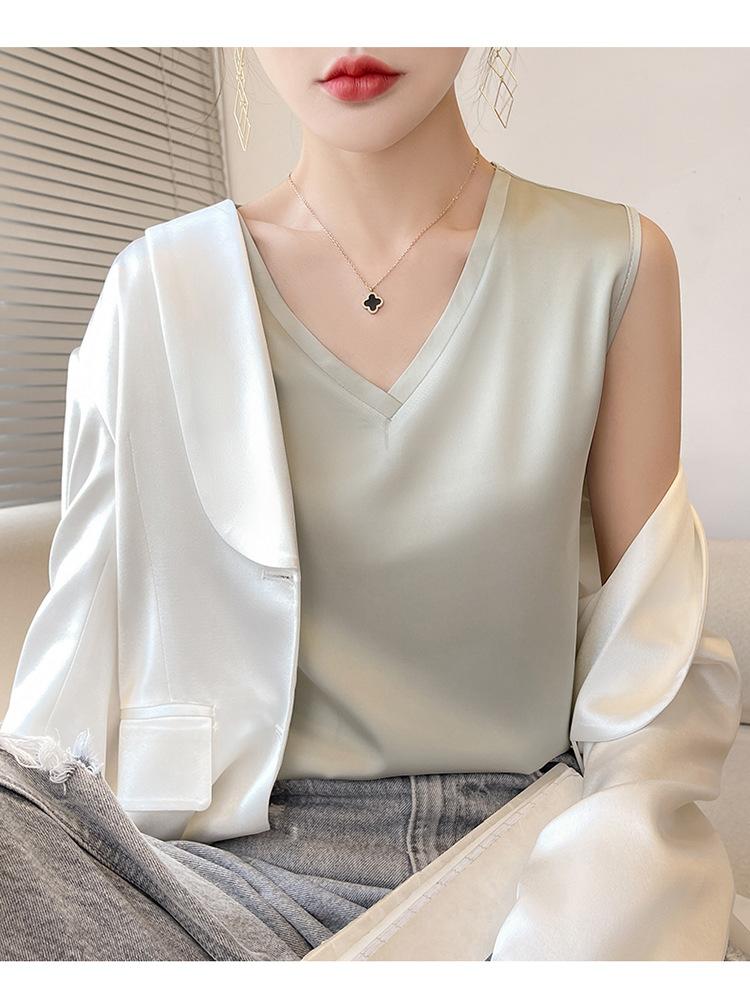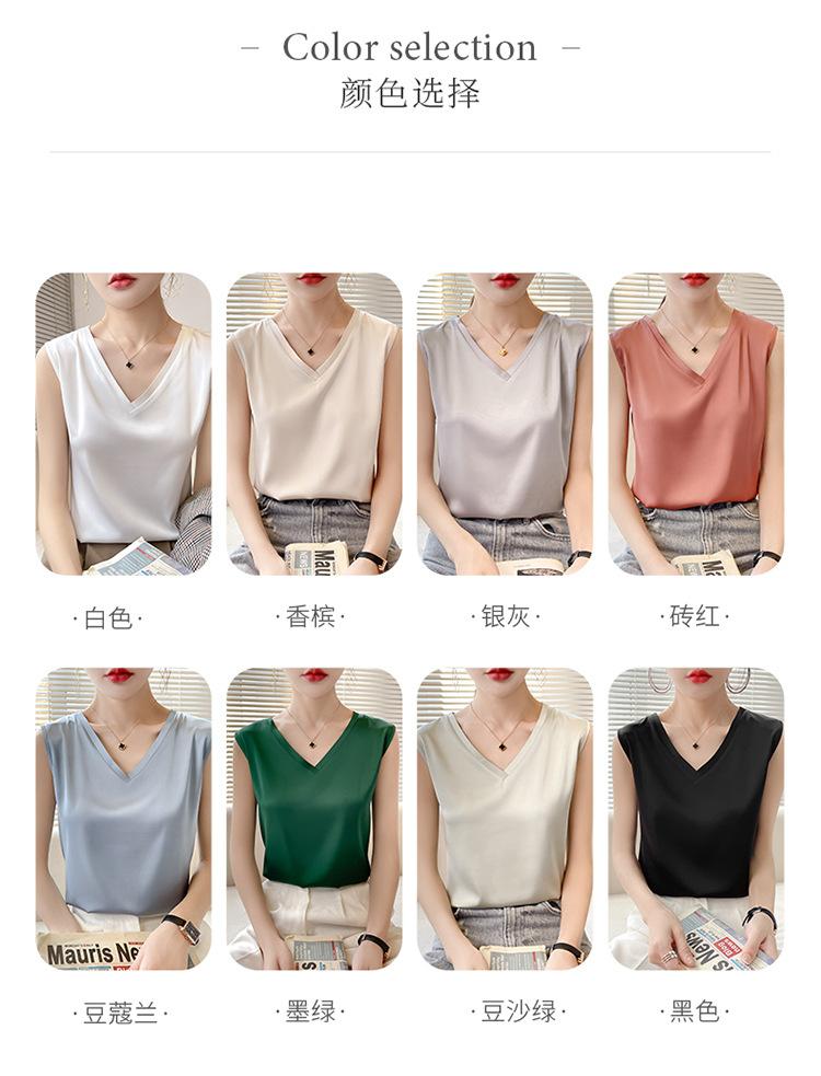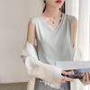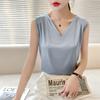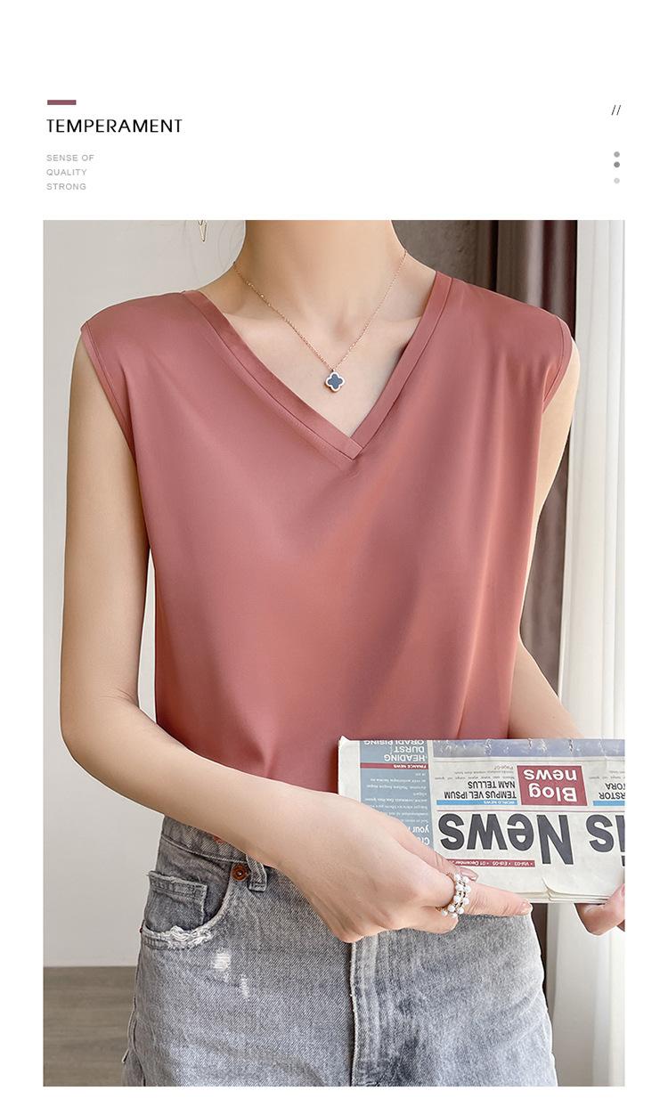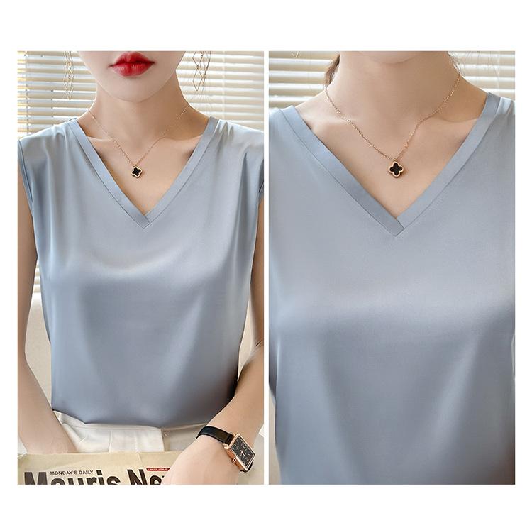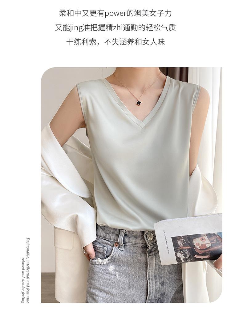 Camisola de mujer con base interior, nuevo chaleco con cuello en V, elegante y a la moda, de satén, sin mangas, holgada, para verano.