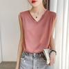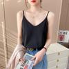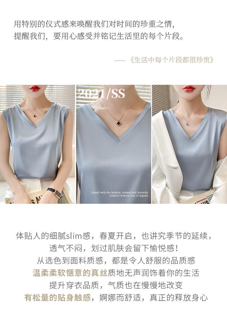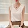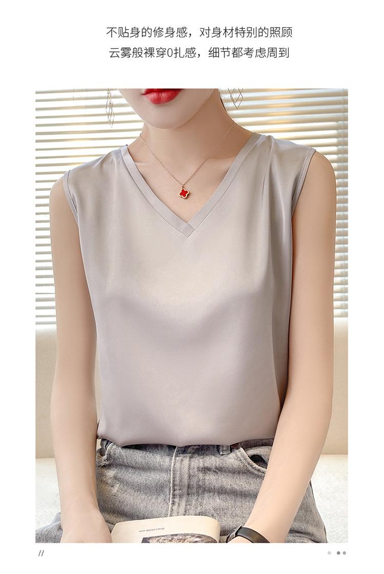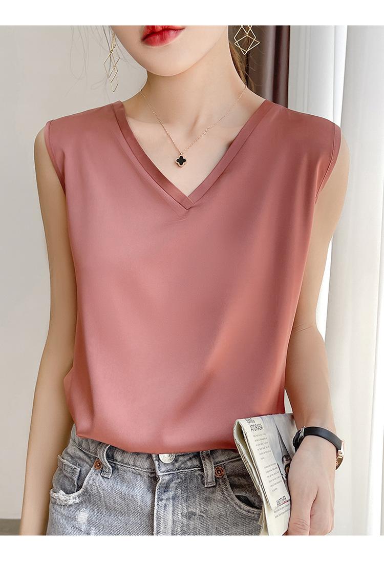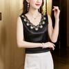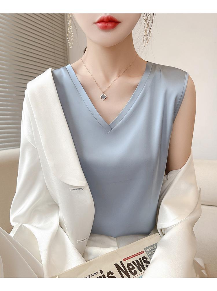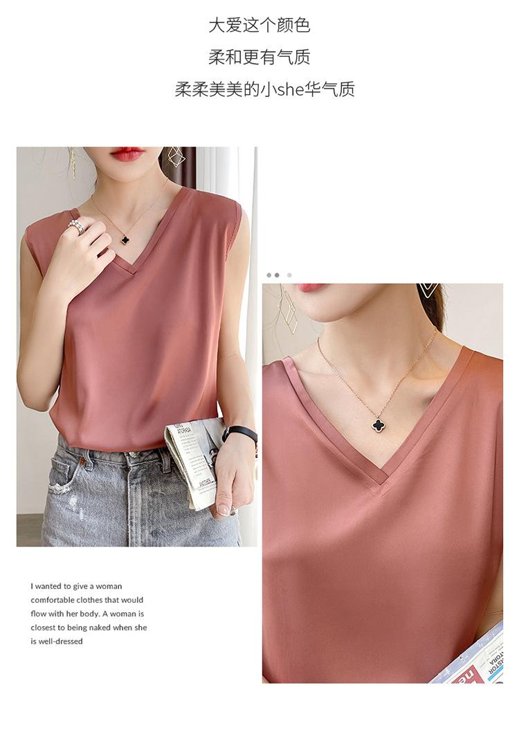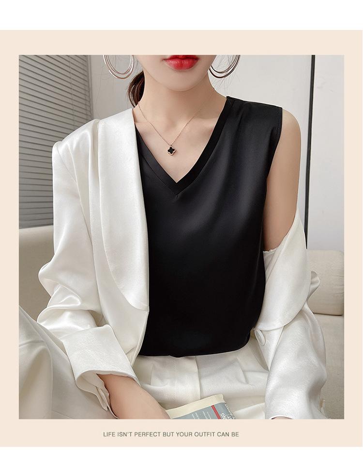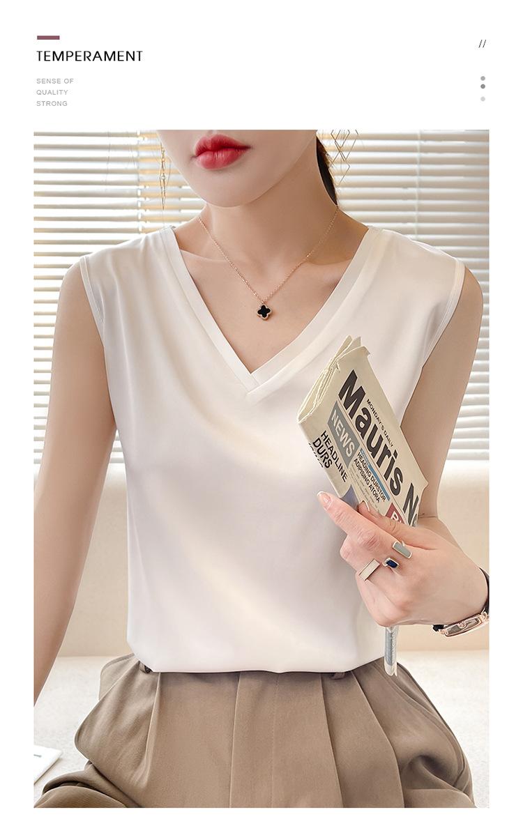 Camisola de mujer con base interior, nuevo chaleco con cuello en V, elegante y a la moda, de satén, sin mangas, holgada, para verano.