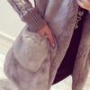 Nuevo abrigo de punto de moda para mujer de otoño e invierno 2023 de largo medio y corte ajustado con costuras de felpa gruesa y capucha