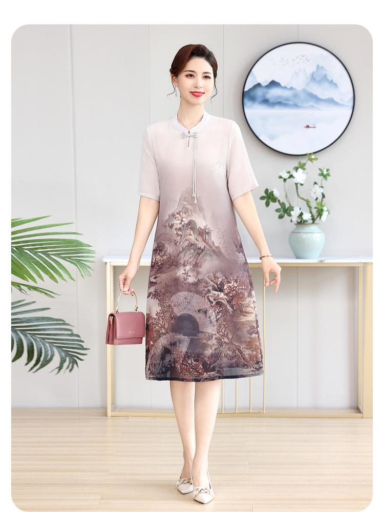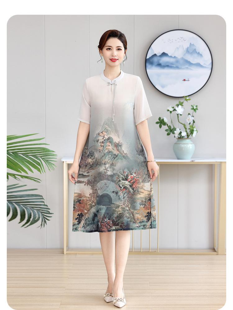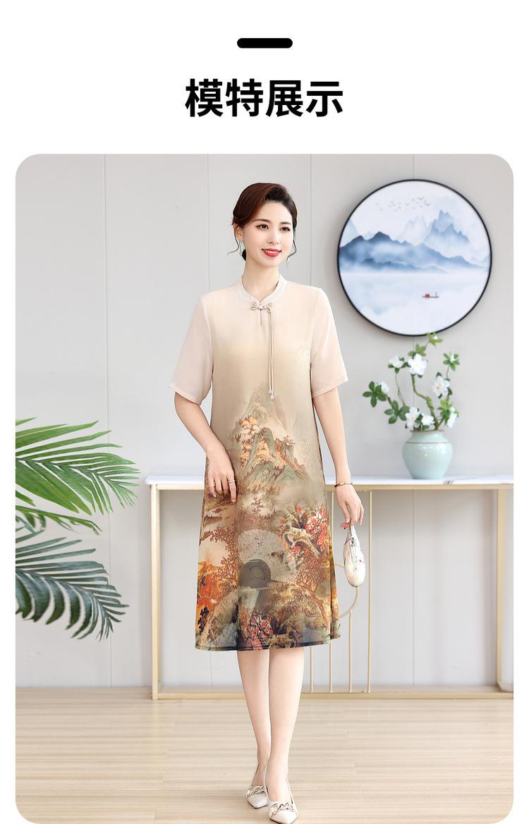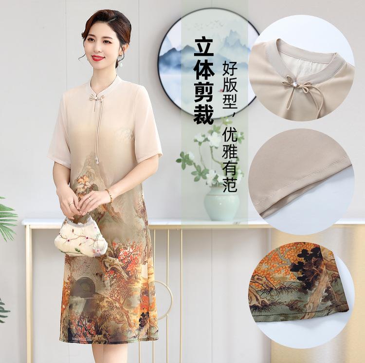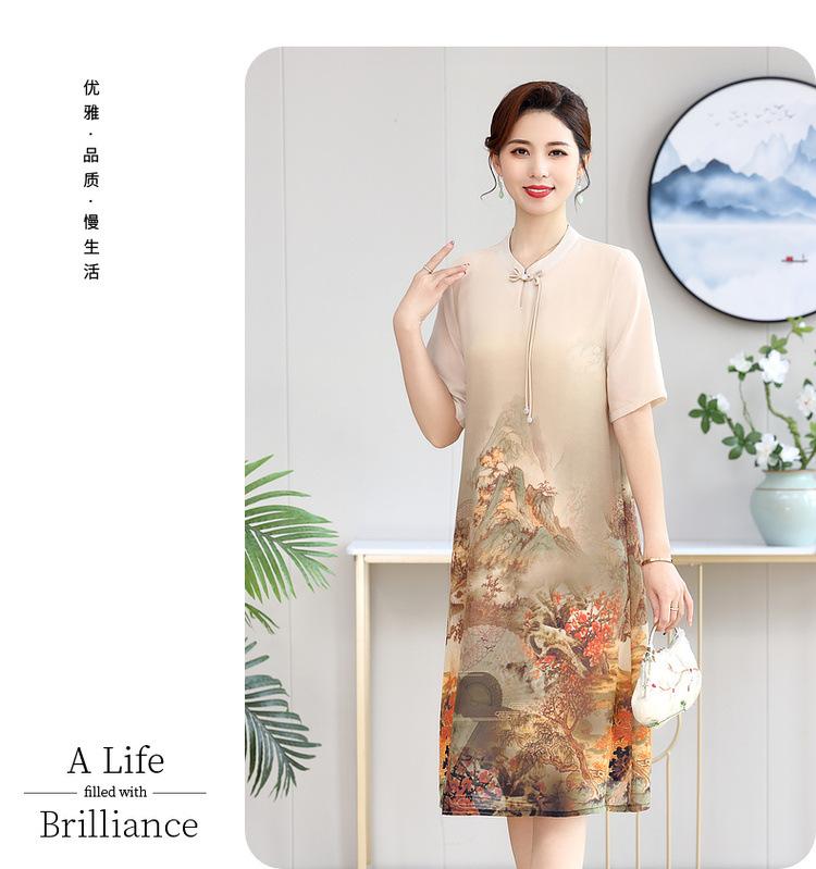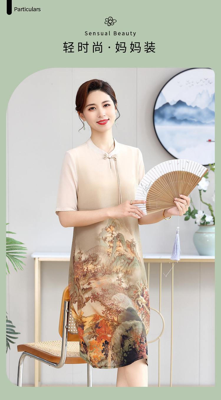Nuevo vestido cheongsam mejorado de madre china, verano 2024, nueva falda bordada elegante para mujeres de mediana edad y mayores para el verano
