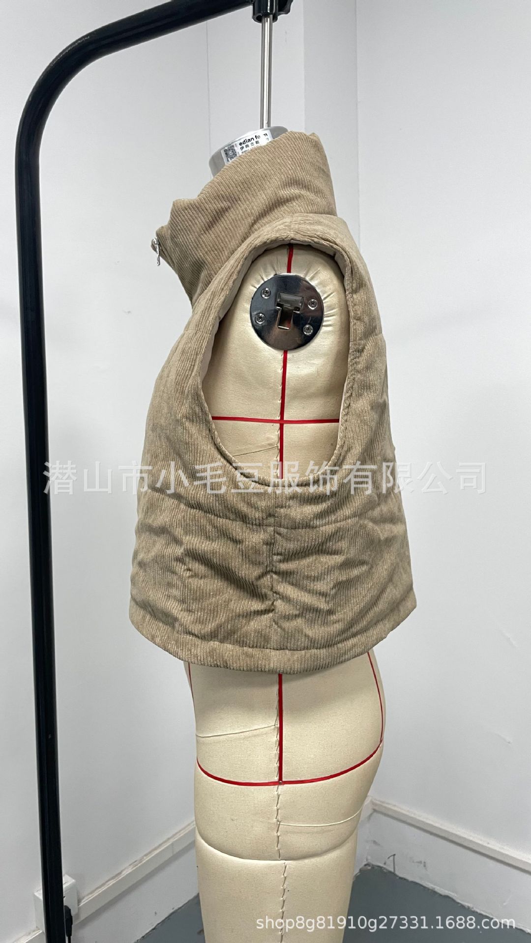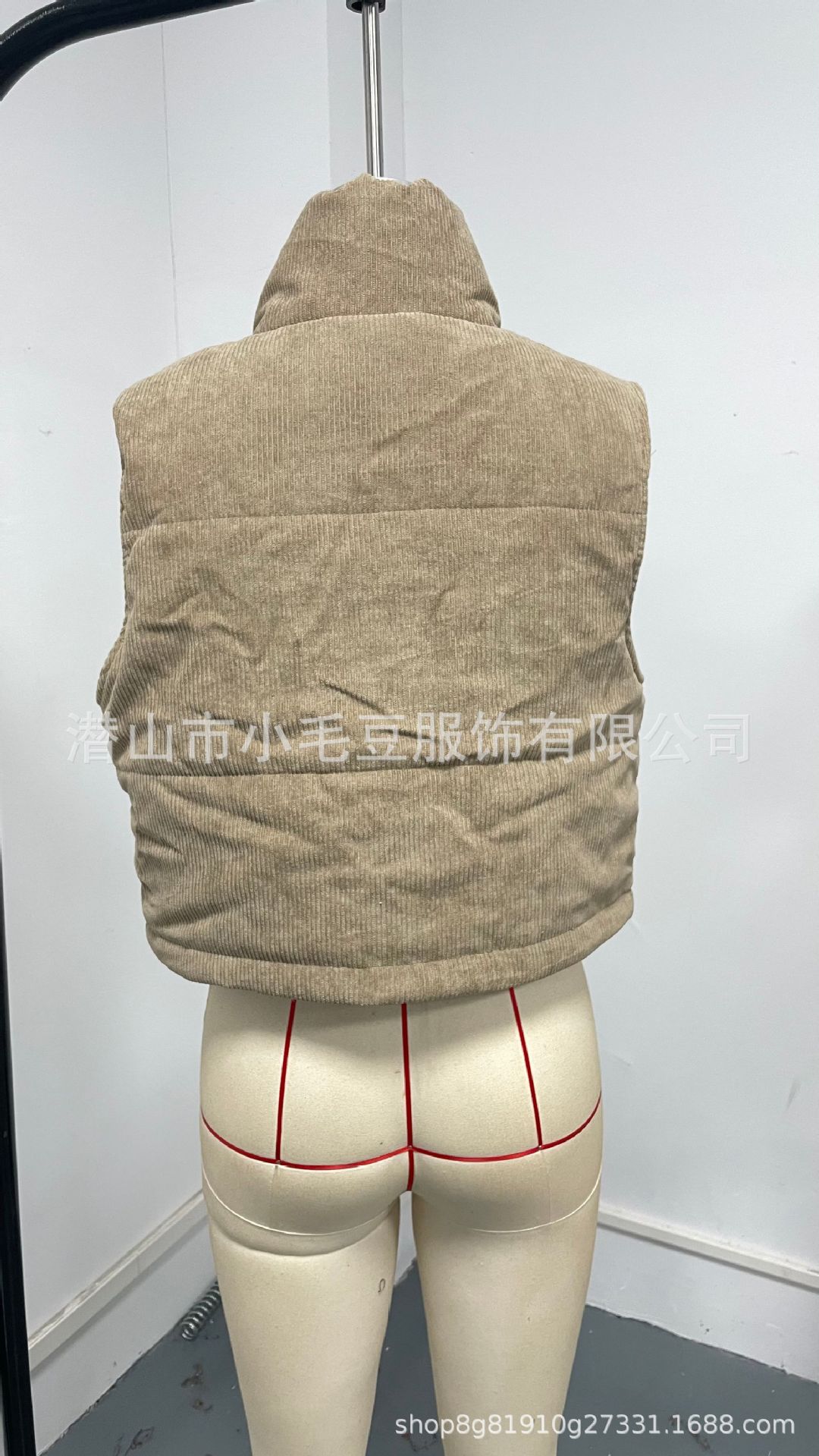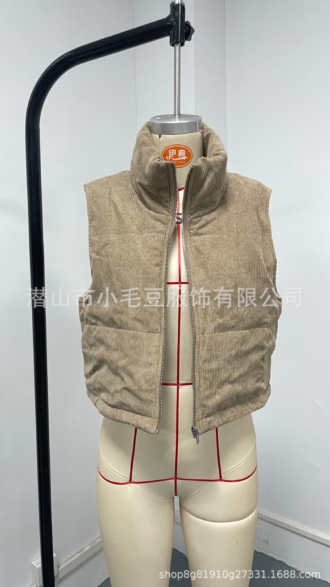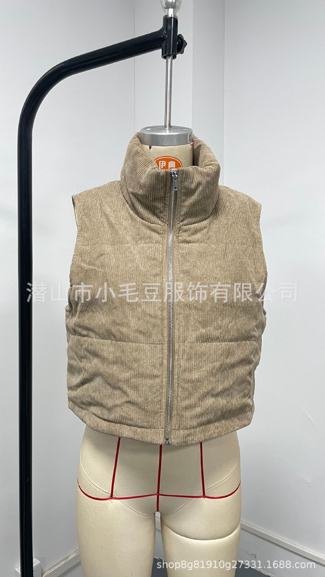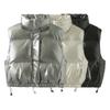 Chaleco europeo y americano transfronterizo de moda color sólido cuello alto cremallera corto algodón chaleco chaqueta