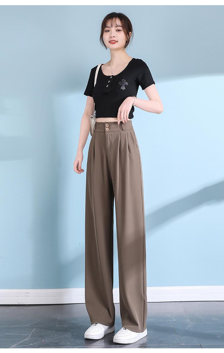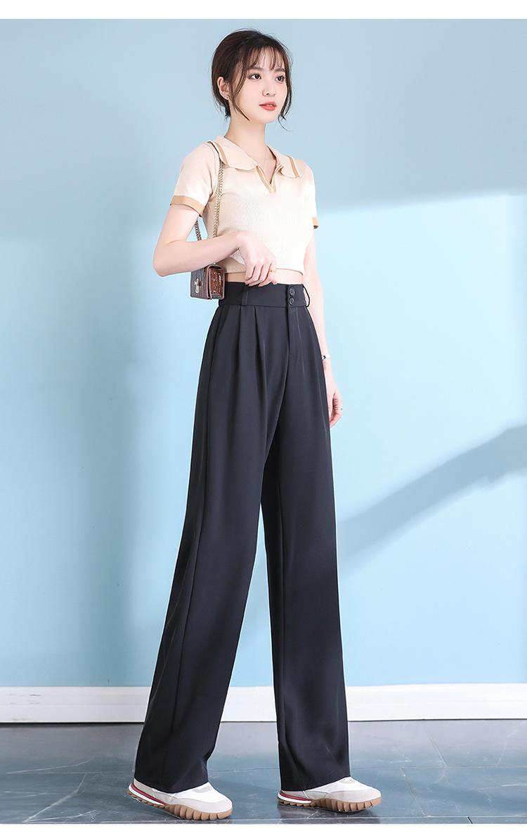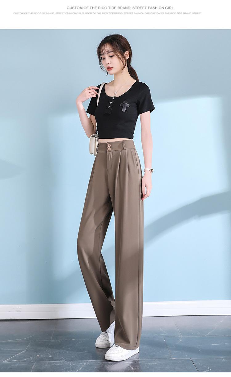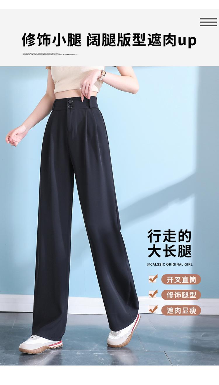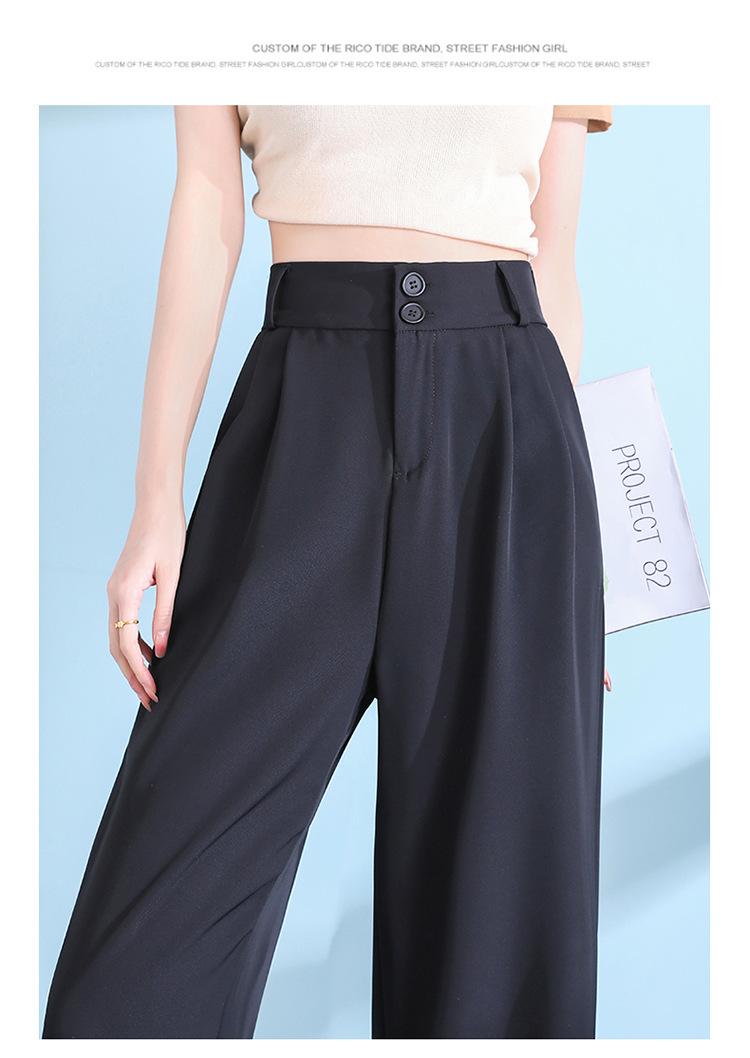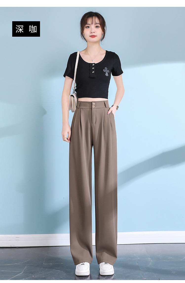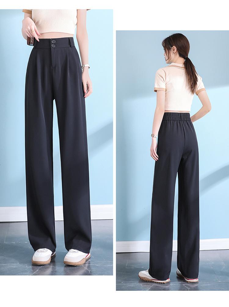 Pantalones de Traje Pantalones de Mujer Primavera y Otoño 2025 Nuevo Estilo Drapeados Rectos Pantalones de Gama Alta Pequeños Negros de Pierna Ancha