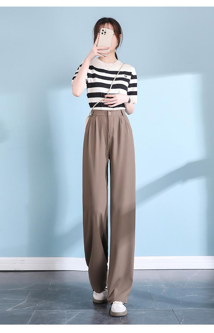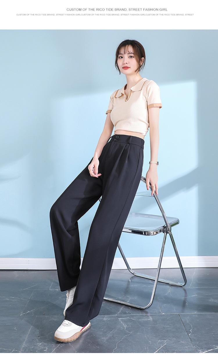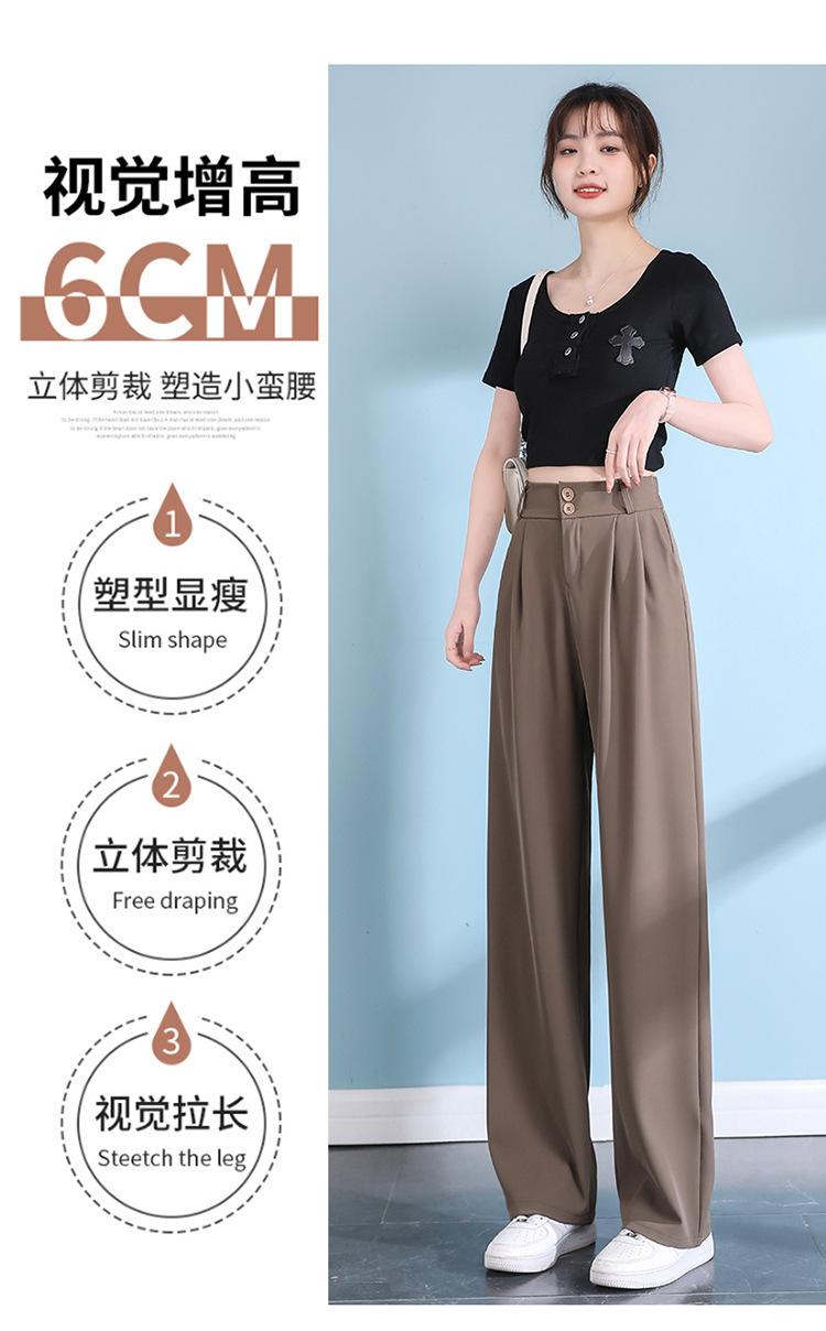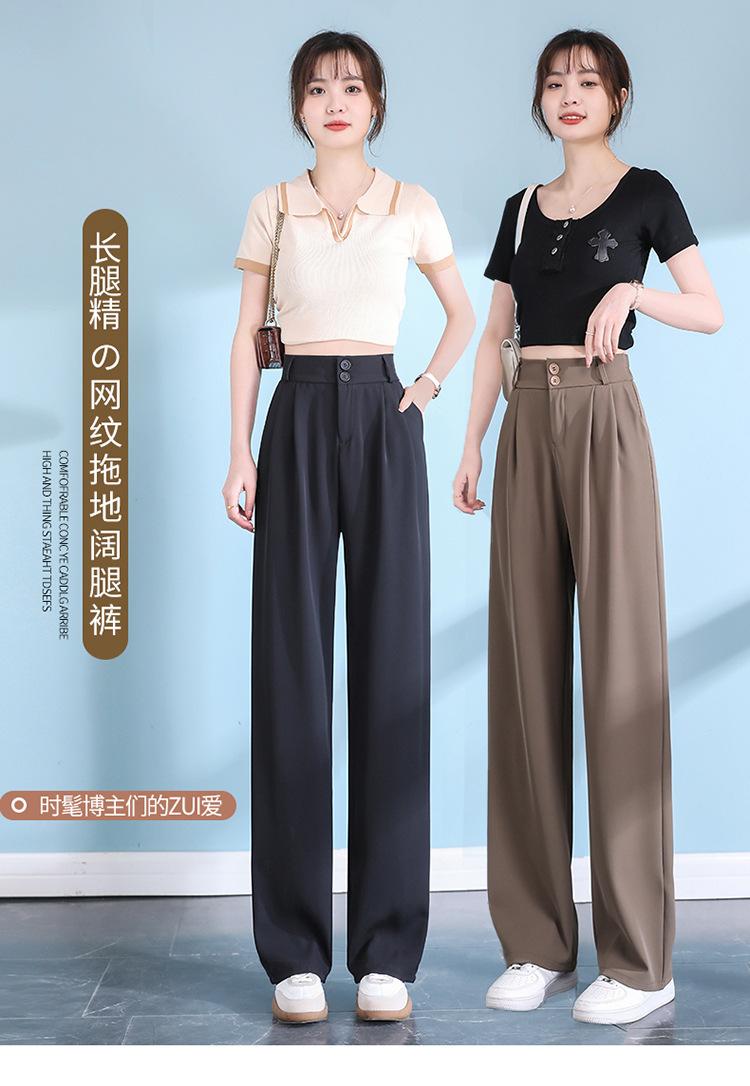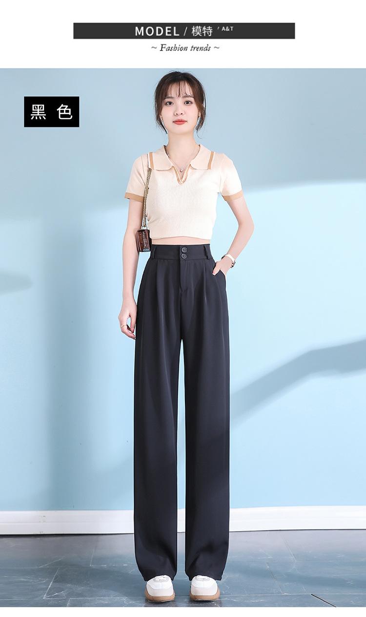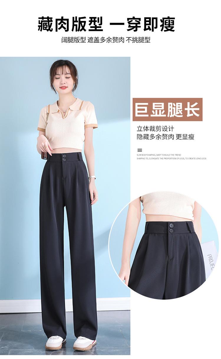 Pantalones de Traje Pantalones de Mujer Primavera y Otoño 2025 Nuevo Estilo Drapeados Rectos Pantalones de Gama Alta Pequeños Negros de Pierna Ancha