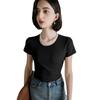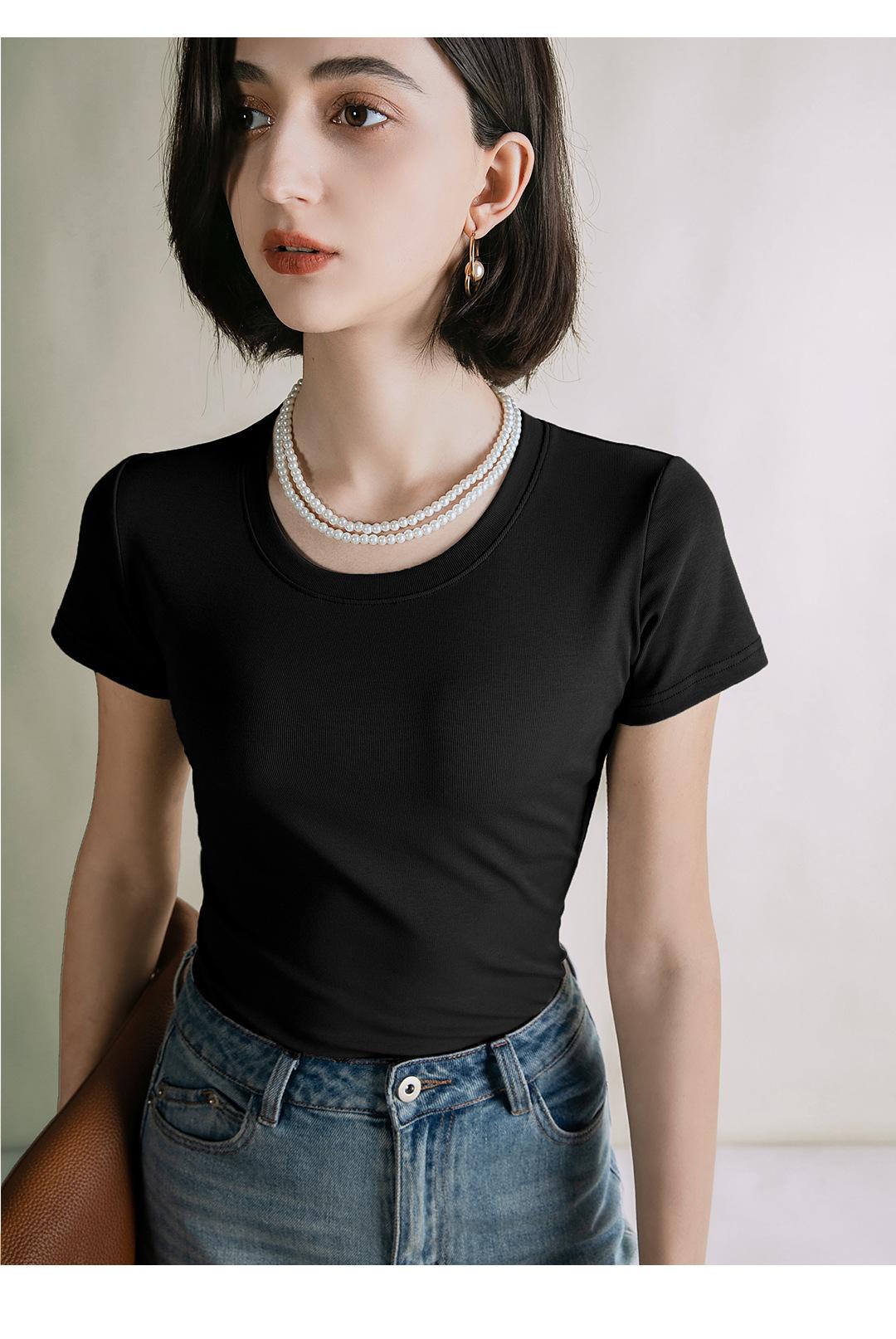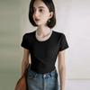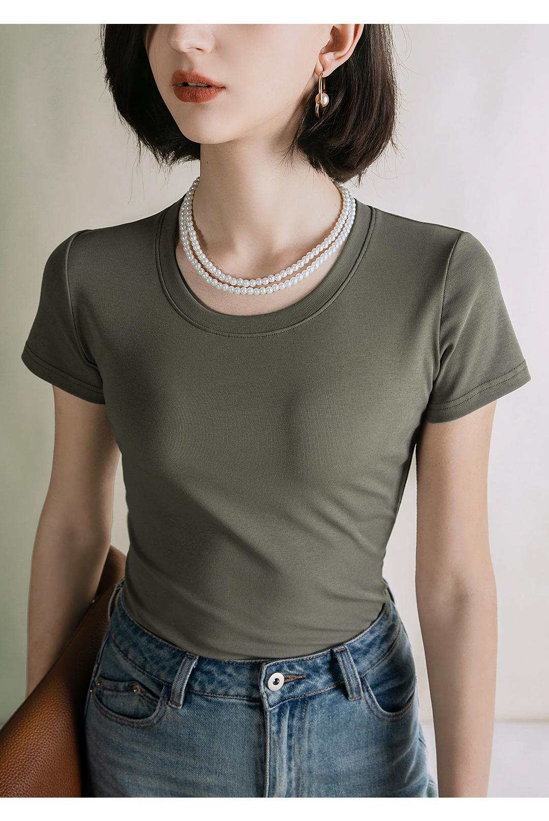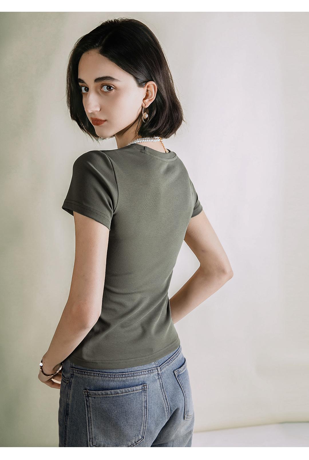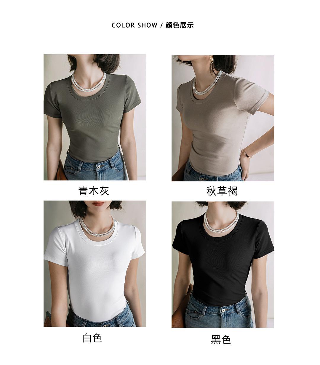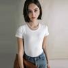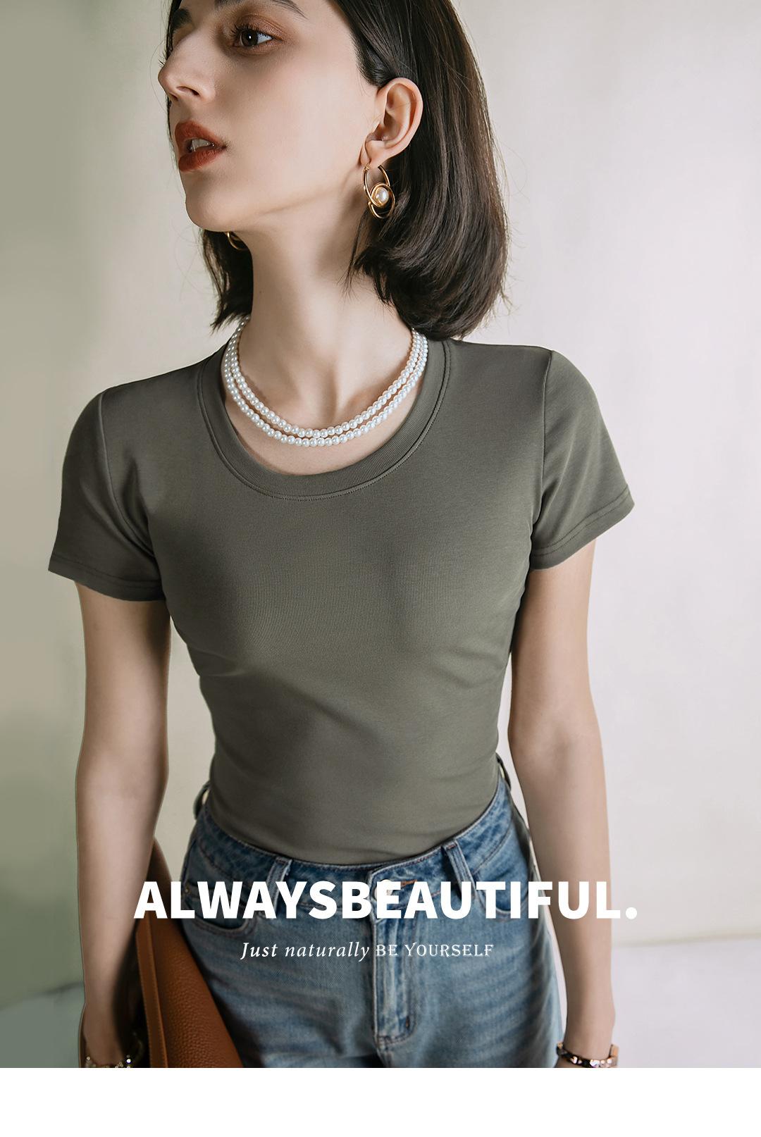Camiseta de manga corta de verano para mujer, básica, con texto en los hombros, color liso