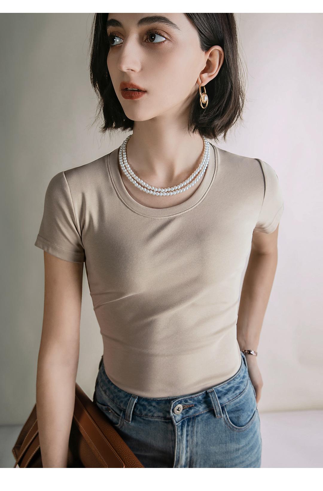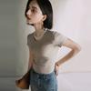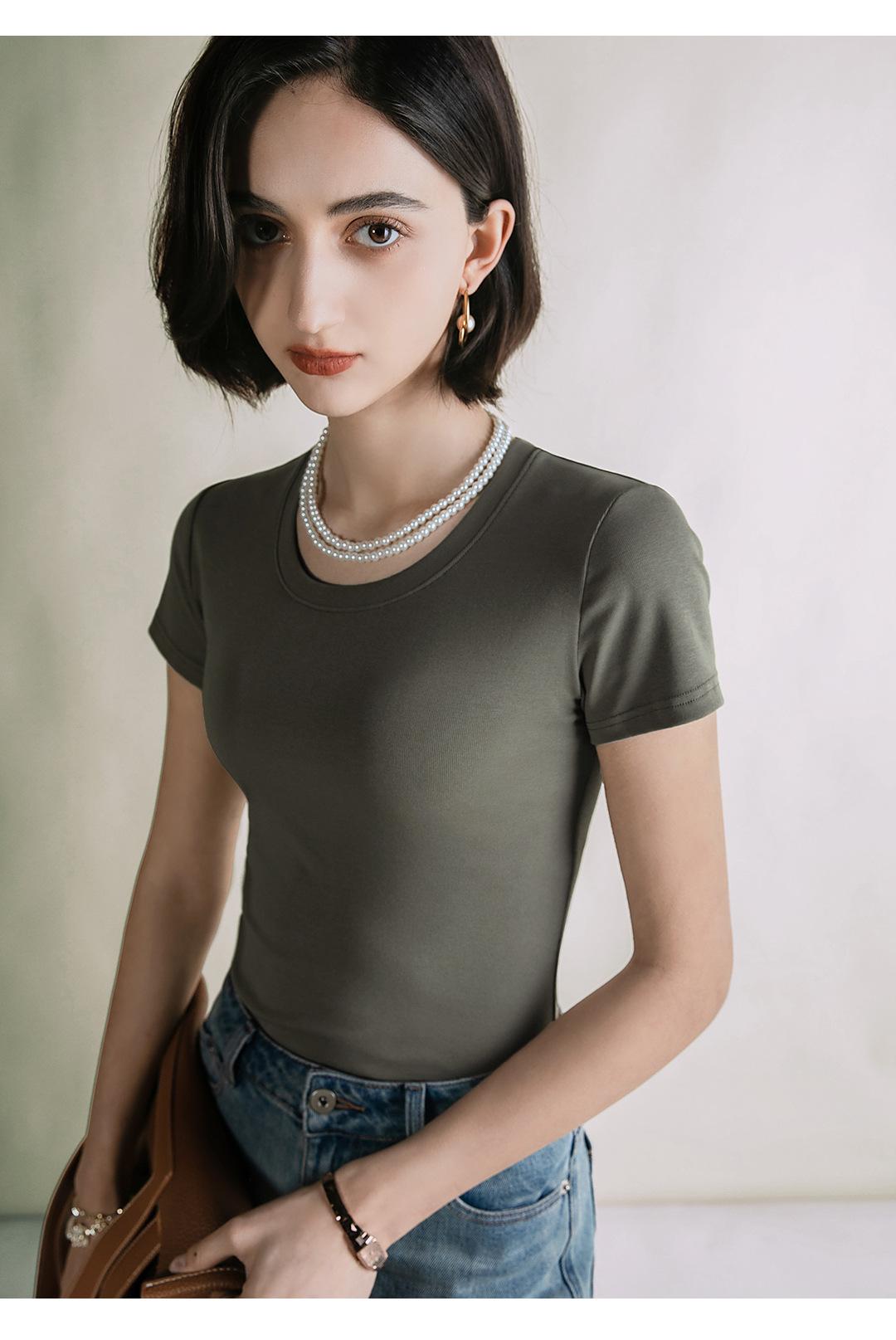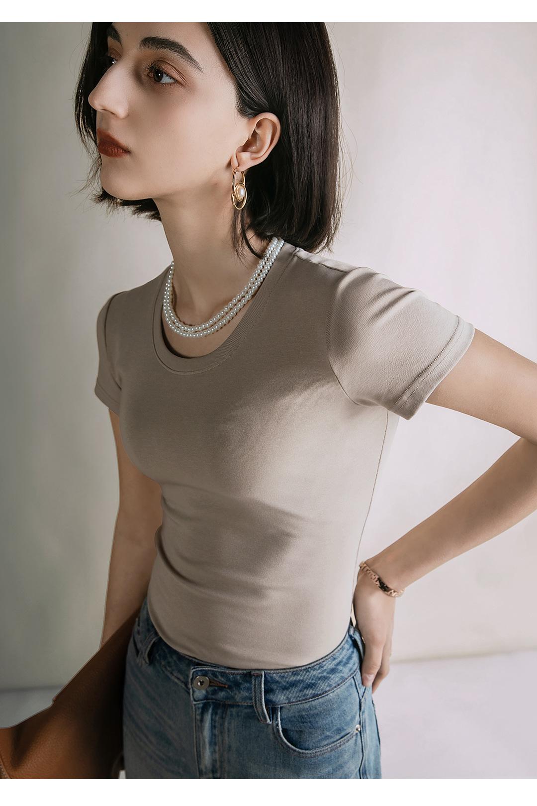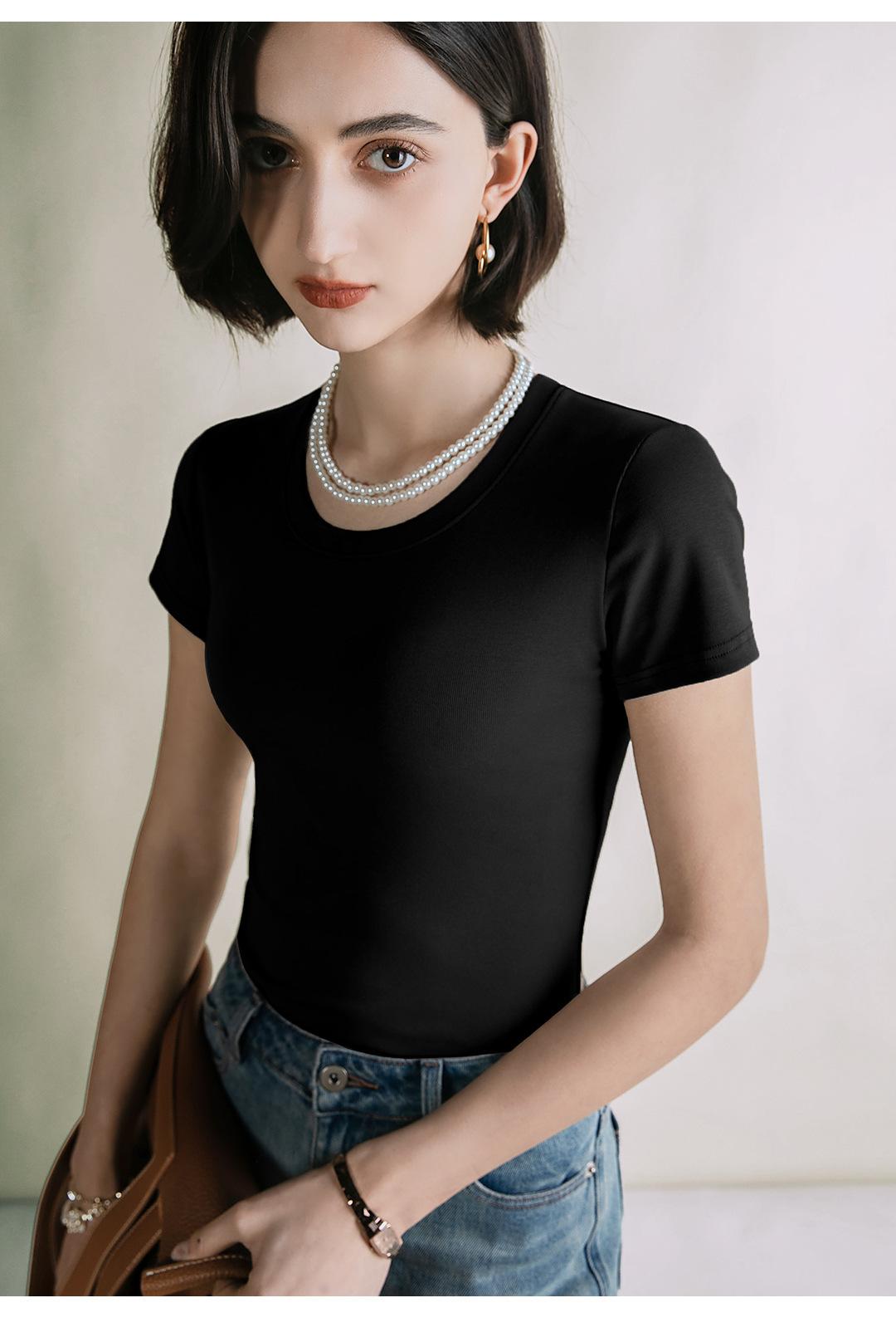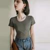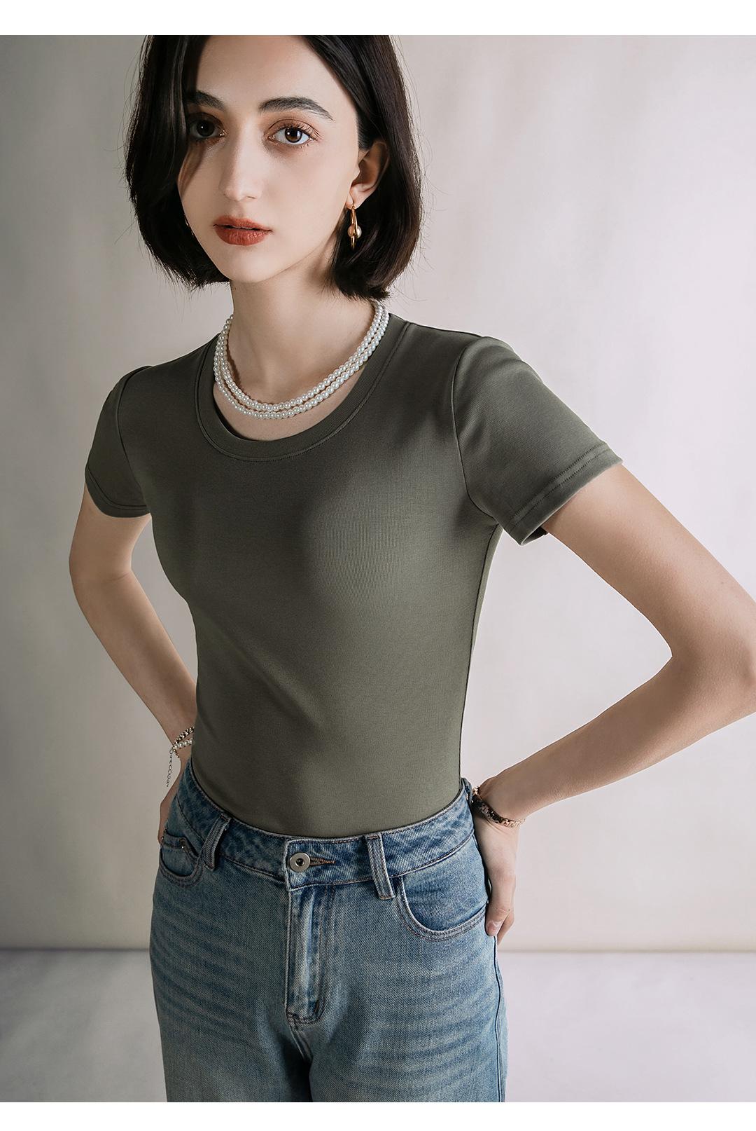 Camiseta de manga corta de verano para mujer, básica, con texto en los hombros, color liso