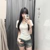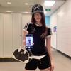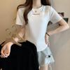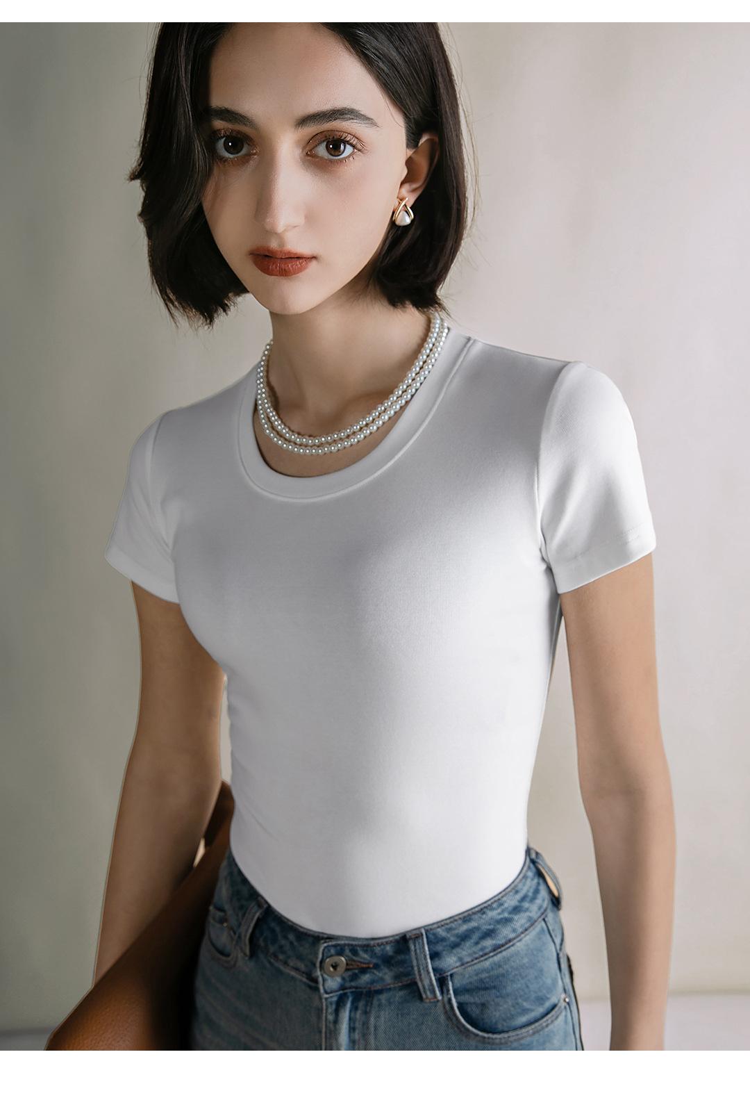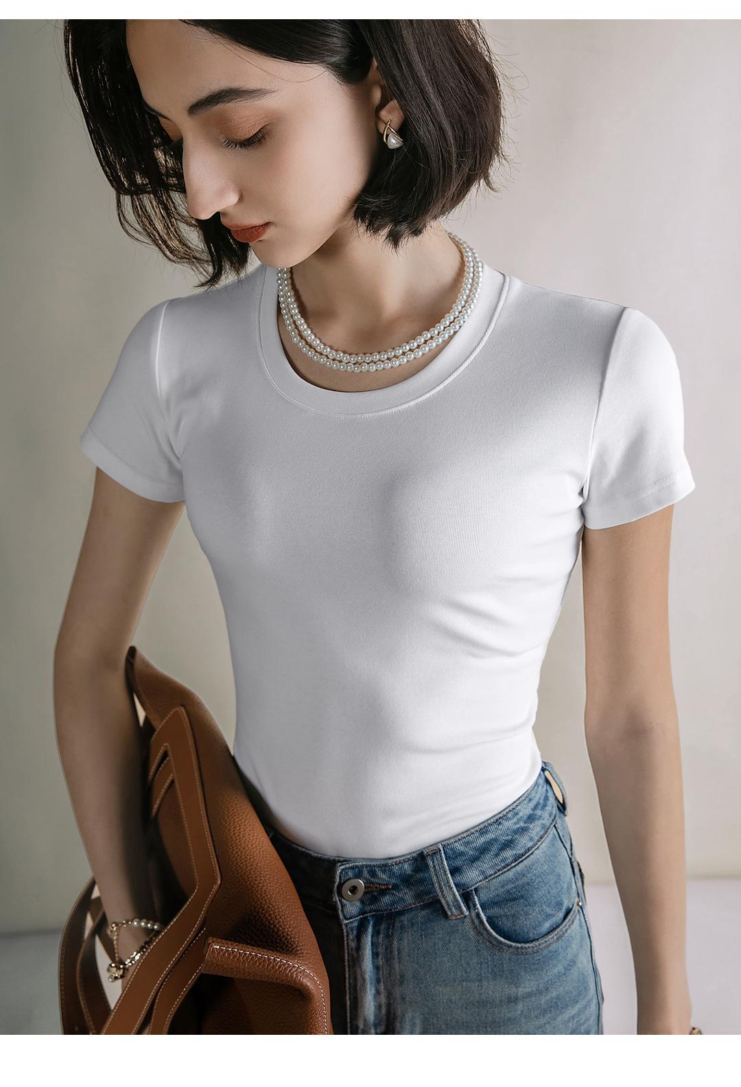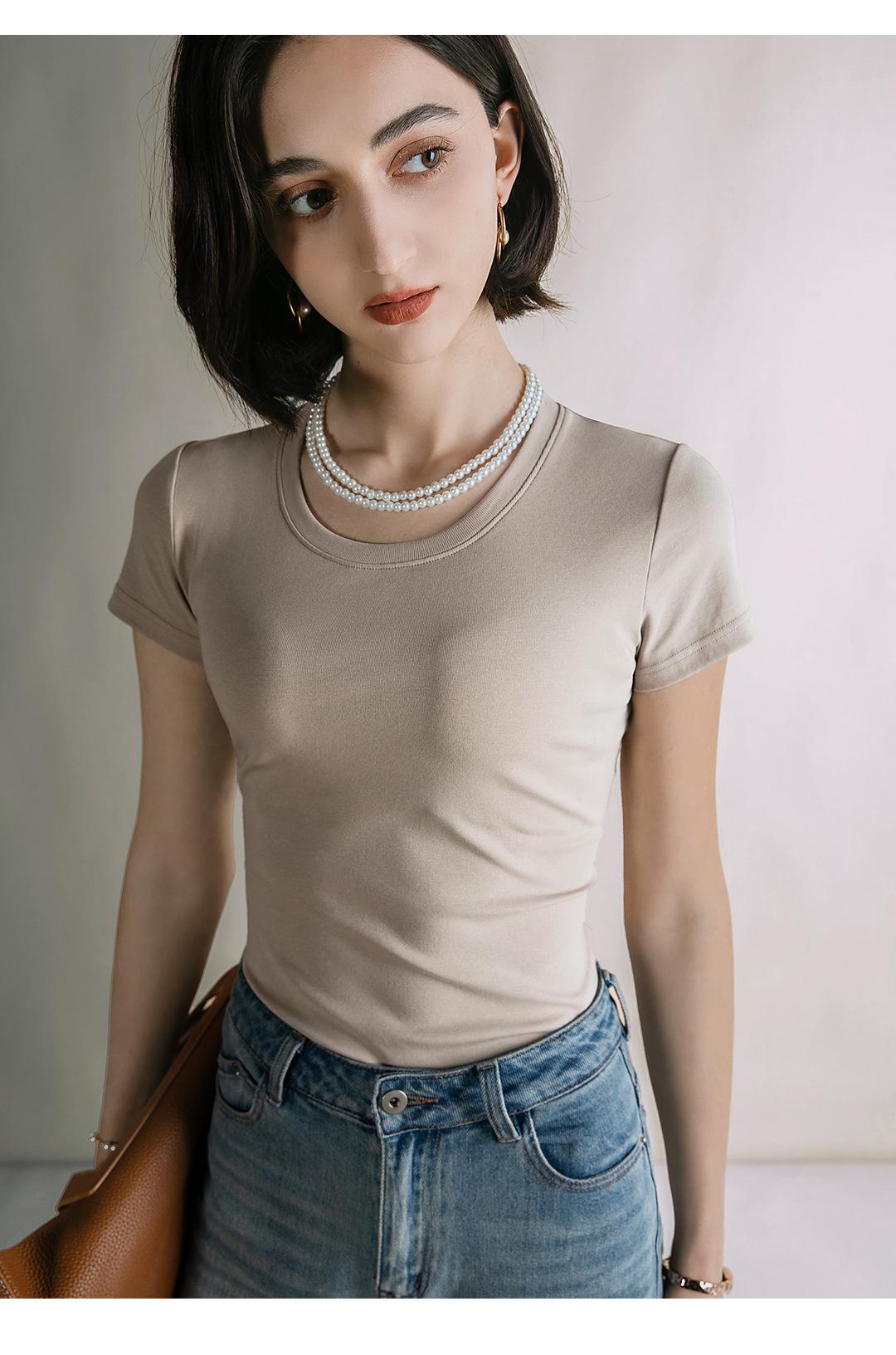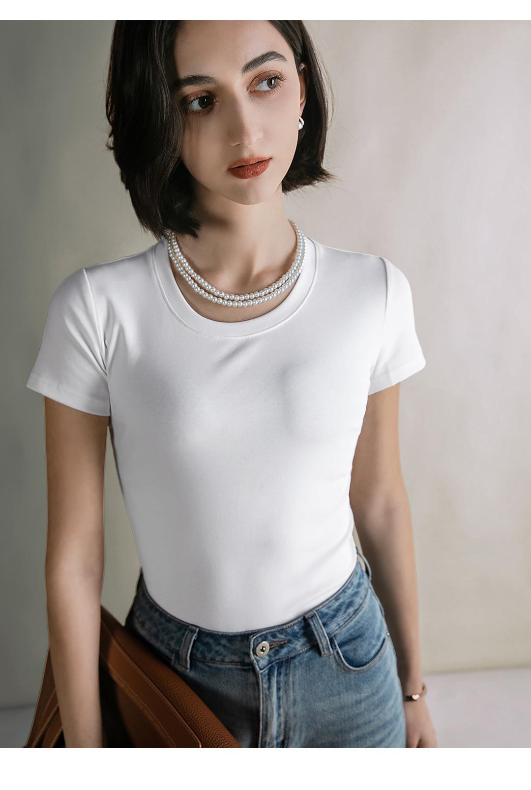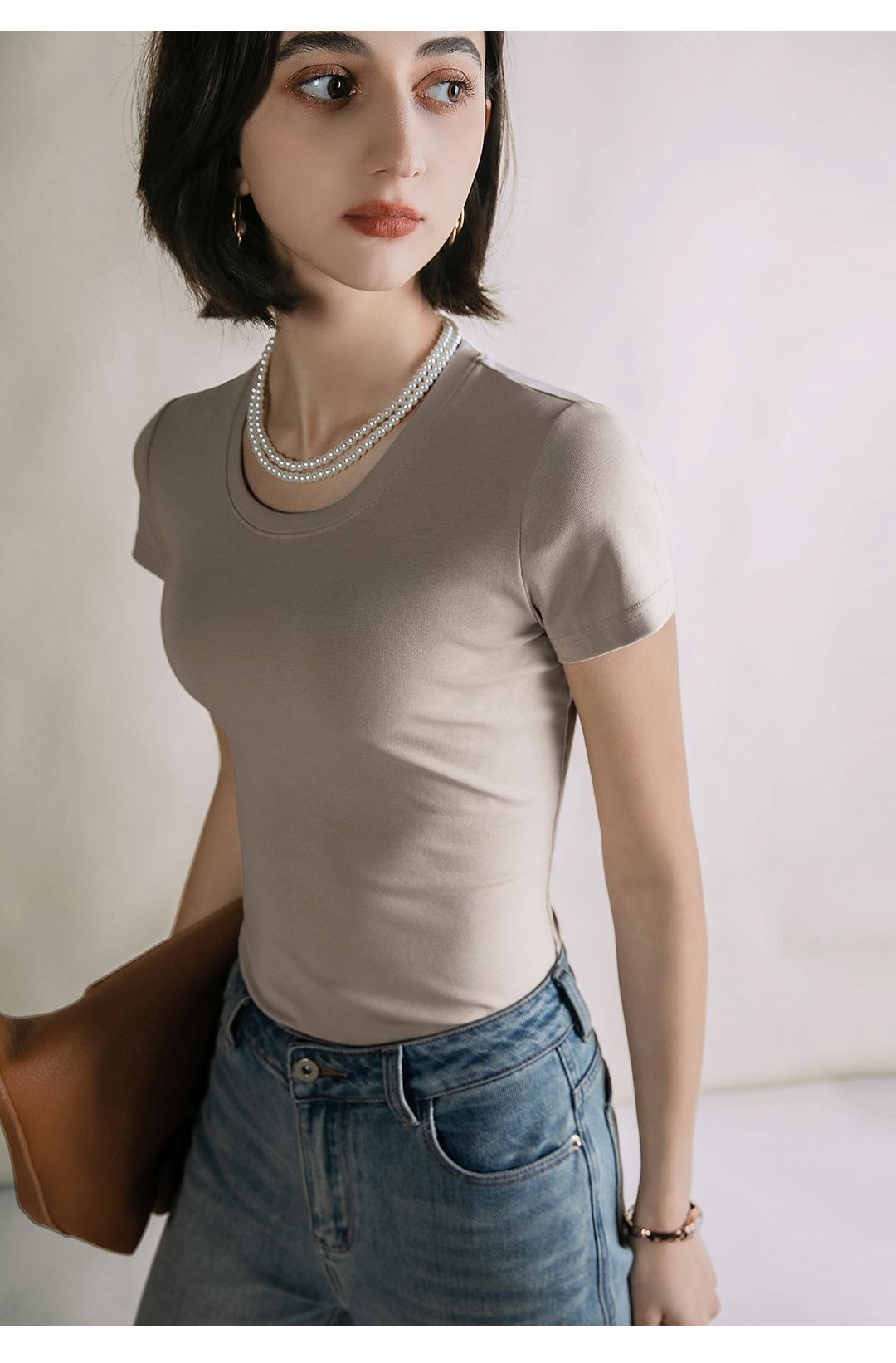 Camiseta de manga corta de verano para mujer, básica, con texto en los hombros, color liso