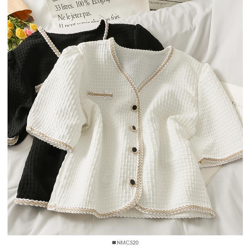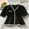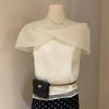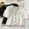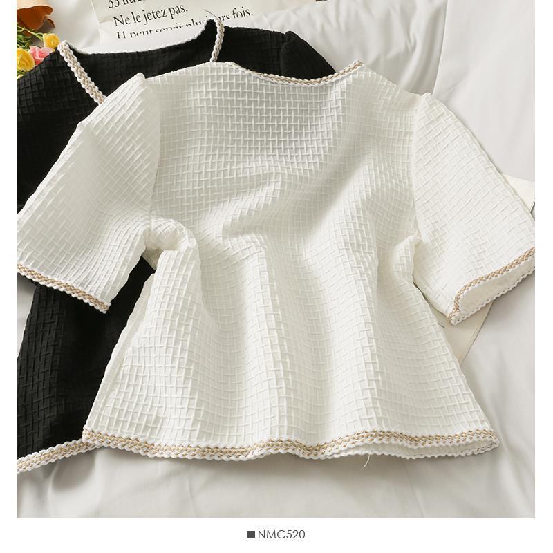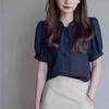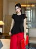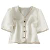 Camisa de cuadros de seda brillante francesa con dobladillo y manga corta para mujer 2023 Verano Elegante Versátil Top de aspecto adelgazante