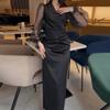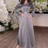 Otoño 2023 nuevo vestido ajustado sin espalda sexy con cuello en U y costuras de malla transfronterizas de Amazon transfronterizas de Europa y América