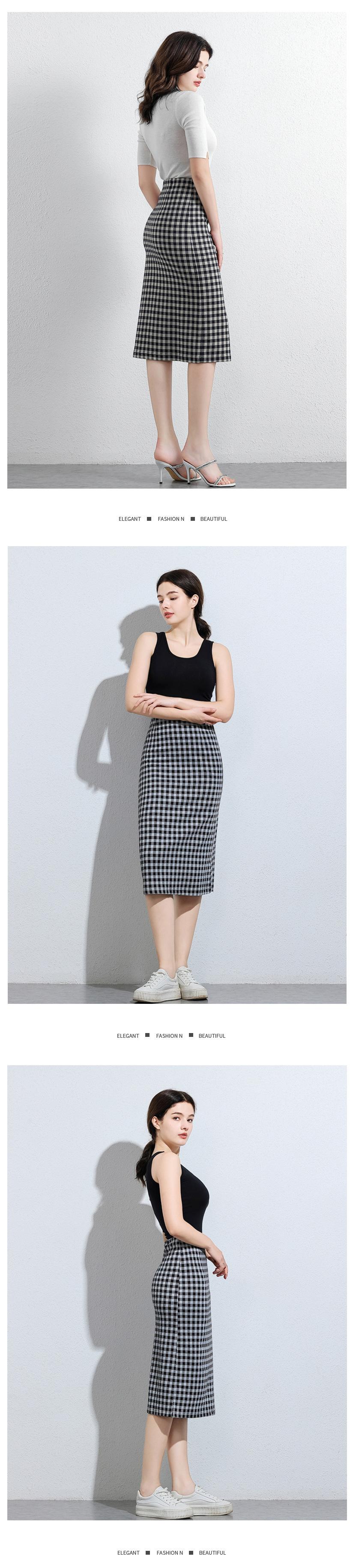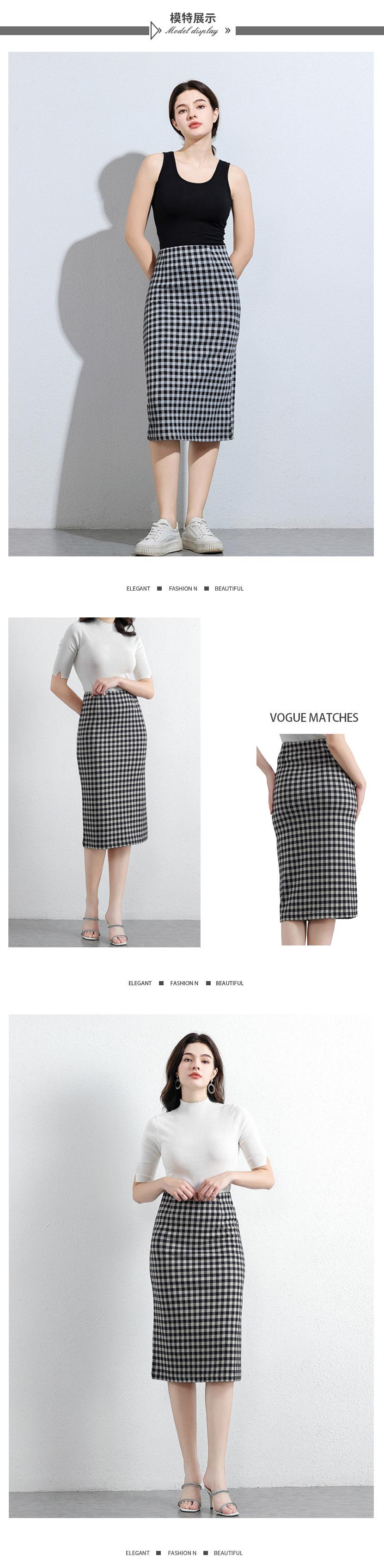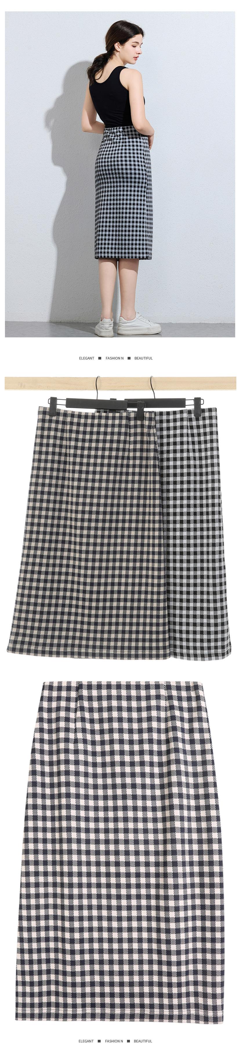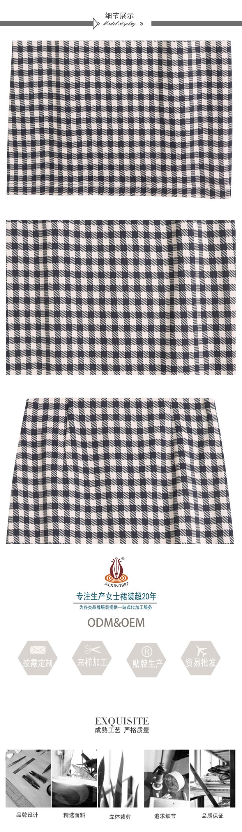 Falda a cuadros francesa personalizable de comercio exterior, nueva, de cintura alta, recta, con corte en A, para adelgazar la cadera y longitud media para mujer