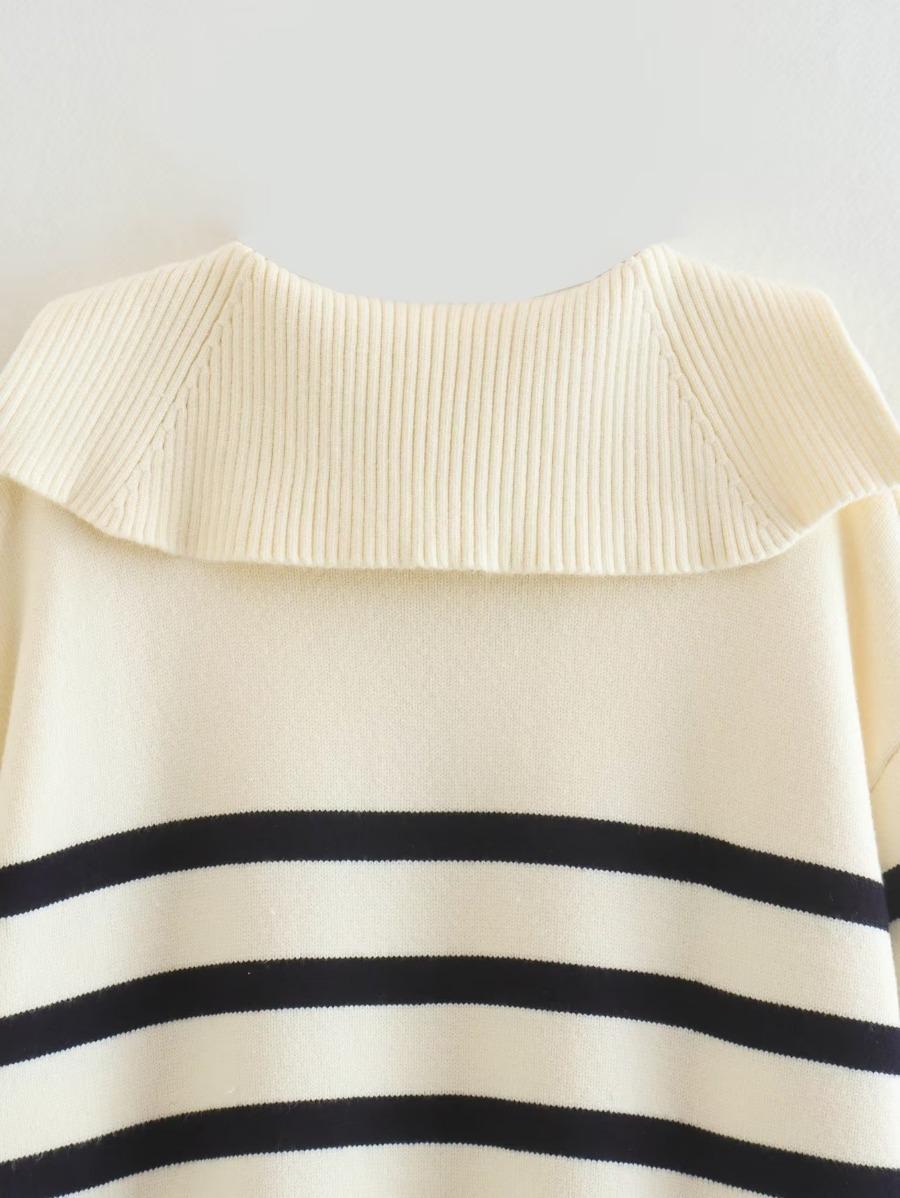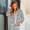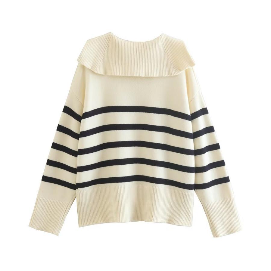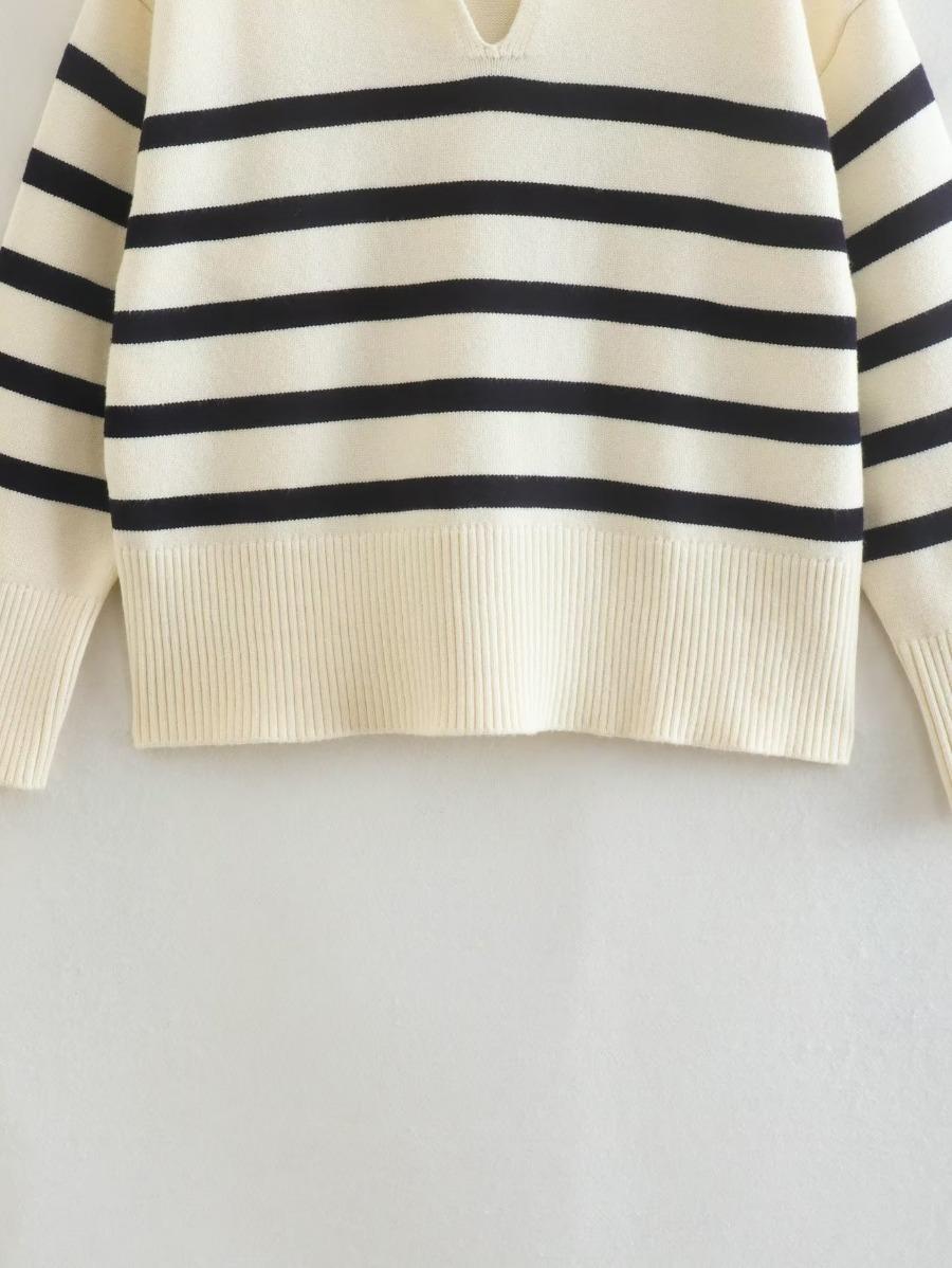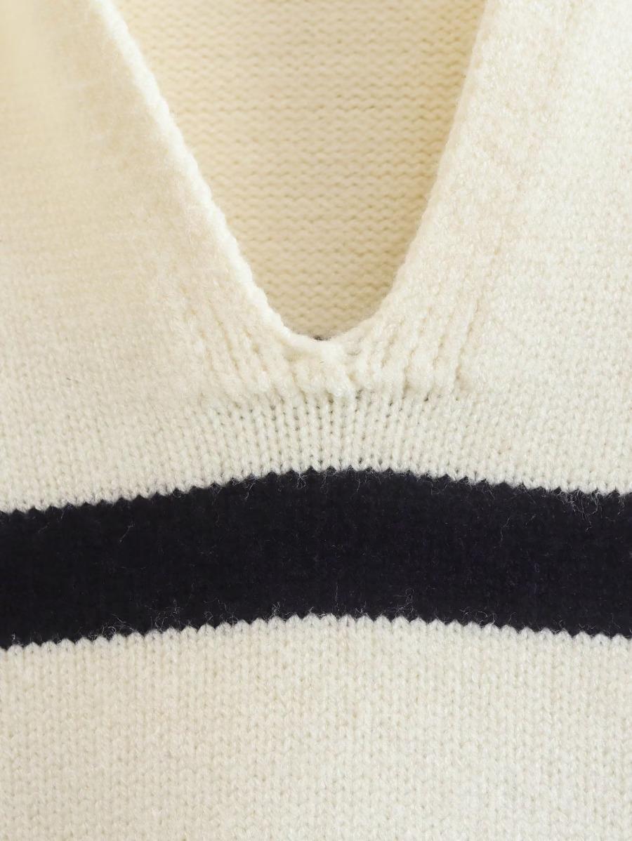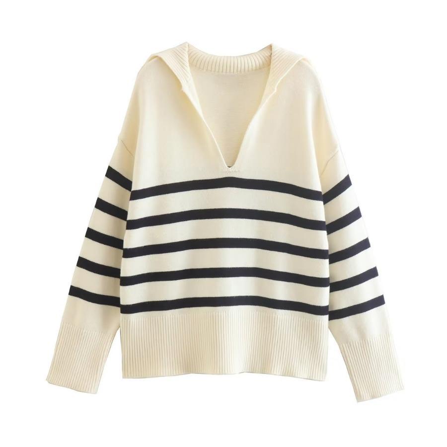 Venta al por Mayor Transfronteriza 2023 Amazon Nuevo Suéter de Punto Holgado de Rayas con Solapa en V para Mujer 8Ls2386