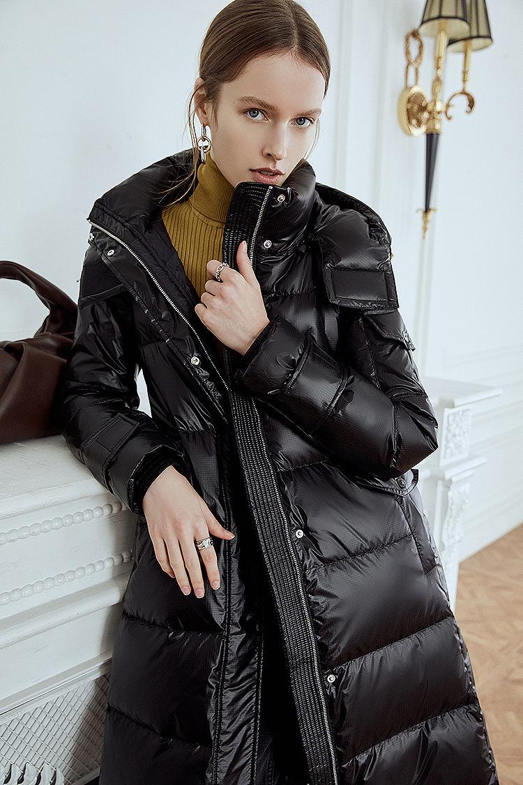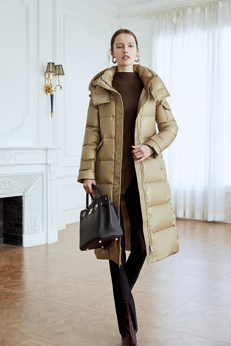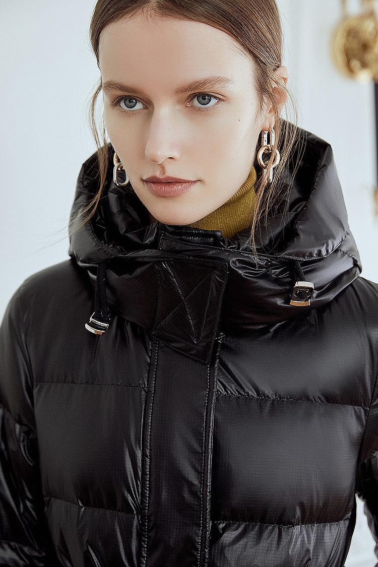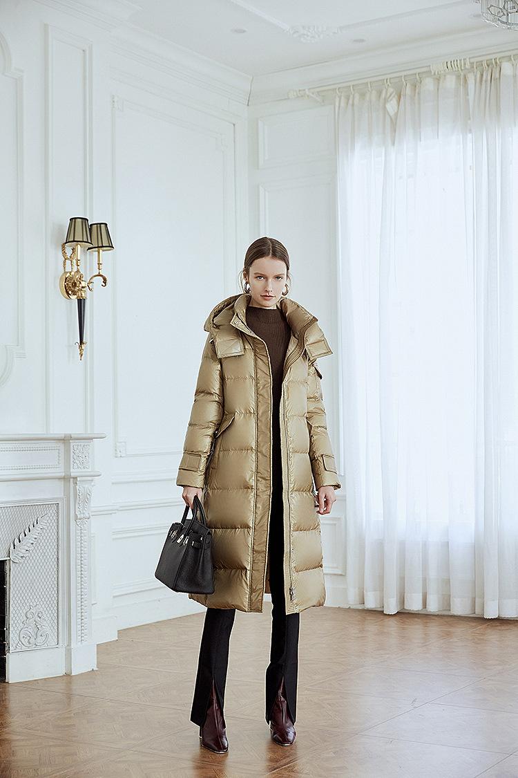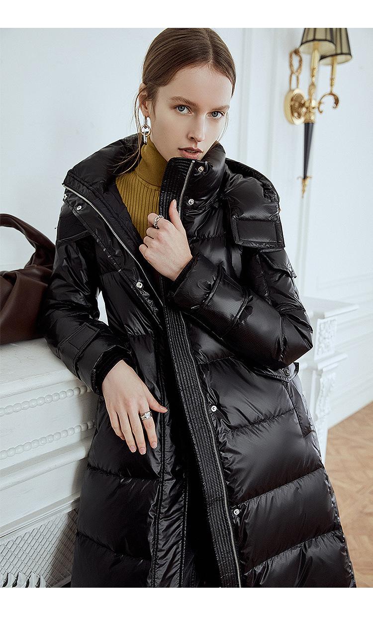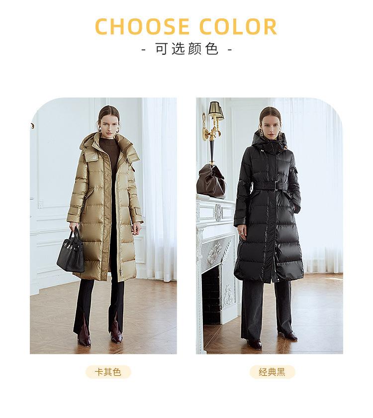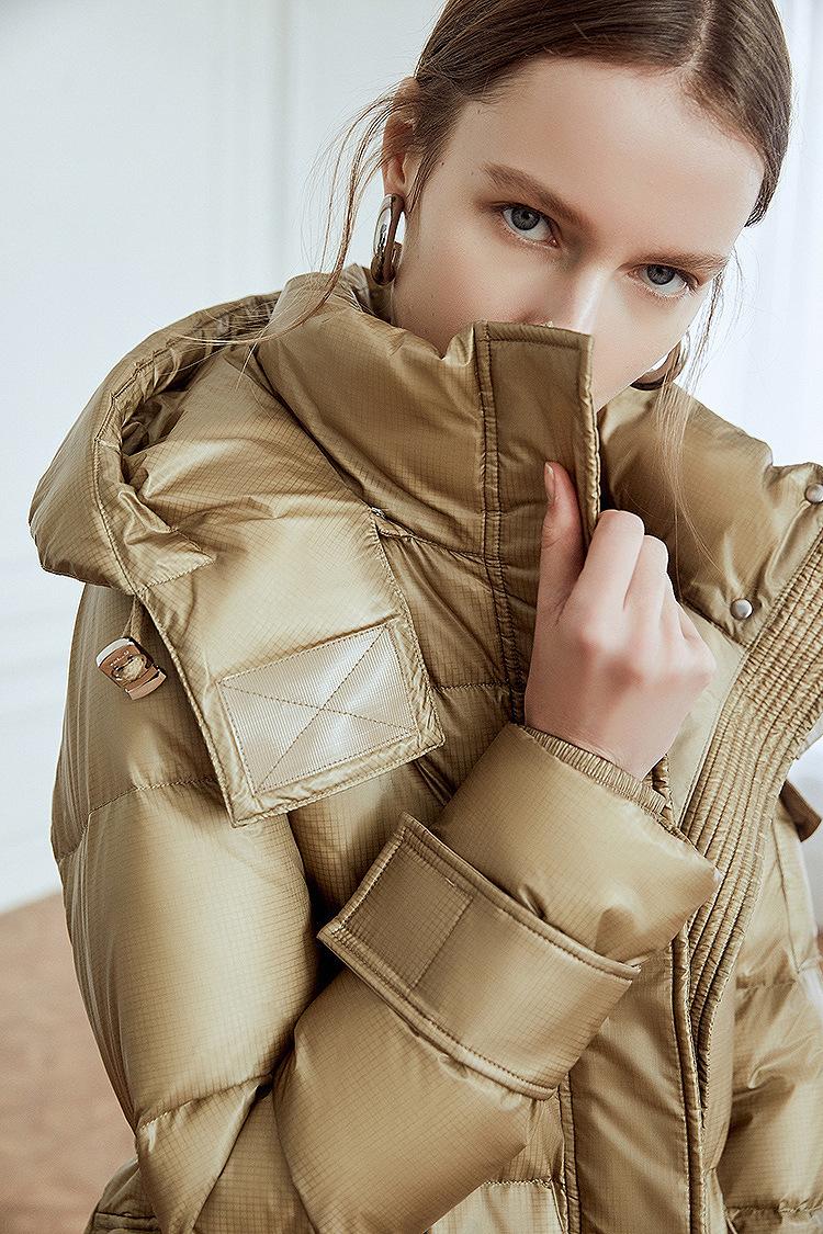 Popular chamarra de plumón 2025 Nueva para mujer de longitud media Estación Europea Engrosada Brillante Plumón de ganso blanco Otoño e Invierno Chaqueta cálida