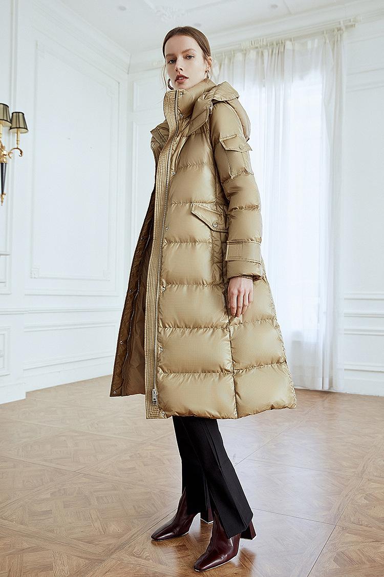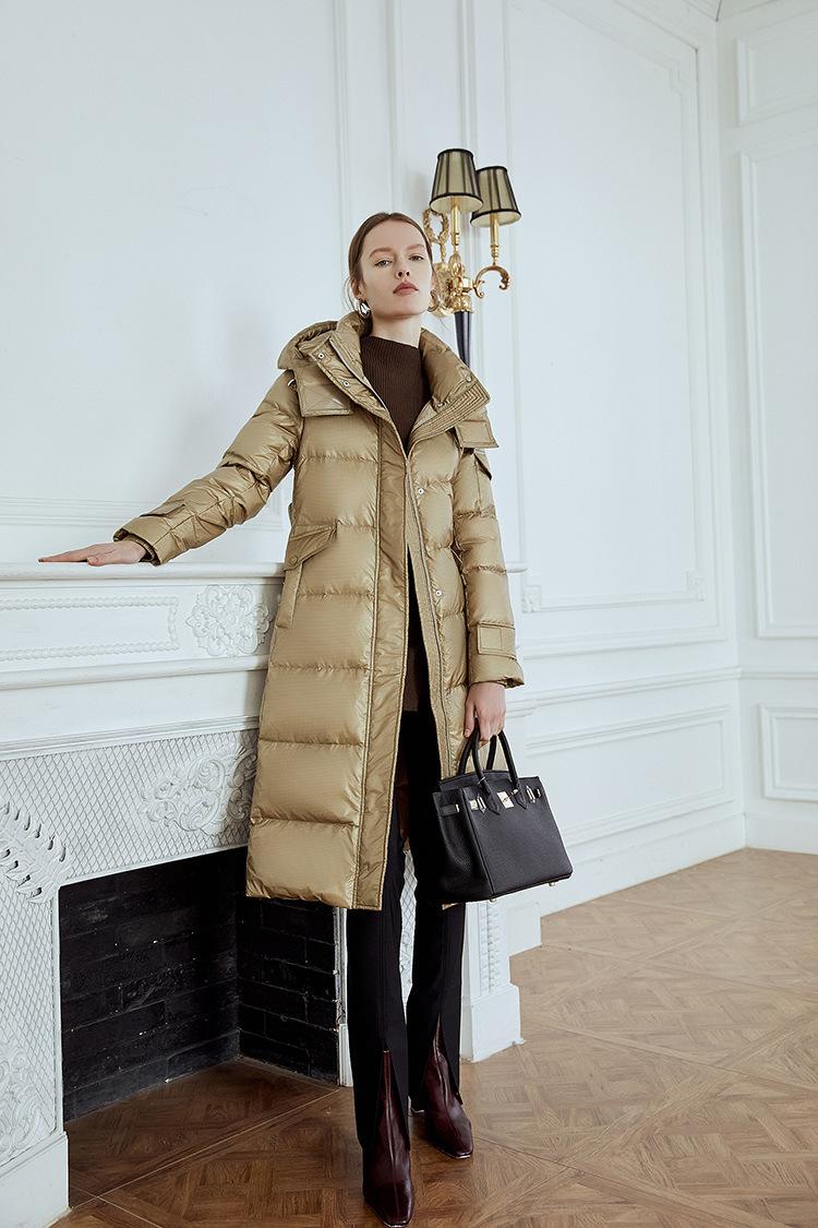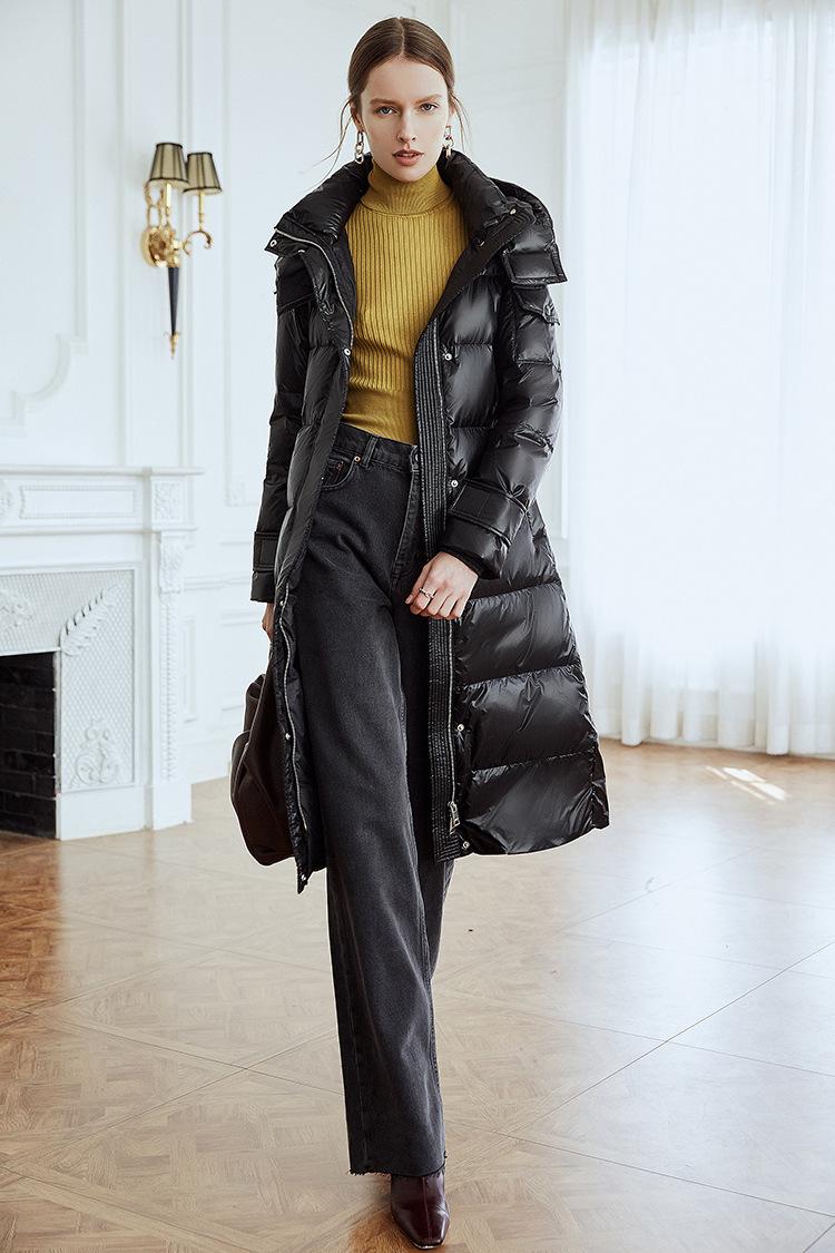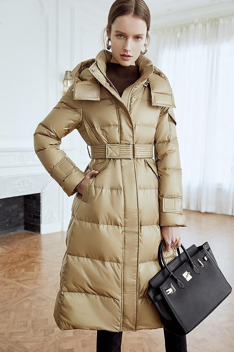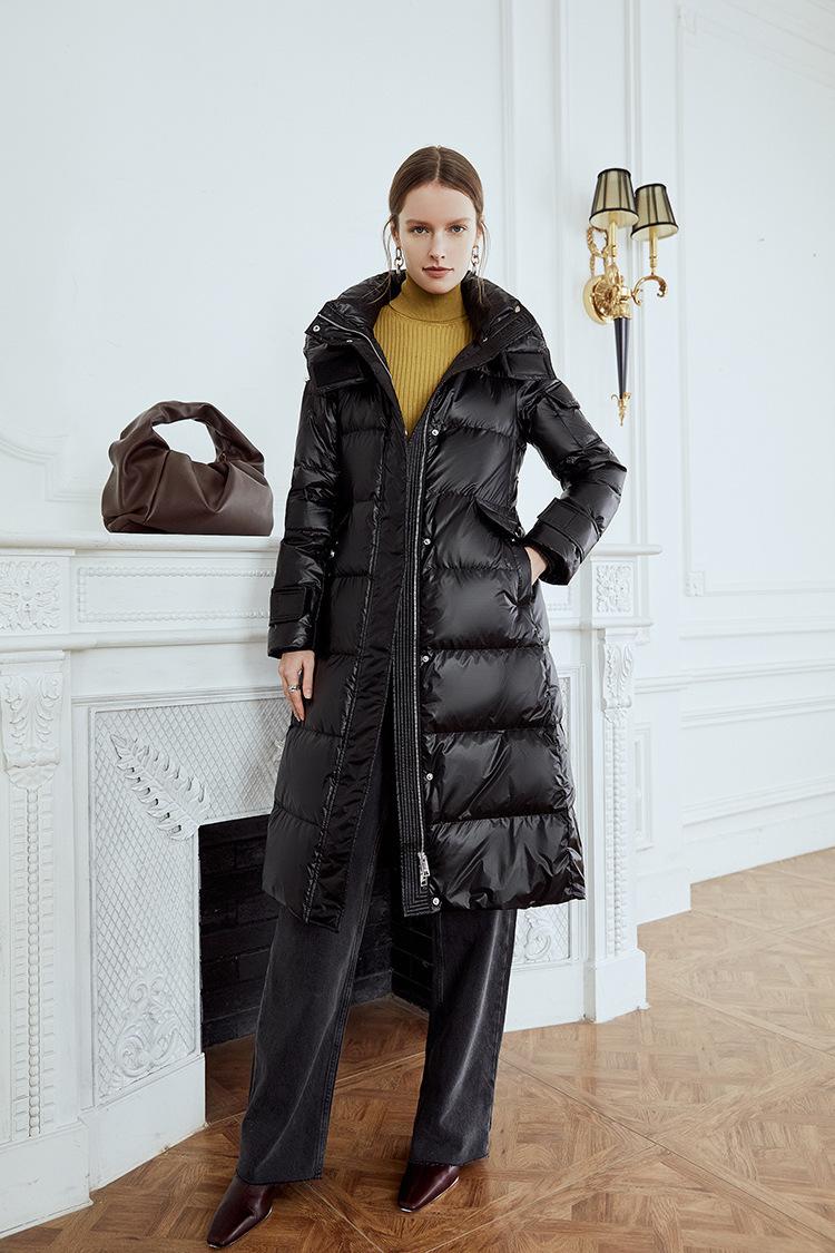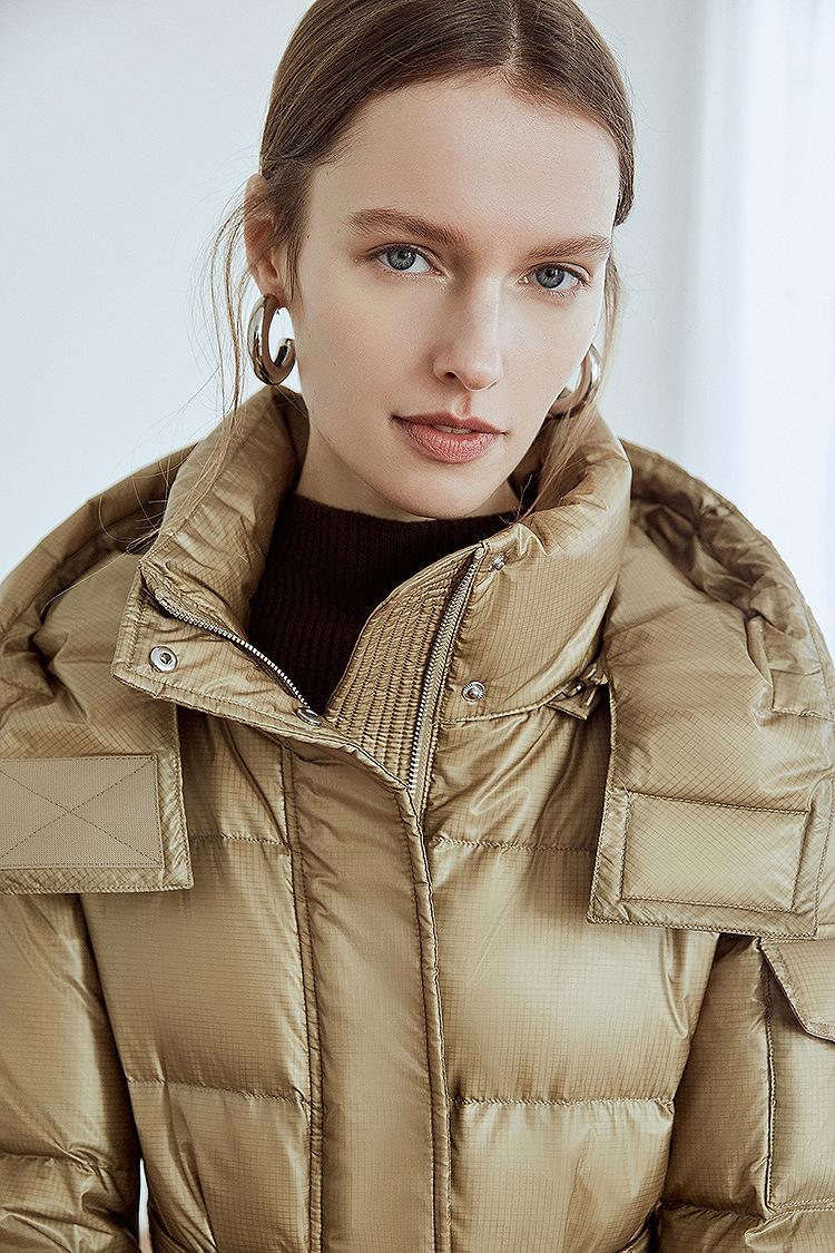 Popular chamarra de plumón 2025 Nueva para mujer de longitud media Estación Europea Engrosada Brillante Plumón de ganso blanco Otoño e Invierno Chaqueta cálida