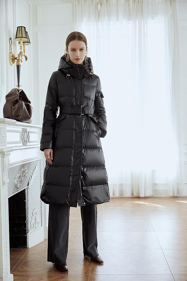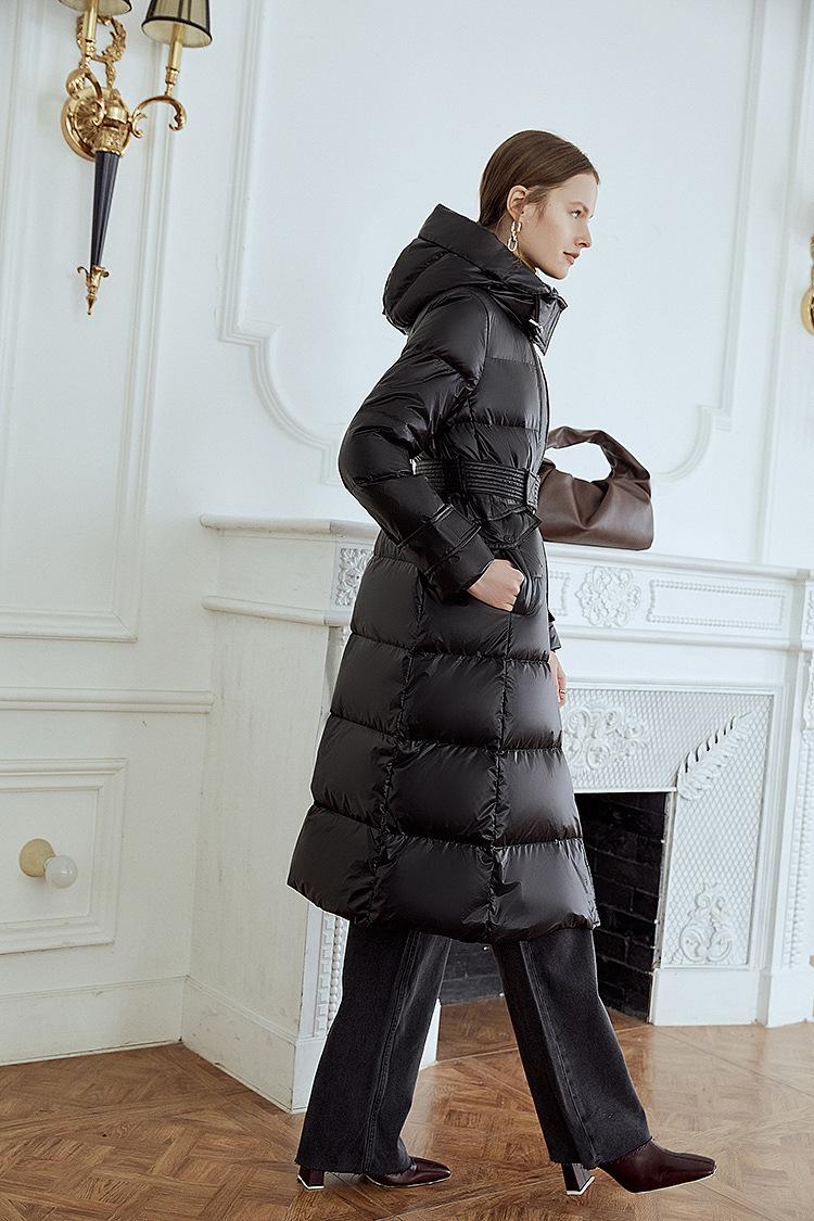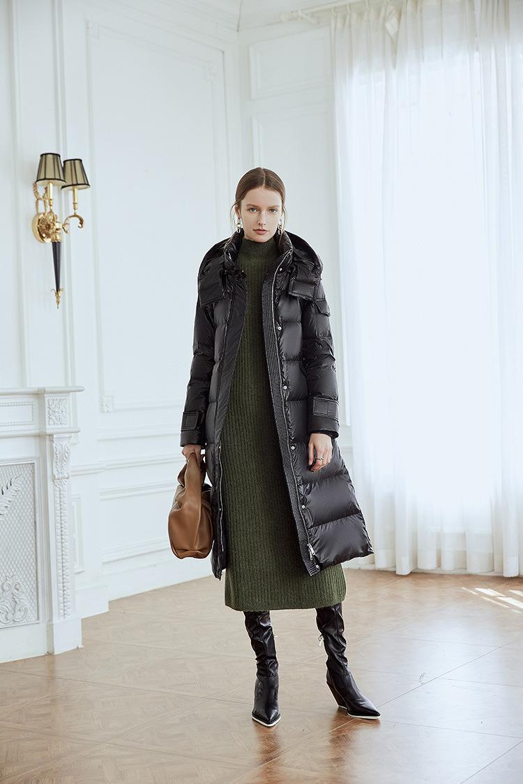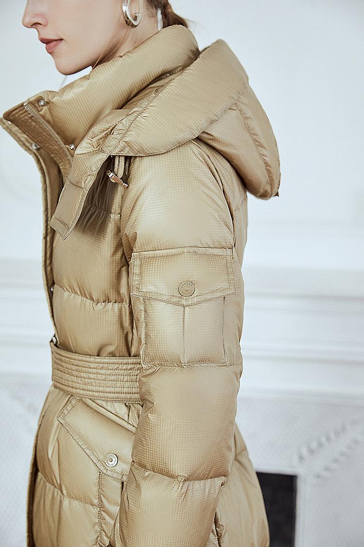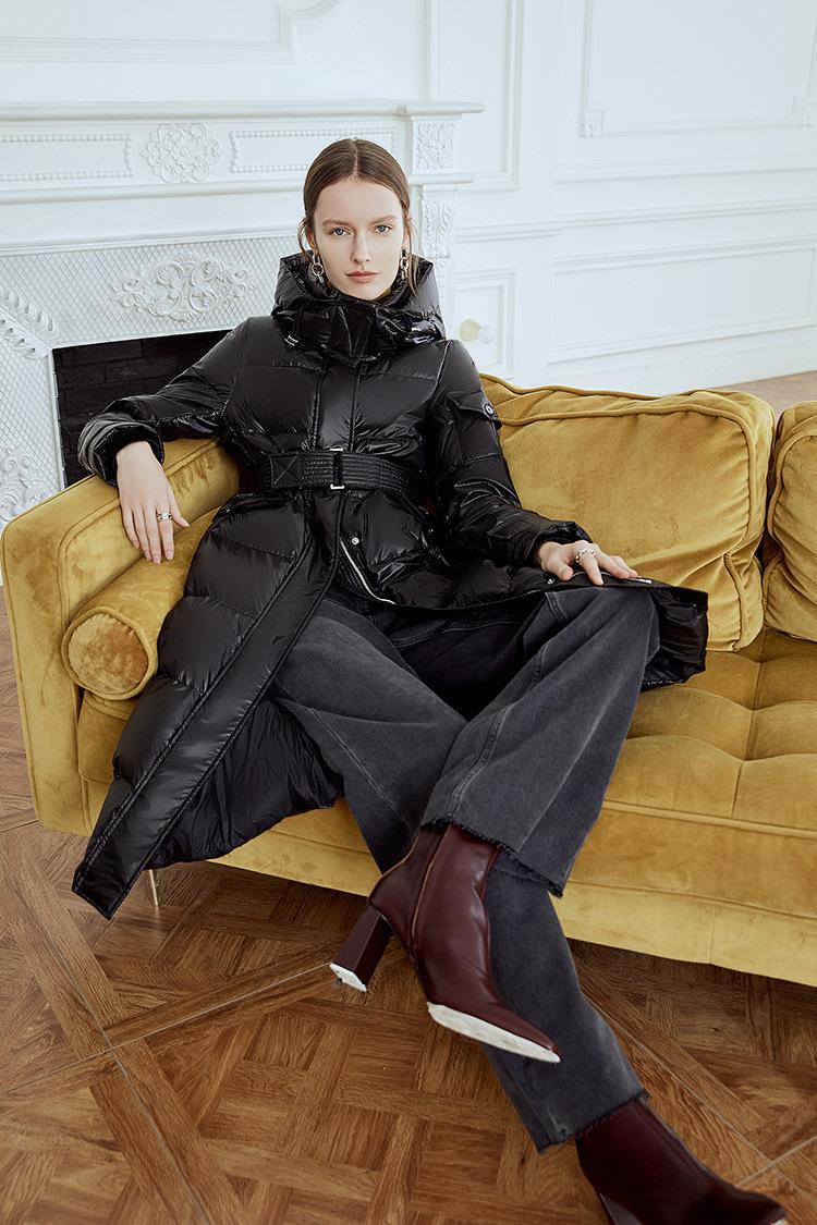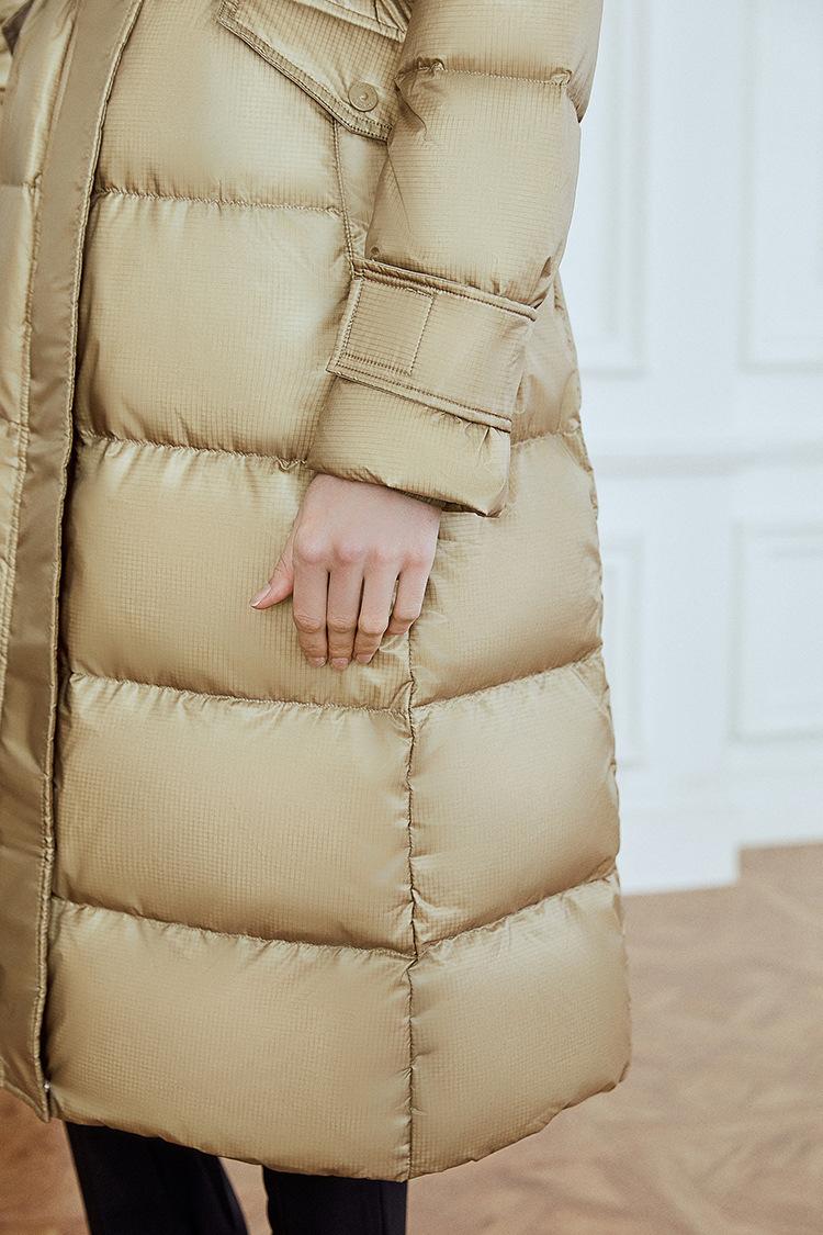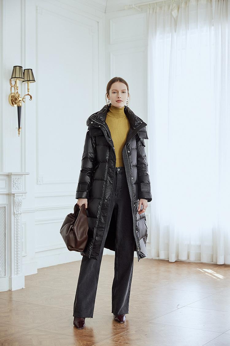 Popular chamarra de plumón 2025 Nueva para mujer de longitud media Estación Europea Engrosada Brillante Plumón de ganso blanco Otoño e Invierno Chaqueta cálida