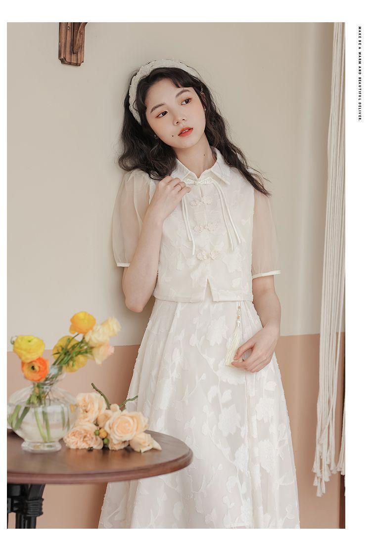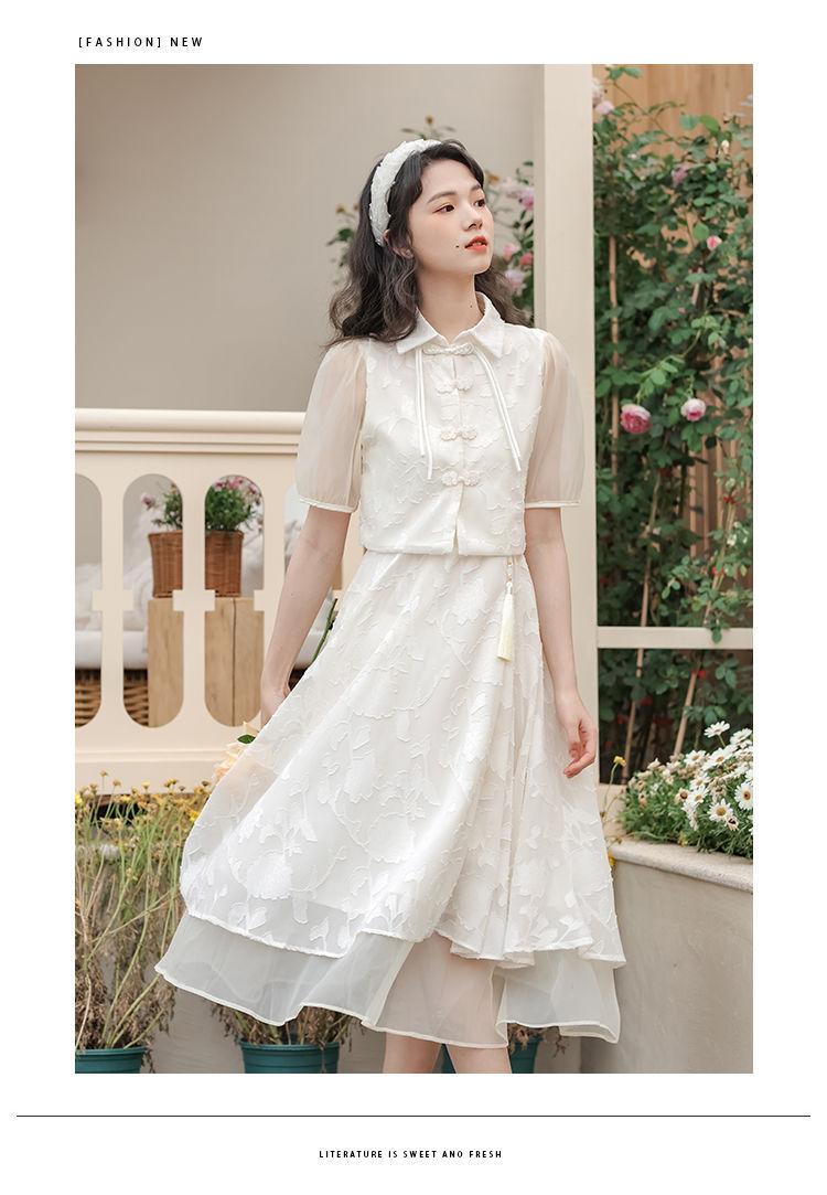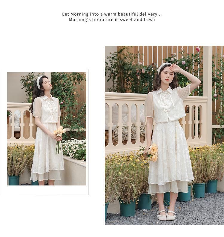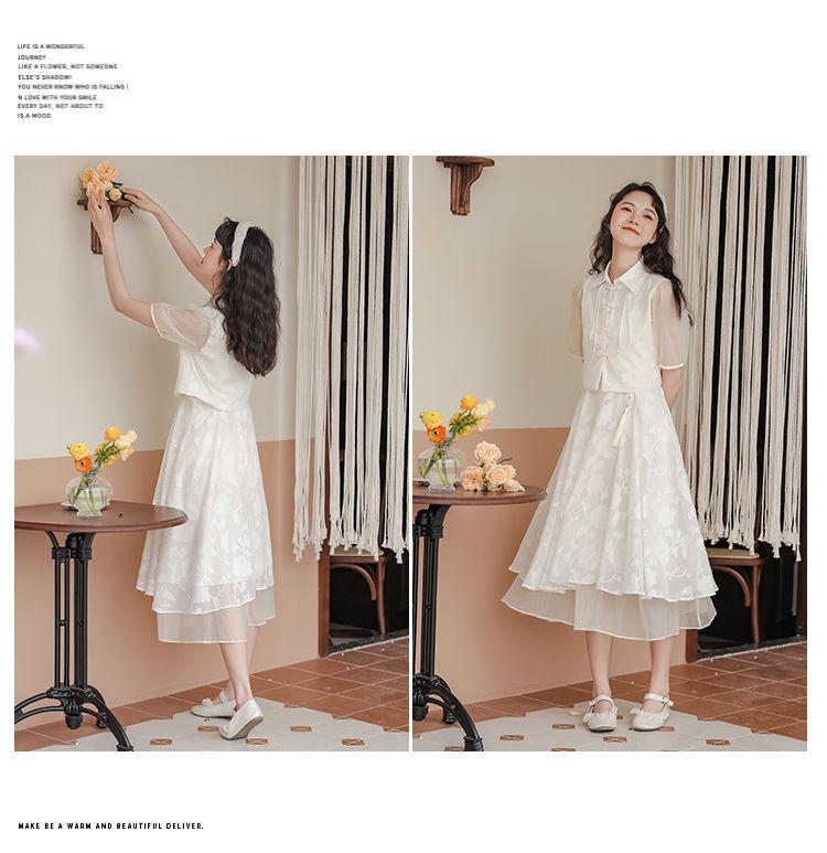 Nuevo Estilo Chino Cheongsam Mejorado Traje de Vestido de Estilo Nacional Conjunto de Dos Piezas de Cárdigan Hanfu de Verano 2024 para Mujer