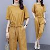 Traje de dos piezas de pantalones europeos de moda que reduce la edad, hermoso estilo occidental, casual, estilo maduro ligero Yujie, ropa de verano para mujer