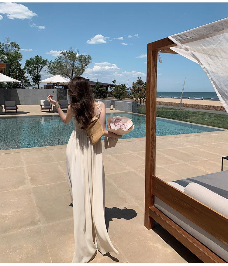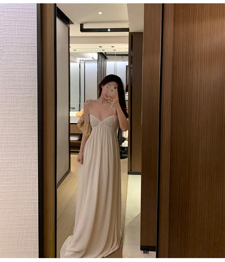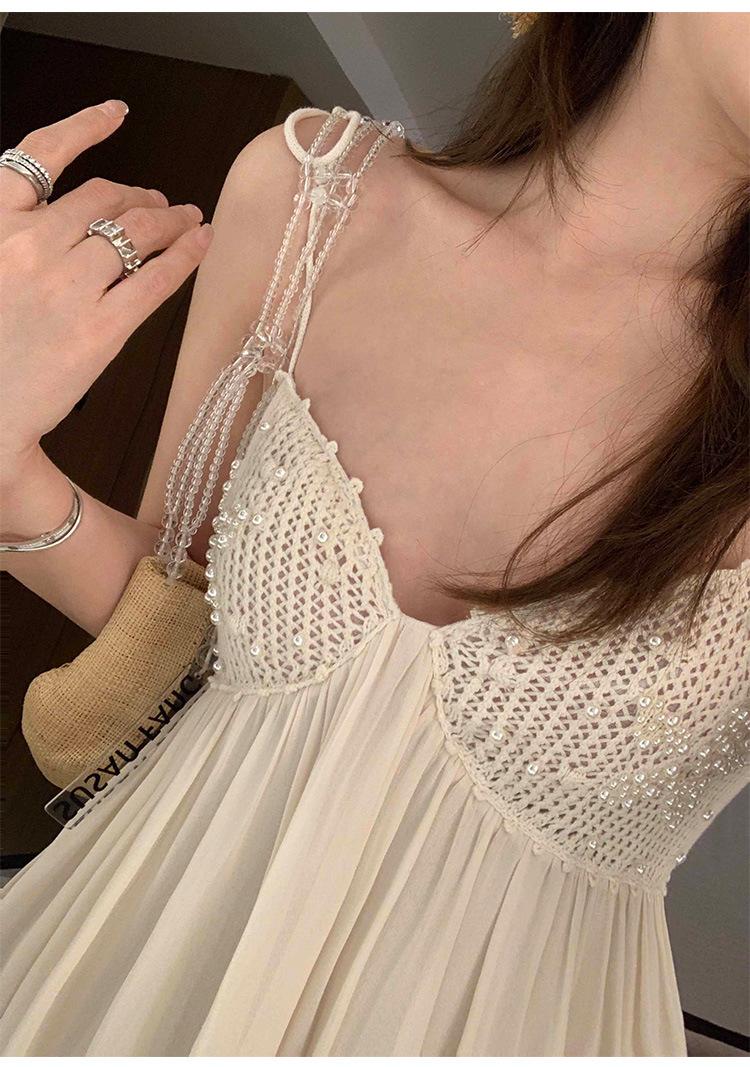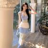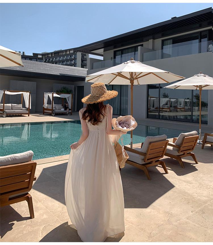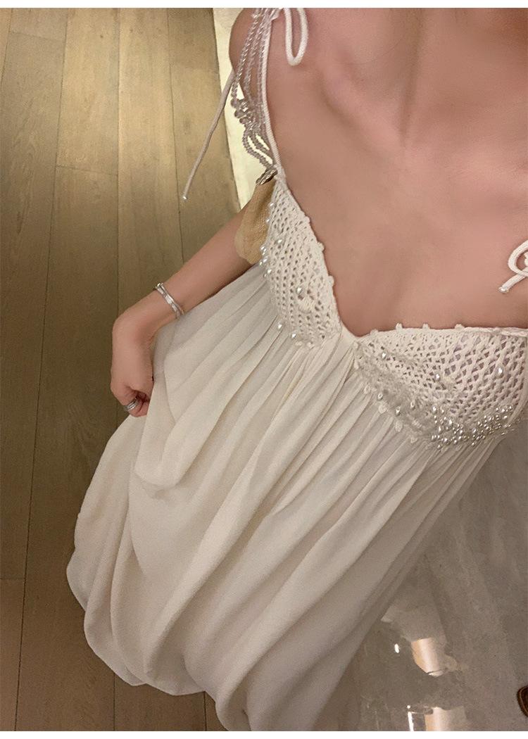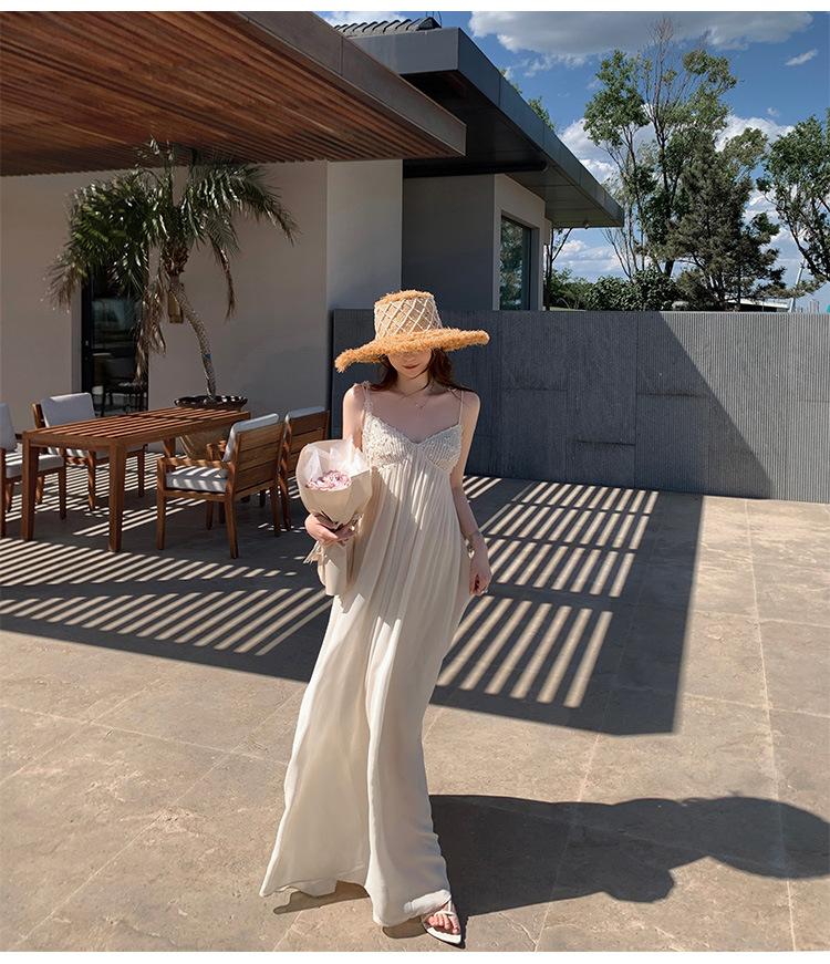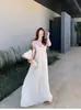 Vestido Blanco de Tirantes Finos Estilo Francés para Mujer, Vestido Largo de Vacaciones de Verano, Vestido de Cóctel de Cumpleaños para Socialité de Alta Gama con Diseño Patchwork