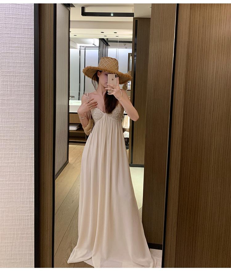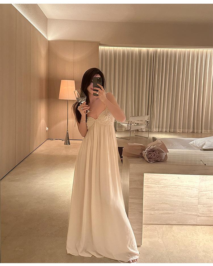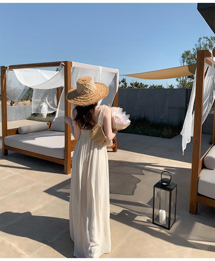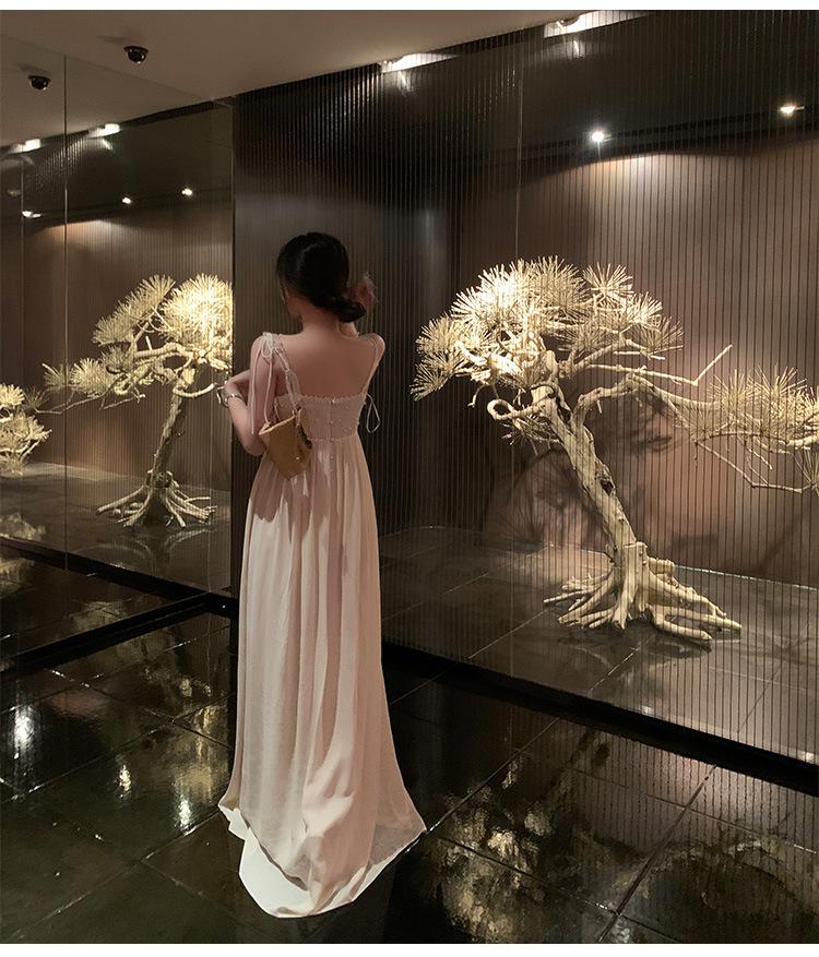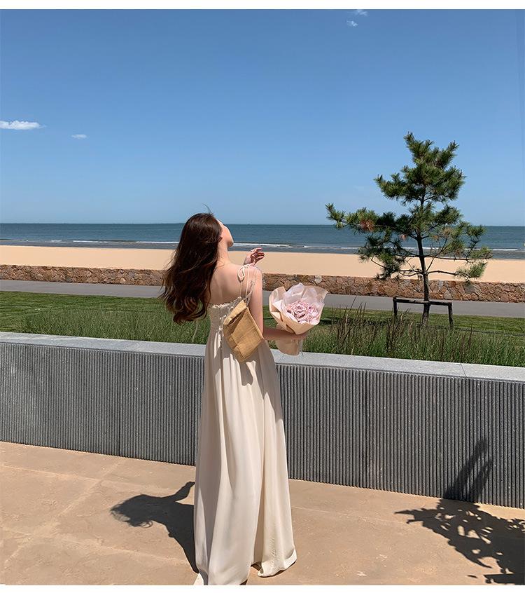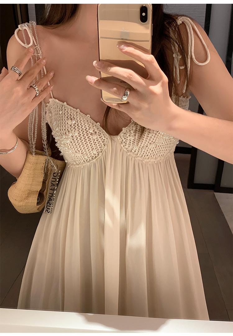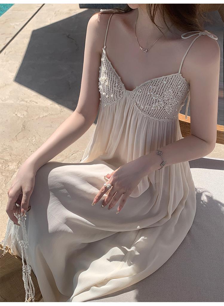 Vestido Blanco de Tirantes Finos Estilo Francés para Mujer, Vestido Largo de Vacaciones de Verano, Vestido de Cóctel de Cumpleaños para Socialité de Alta Gama con Diseño Patchwork