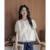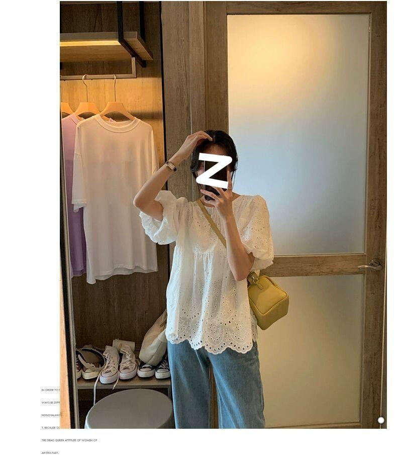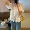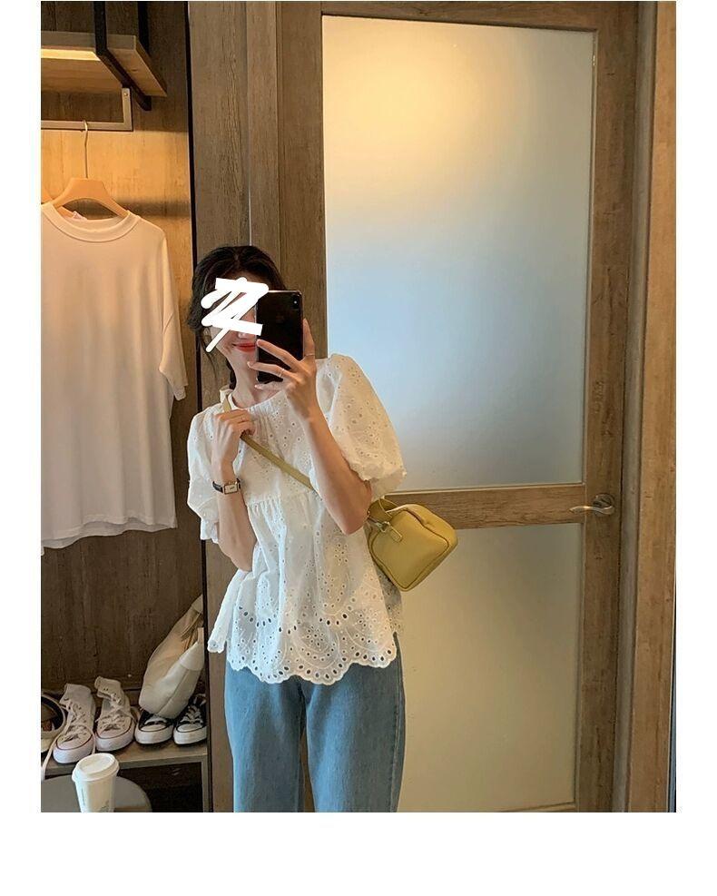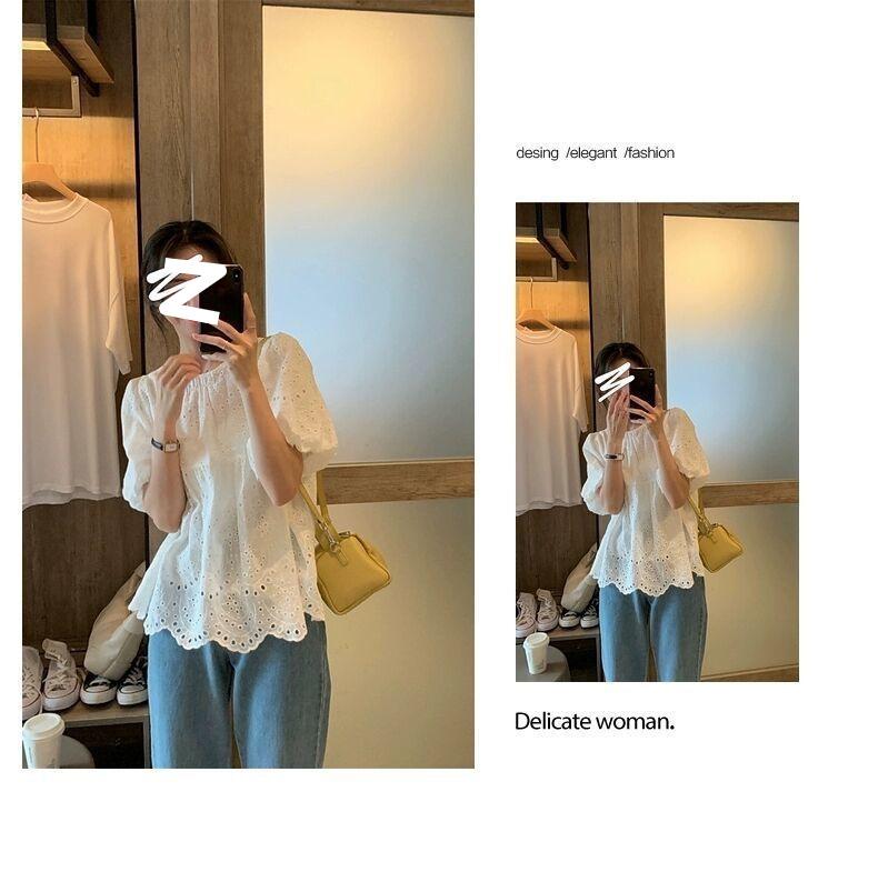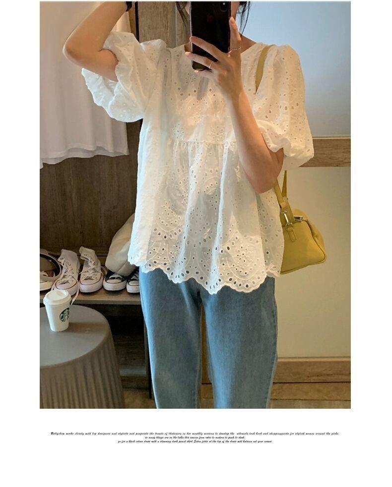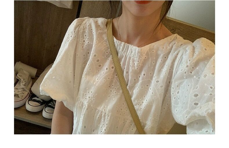 Camisa de encaje bordado para mujer, manga abullonada, estilo francés, nueva, blanca, holgada, de manga corta, estilo hada