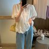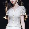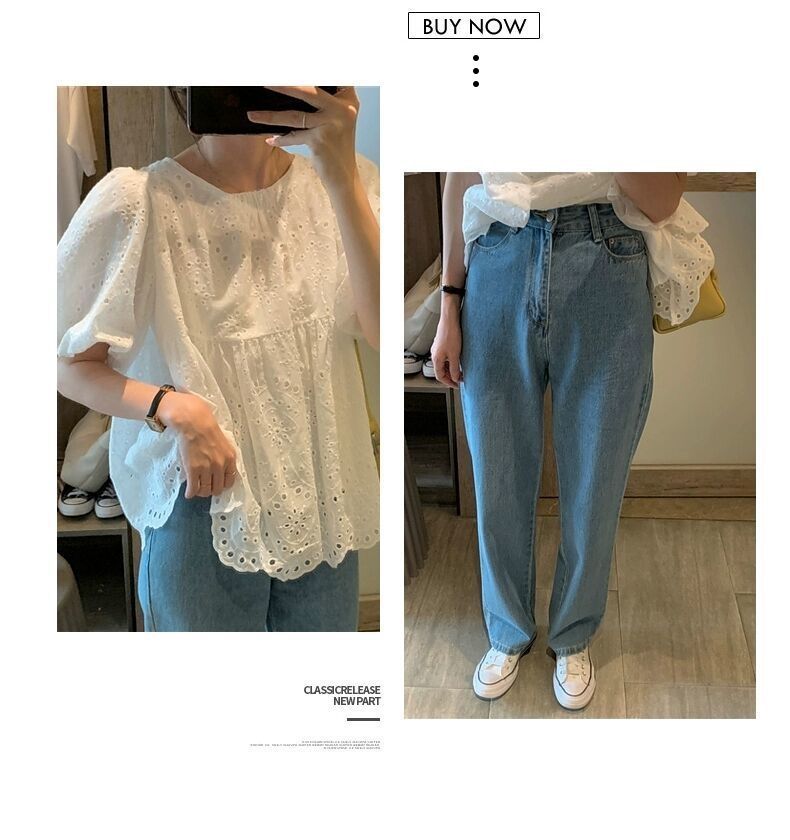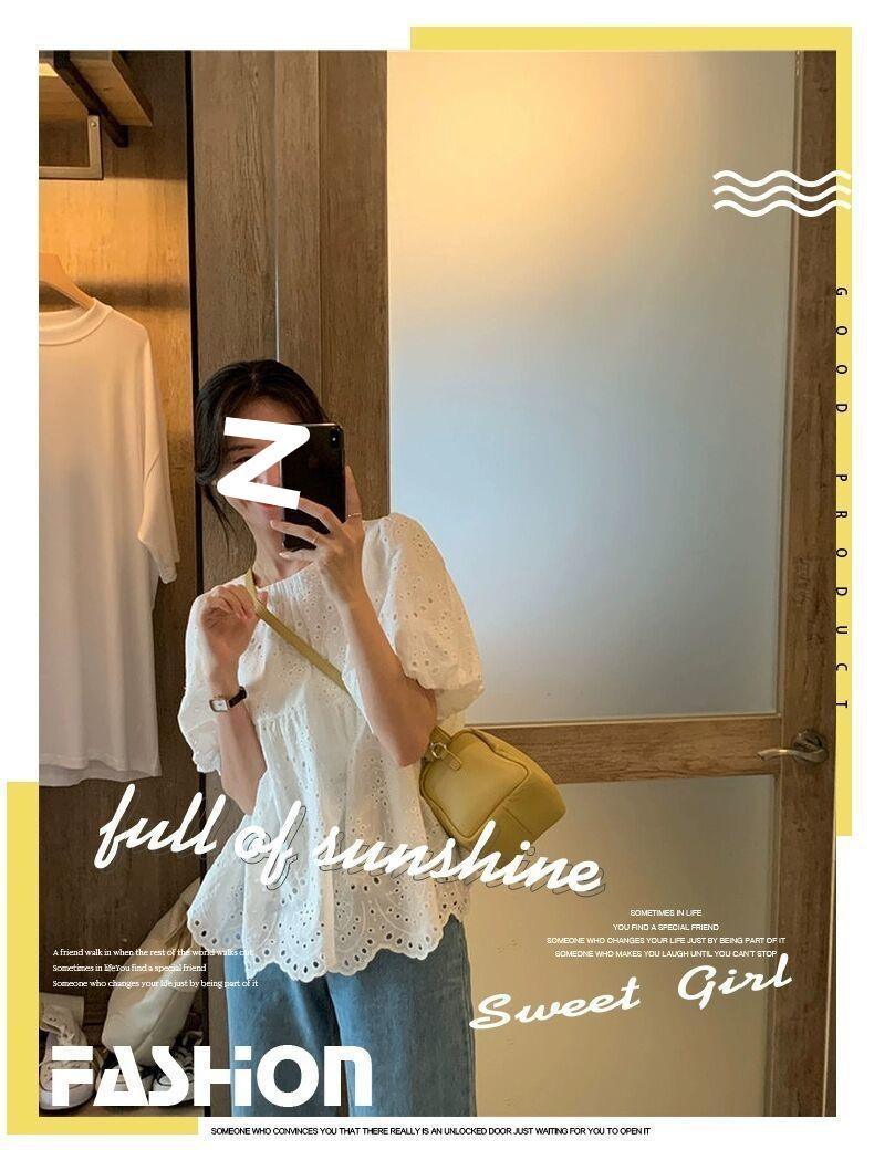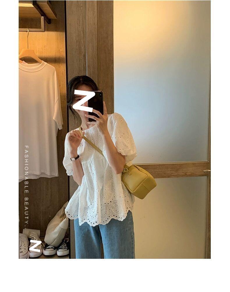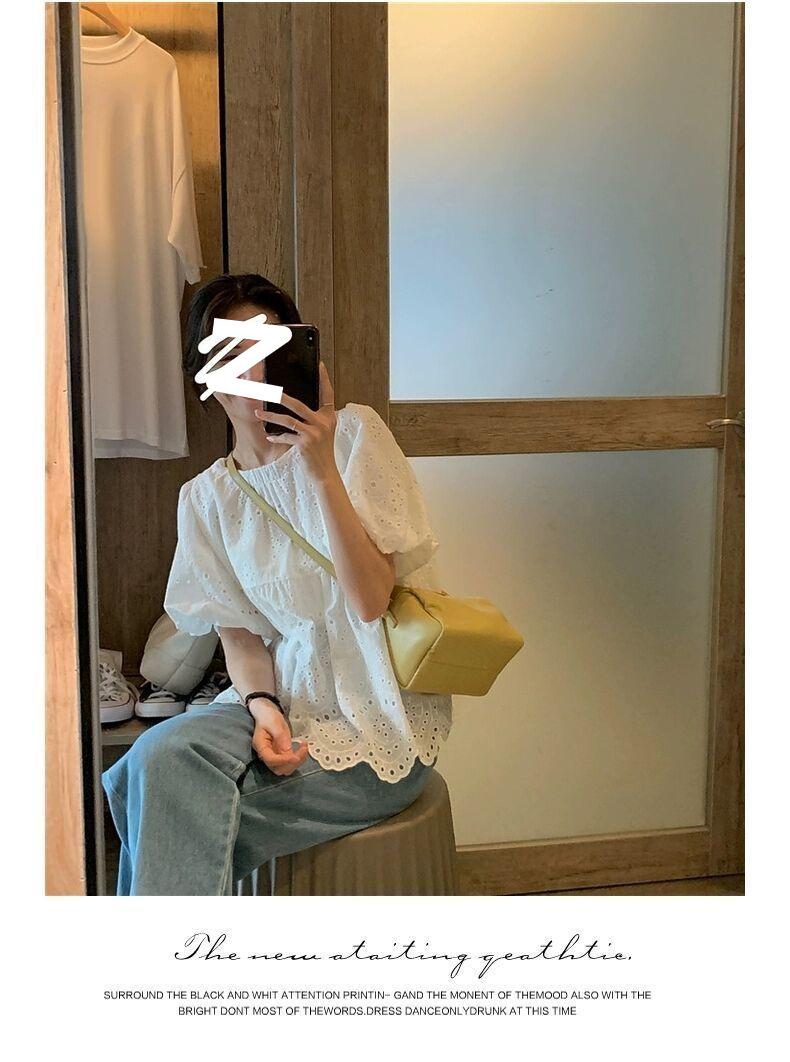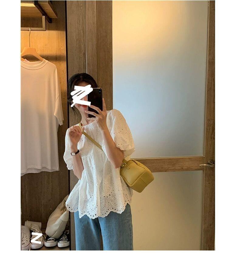 Camisa de encaje bordado para mujer, manga abullonada, estilo francés, nueva, blanca, holgada, de manga corta, estilo hada