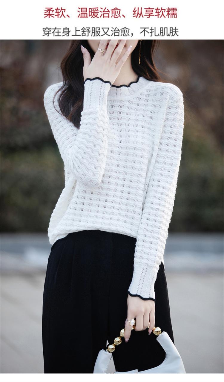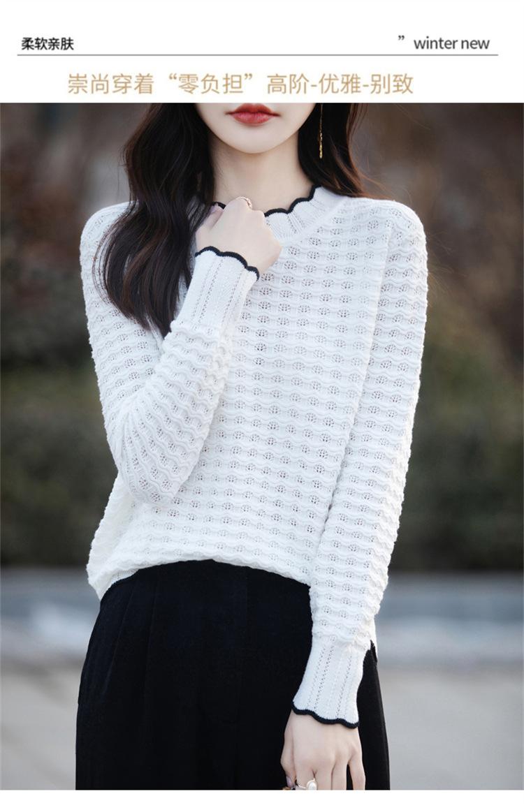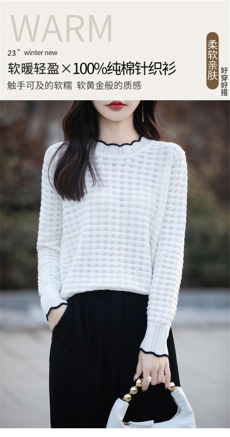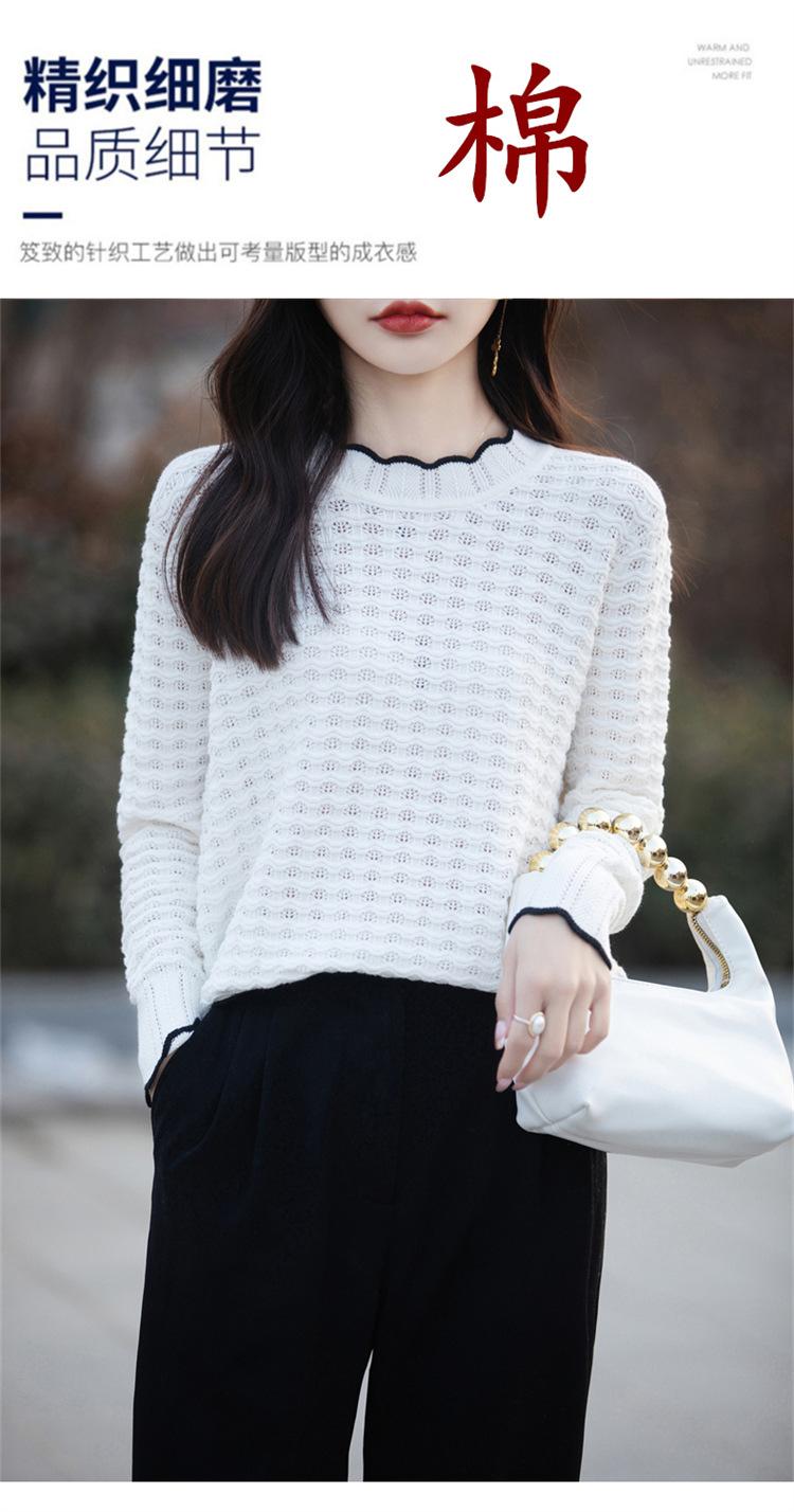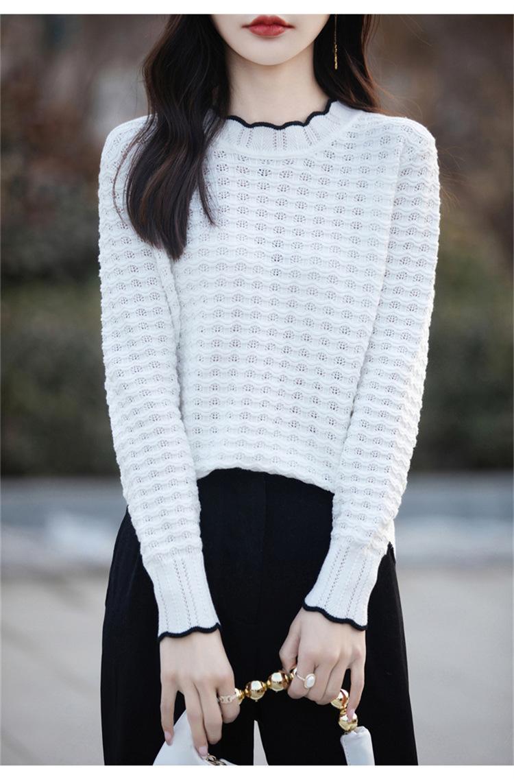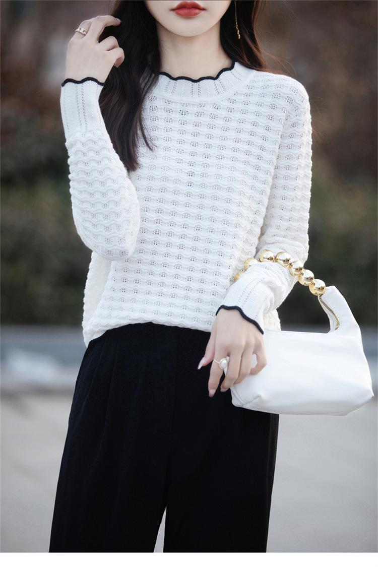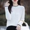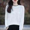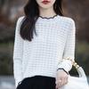 Suéter de cuello redondo de encaje para mujer, jersey de algodón puro hueco, camisa de manga larga, suéter de crochet estilo occidental, primavera y otoño