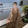 Estilo Vacacional Vestido Holgado de Tirantes a Rayas Azules para Mujer Verano Playa Vestido Largo