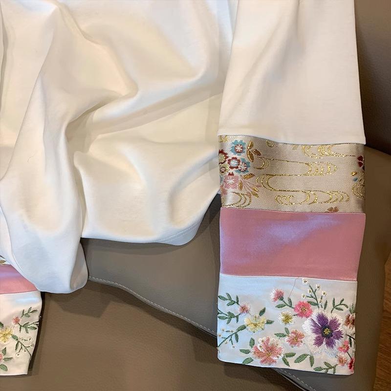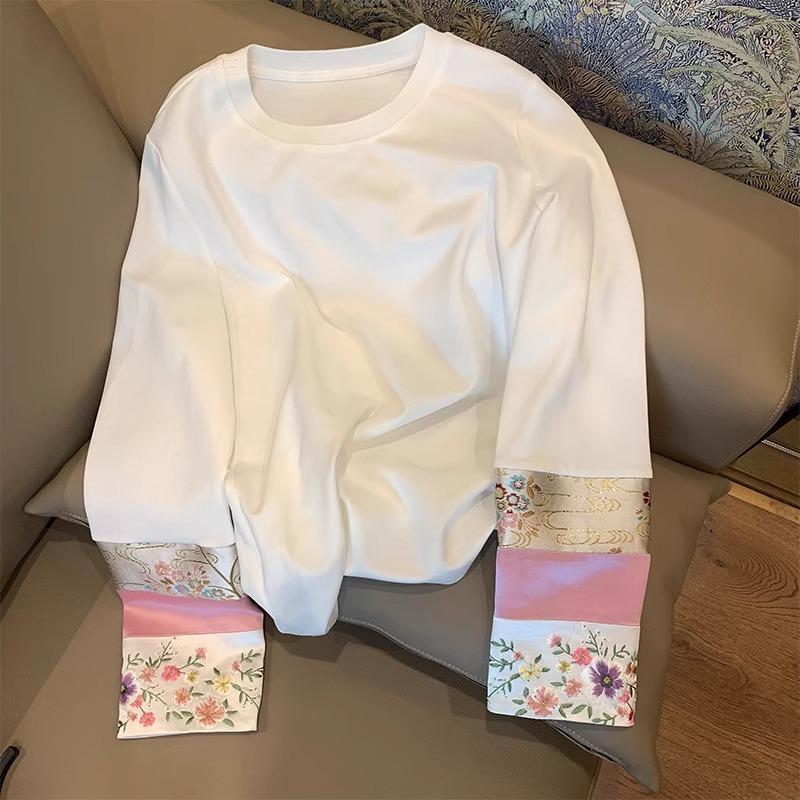 Nueva camiseta de manga larga con puños bordados de estilo chino para mujer primavera 2024 Nuevo diseño con sentido de nicho chic estilo nacional superior
