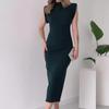 Otoño 2024 nuevo vestido europeo y americano transfronterizo de Amazon transfronterizo de cuello redondo de color sólido sexy sin espalda con abertura alta