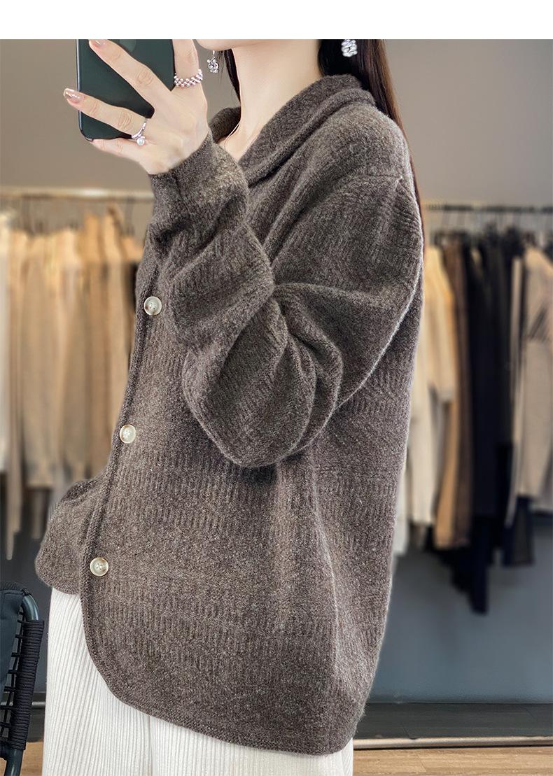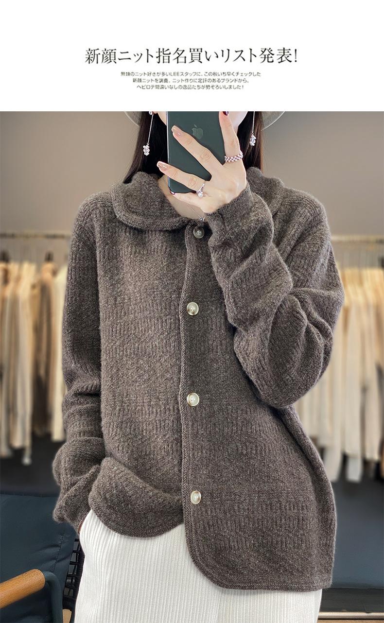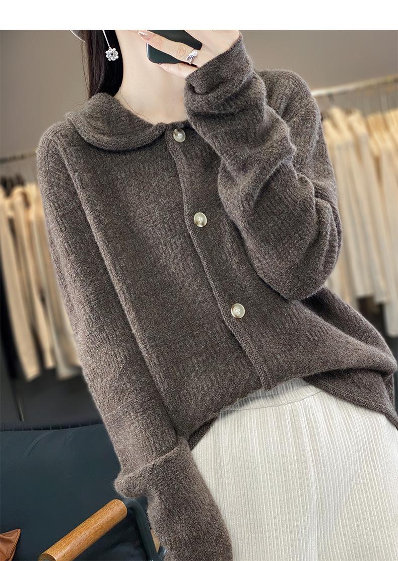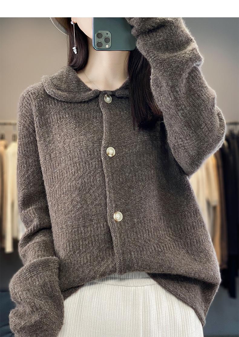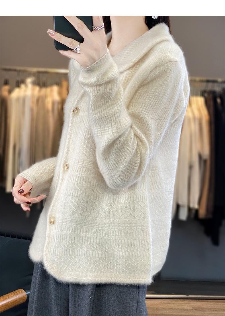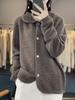 Cárdigan de Cachemira de Solapa de Moda Otoño e Invierno para Mujer con Cuello Polo Torcido Suelto de Lana Tejida Chaqueta Suéter Capa Base Gruesa