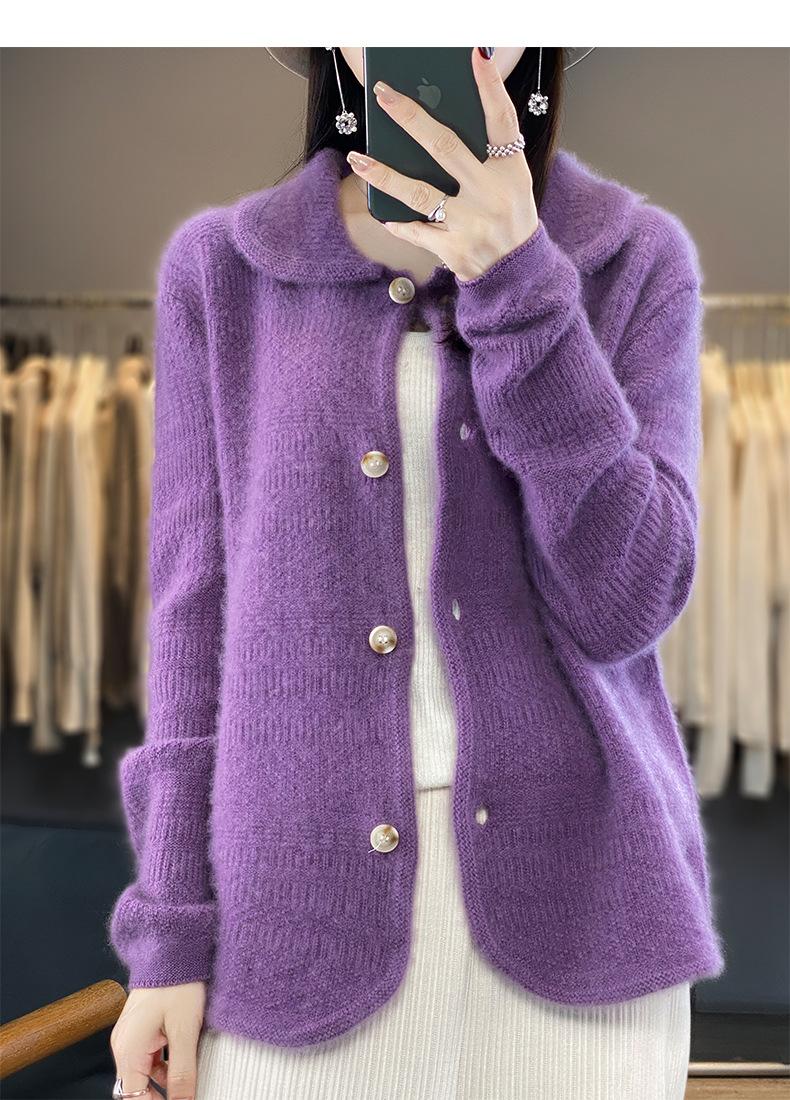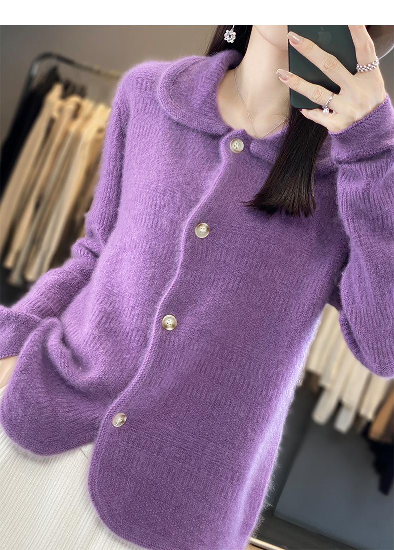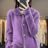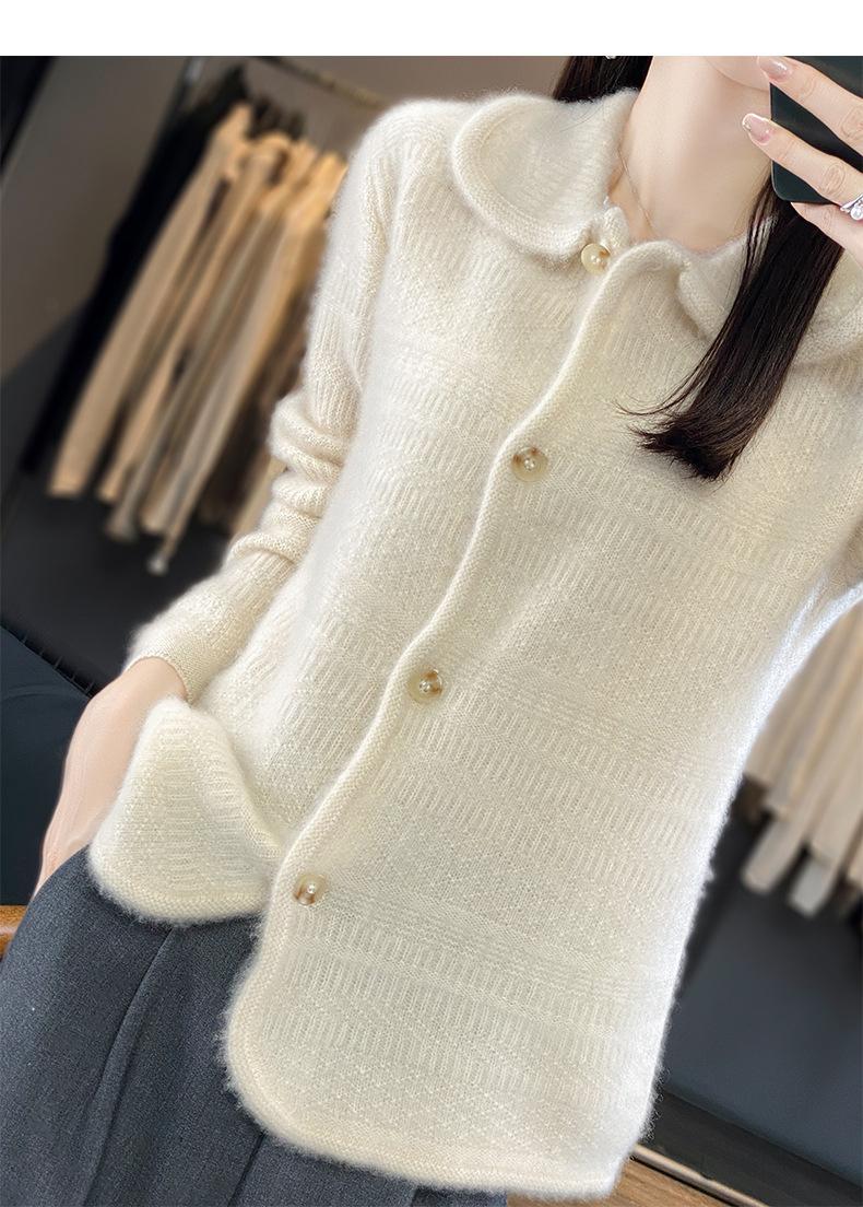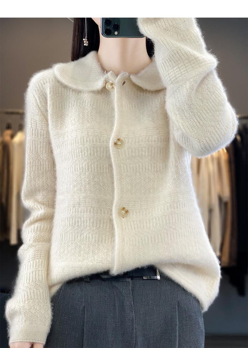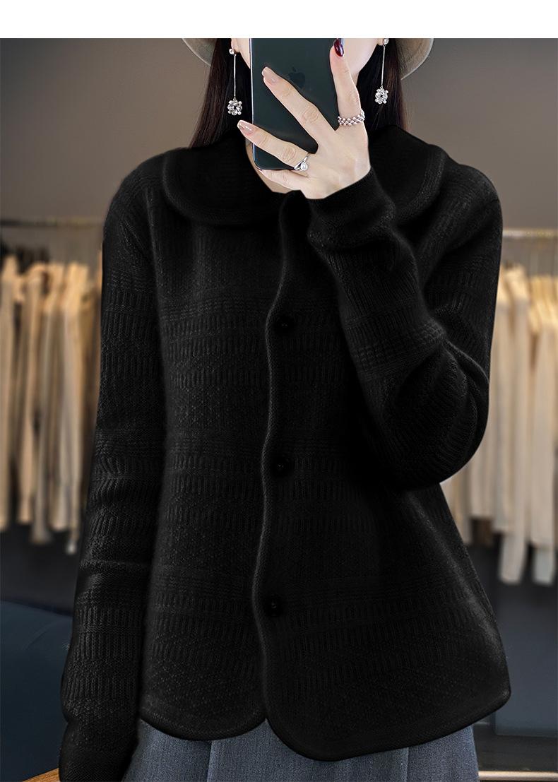 Cárdigan de Cachemira de Solapa de Moda Otoño e Invierno para Mujer con Cuello Polo Torcido Suelto de Lana Tejida Chaqueta Suéter Capa Base Gruesa