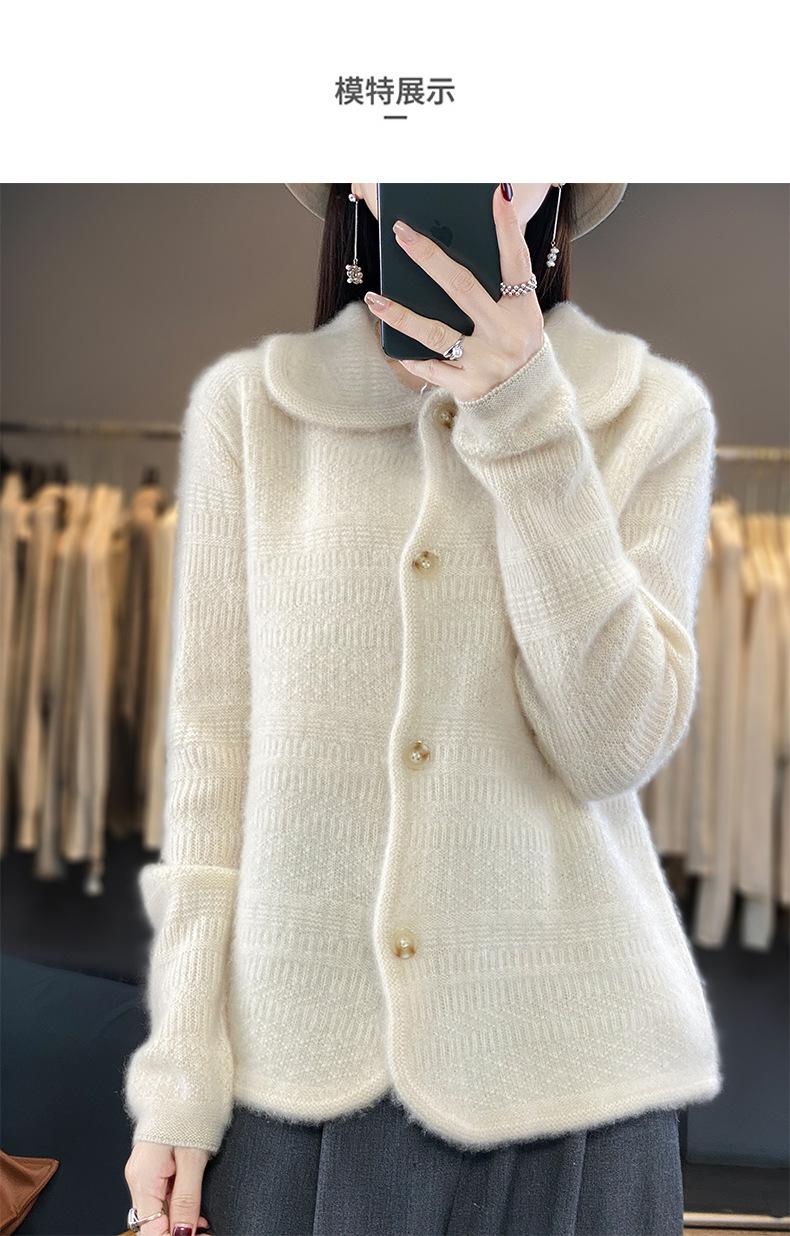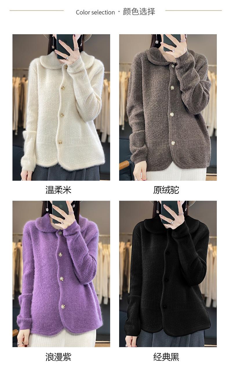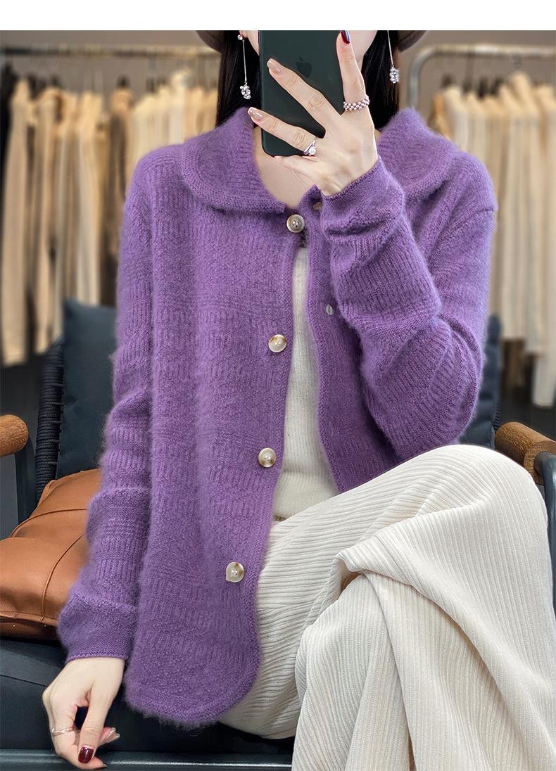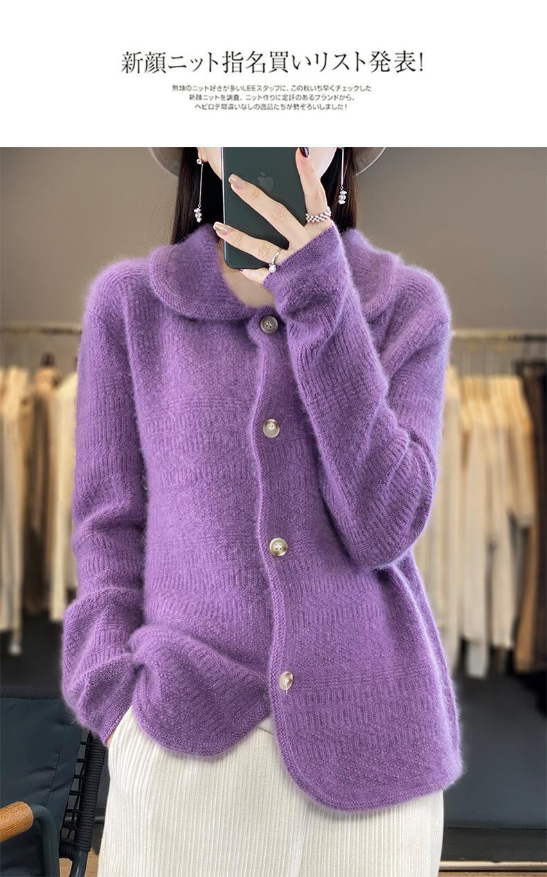 Cárdigan de Cachemira de Solapa de Moda Otoño e Invierno para Mujer con Cuello Polo Torcido Suelto de Lana Tejida Chaqueta Suéter Capa Base Gruesa