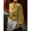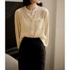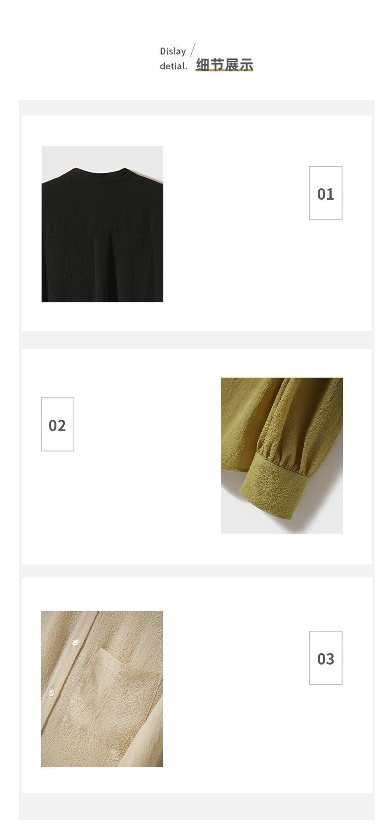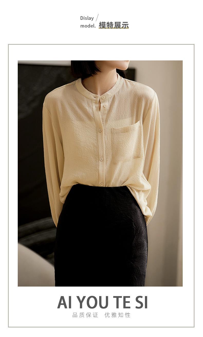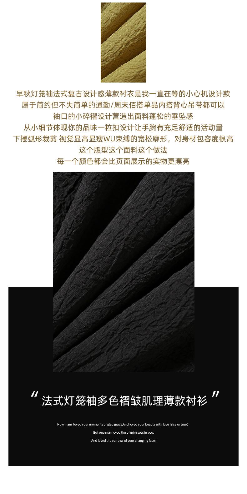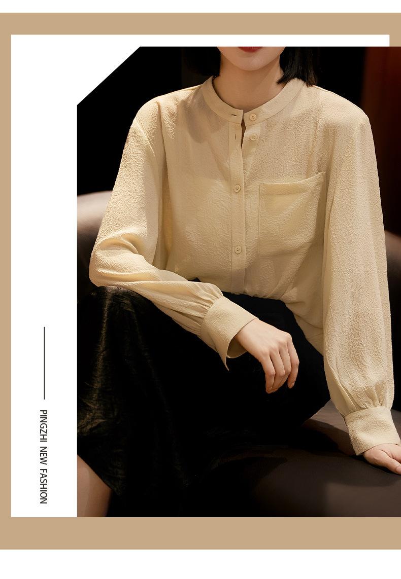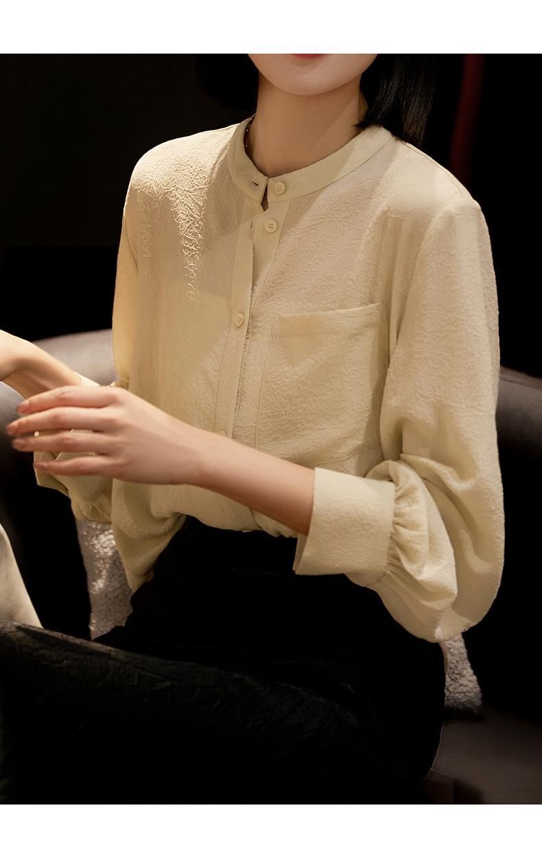 Camisa Texturizada Plisada Tricolor, Camisa de Cuello Alto con Manga Farol Francesa, Top de Mujer Otoño 2025 con un Toque de Alta Gama