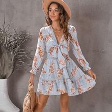 | |  |  | | | Vestido de gasa de otoño para mujer, estilo europeo y americano, con cintura cruzada, escote en V, falda corta floral, 6110742 | | precio de carnaval¥71.37 Compre ya |